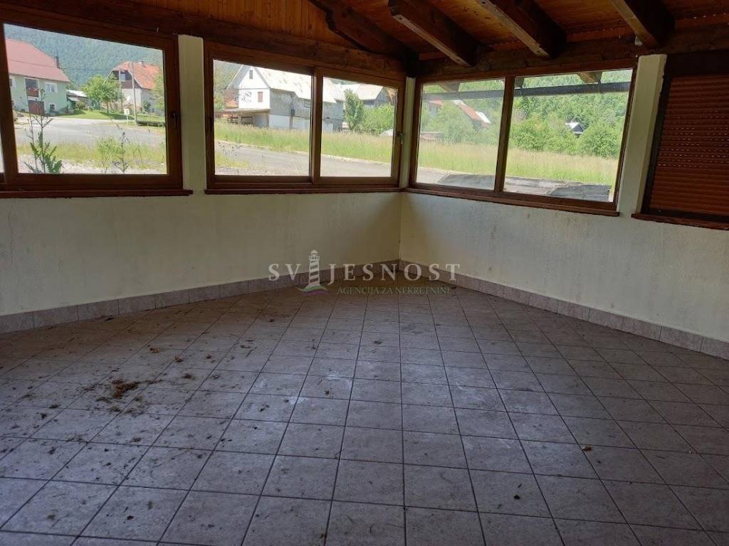 U manjem selu Smrečje, nedaleko Čabra, odnosno Tršča prodaje se poslovni prostor površine 189,61 m2 sa zatvorenom terasom površine cca 50 m2.