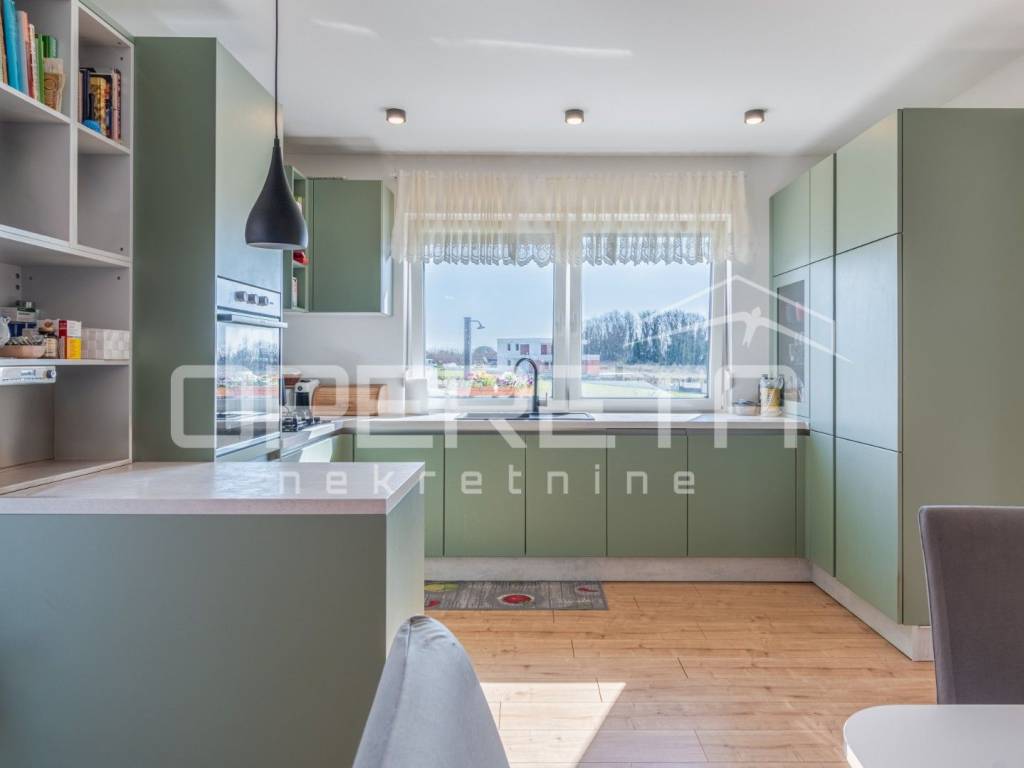 Iz naše ponude izdvajamo suvremenu samostojeću prizemnicu novogradnju stambene površine 186 m, smještenu na uređenoj parceli od 924 m s bazenom.