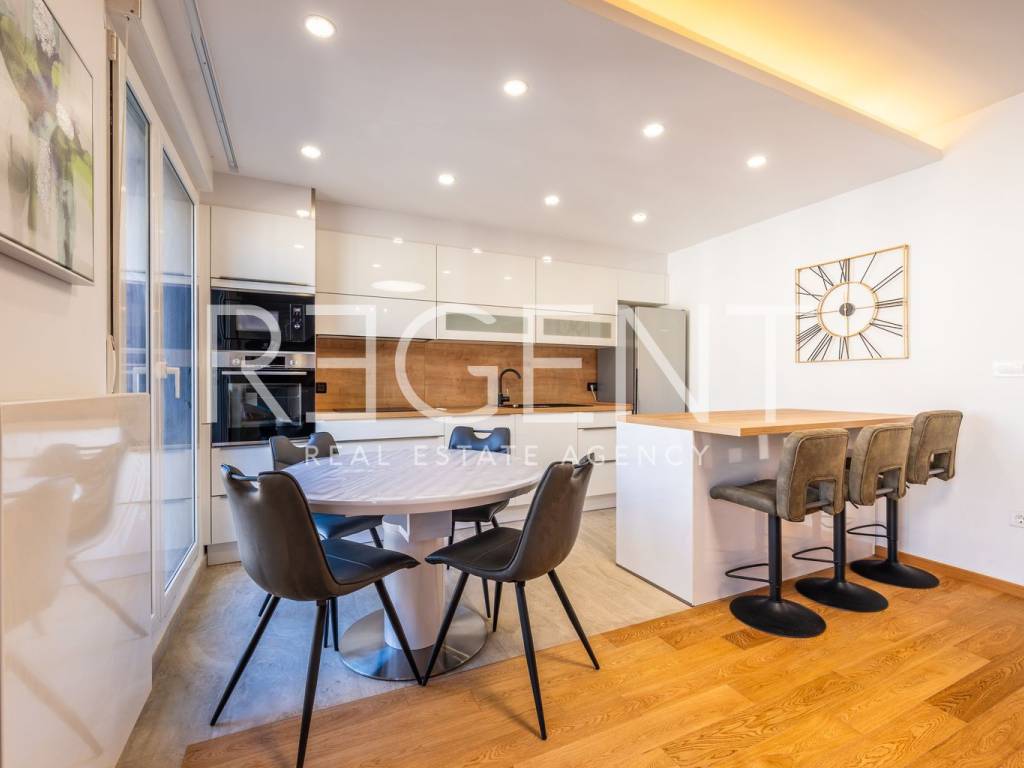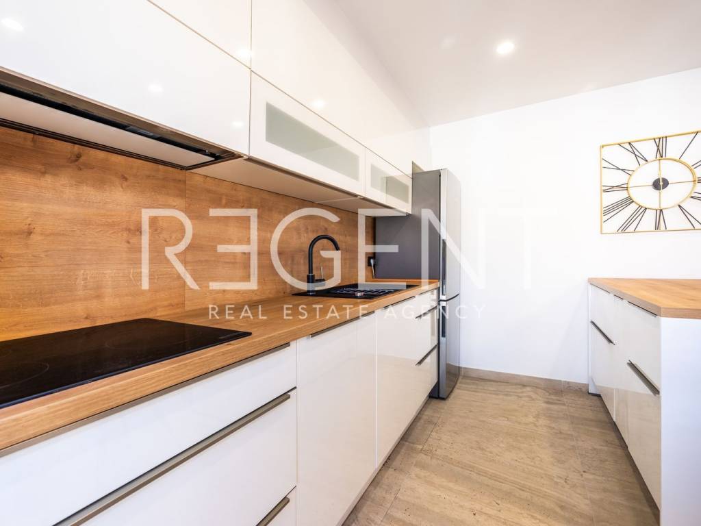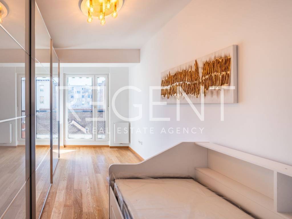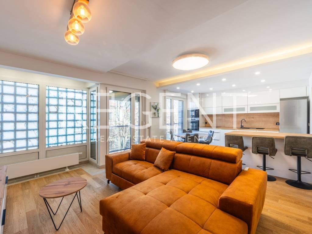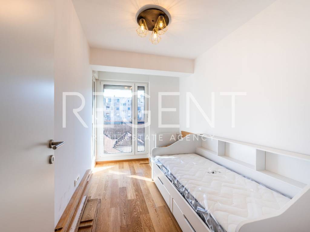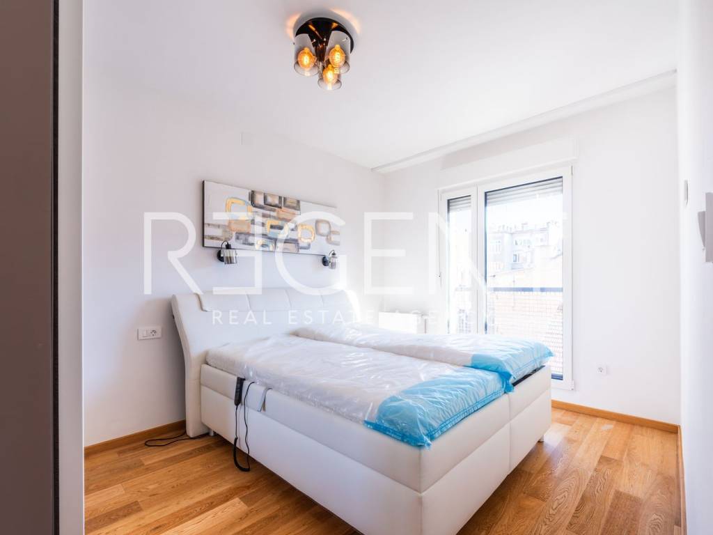The four-room apartment is located on the third floor of a well-maintained building with an elevator, in the very center of Zagreb, in the immediate vicinity of Tuđman Square. The apartment is completely newly renovated and is being rented out for the first time, which provides the future tenant with a modern, fresh, and functional space without prior use. With a total area of 83 m², the apartment is very well organized and adapted to everyday life. It consists of a living room connected to the kitchen and dining room, three bedrooms, a bathroom, a separate toilet, and additional storage space. The east-west orientation allows for plenty of natural light throughout the day, making the space airy and pleasant. The kitchen is custom-made and equipped with Bosch appliances, and the master bedroom has an ergonomic bed that provides an extra level of comfort. The apartment has gas central heating, underfloor heating in the bathroom, and air conditioning. Double-layered PVC windows and doors are installed, magnetic doors, and the floors are covered with high-quality parquet. A special advantage of this property is the parking behind the building, which is accessible only to residents, which is a rarity and a great value in the city center. In the immediate vicinity are a tram stop, shops, restaurants, schools, and all the amenities needed for a pleasant city life. The apartment is ready for immediate move-in. For additional information or to arrange a viewing, please feel free to contact us.