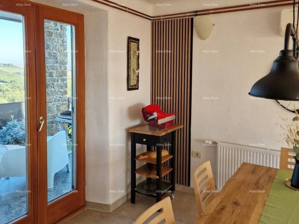 For sale is a beautiful house with a Tuscan hint located near Buje. Surrounded by nature, vineyards, and top-notch Istrian wineries and restaurants, this property offers complete tranquility and spectacular views of greenery and hills.