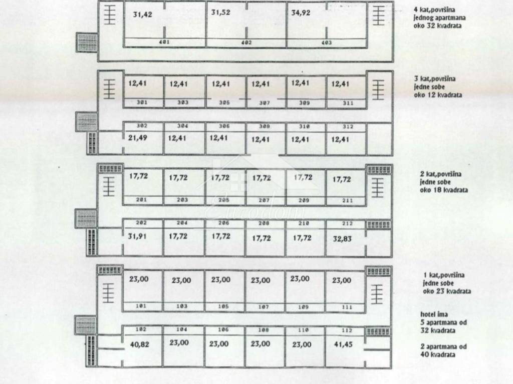 Hotel neto površine 2.587,61 m² (podrum, prizemlje + 4 kata) raspolaže s 32 sobe i 7 apartmana, restoranom za 200 osoba, konferencijskom dvoranom (40–80 osoba), caffe barom, zimskom terasom i vlastitim parkingom.