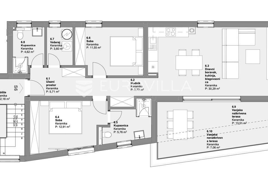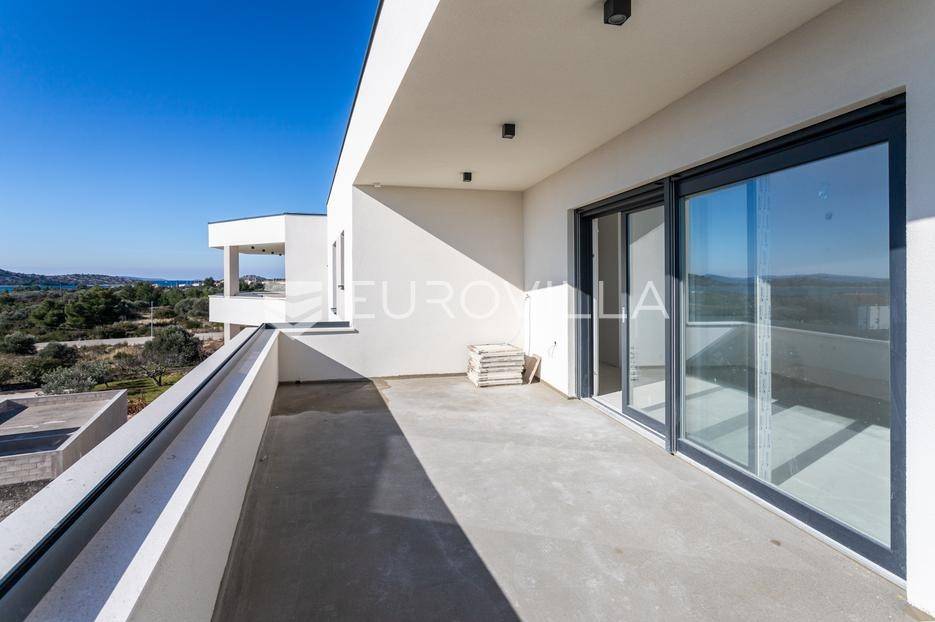 Vodice, prostran trosoban stan na 1. katu moderne zgrade, zatvorene površine 80,17 m². Pripada mu jedno parkirno mjesto u dvorištu. Ukupno obračunski neto korisne površine 88,7 m².Stan se sastoji od prostranog dnevnog boravka sa kuhinjom i blagovaonicom, dvije spavaće sobe od kojih master soba ima privatnu kupaonicu, jedne zasebne kupaonice, predsoblja, vešeraja te velikog balkona površine 20,57 m². Na podovim je kvalitetna keramika, te stan ima podno grijanje svuda osim u spavaćim sobama.Izvrsna mikrolokacija, na mirnom mjestu u blizini centra mjesta i svih bitnih sadržaja. Udaljenost do plaže je 350 metara, a do centra Vodica 800 metara. Zgrada je trenutno u izgradnji, te je planirani završetak radova do lipnja 2025.Za sve ostale informacije stojimo na raspolaganju.... Više na eurovilla.hr, ID: 134572