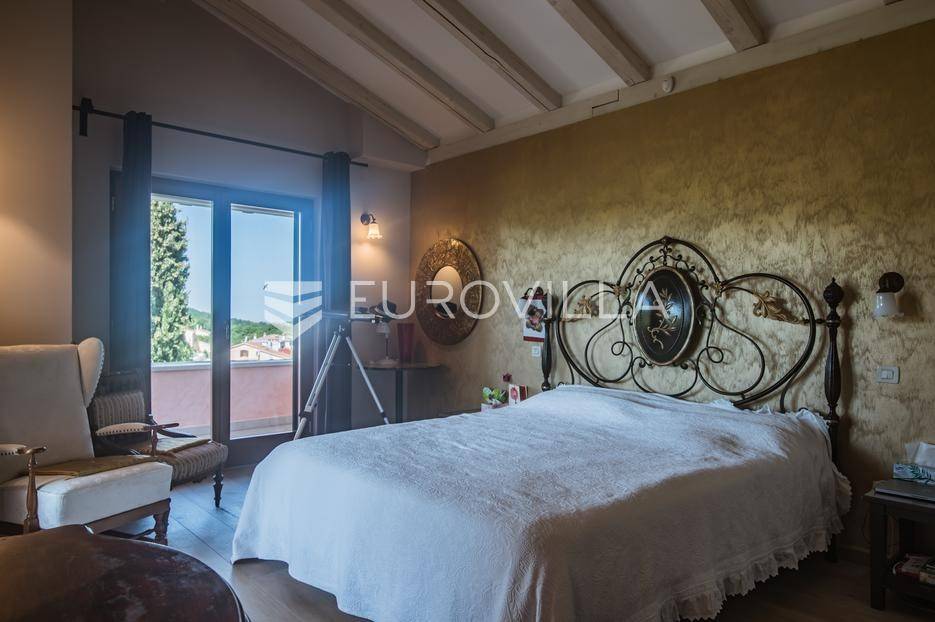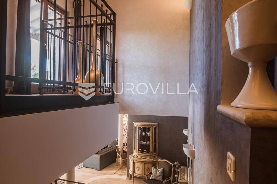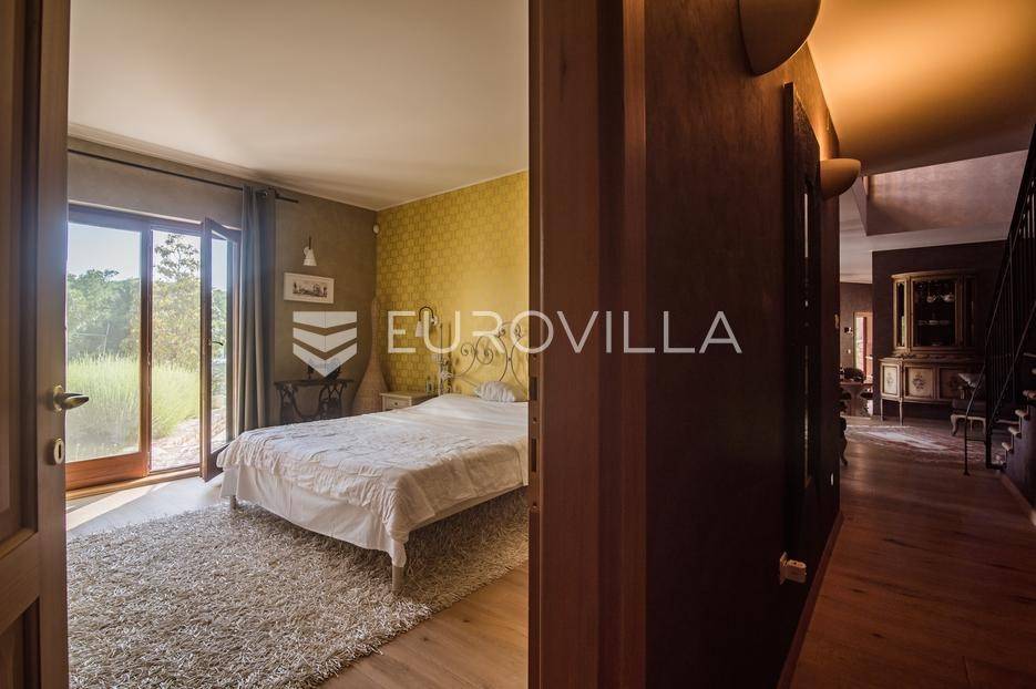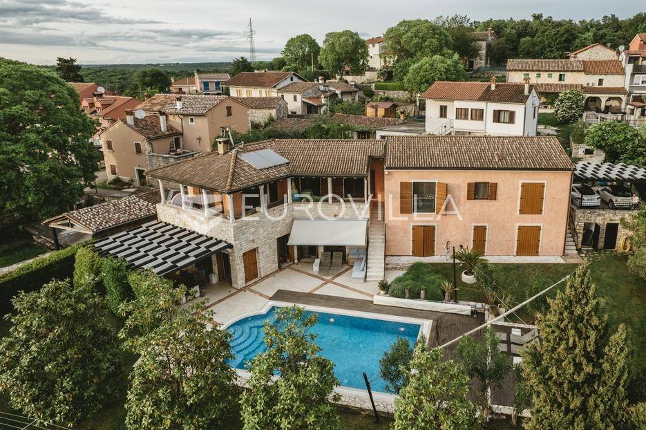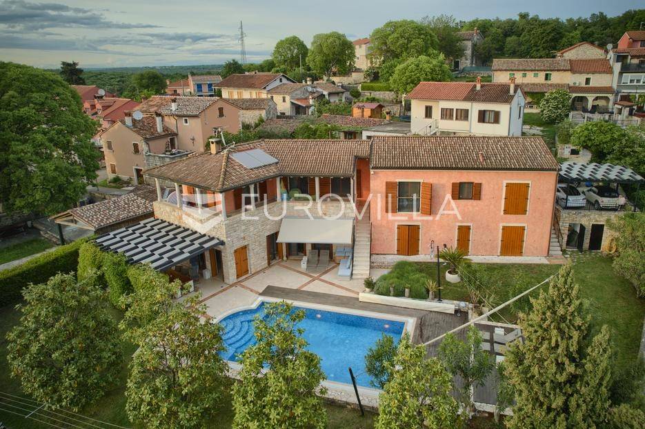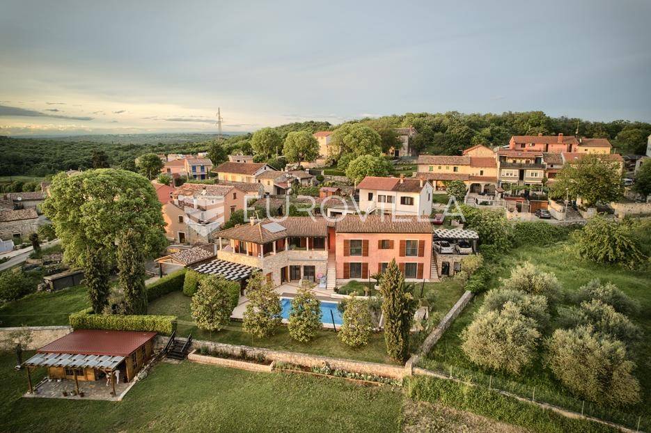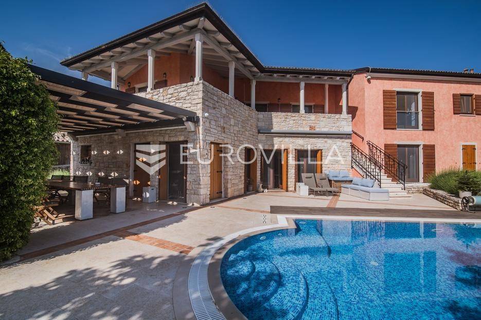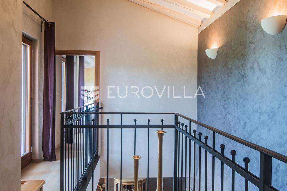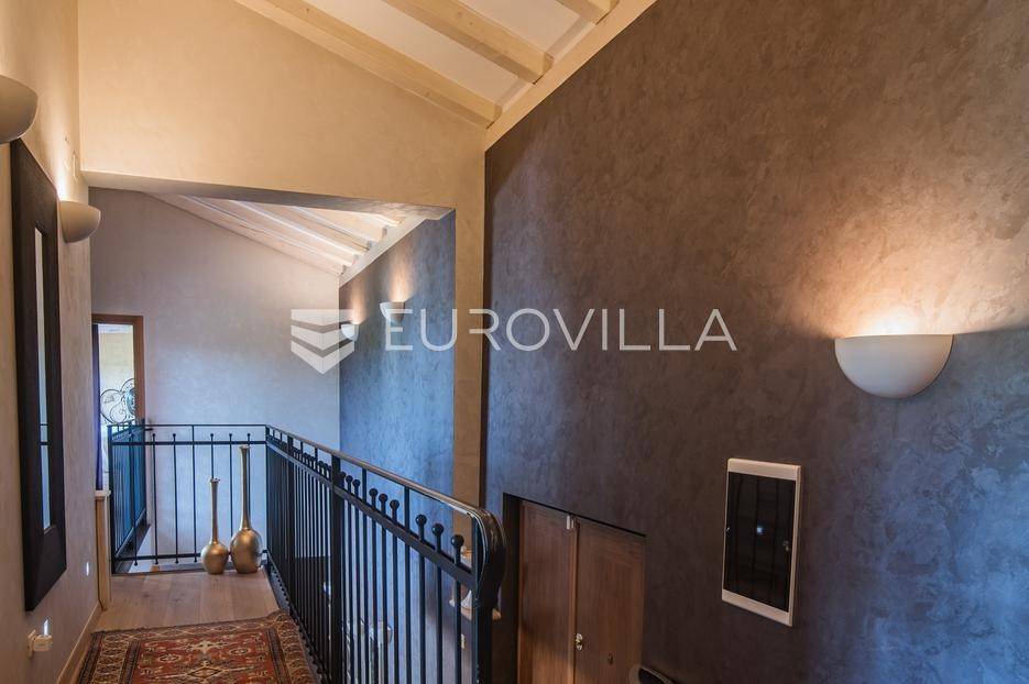 Istra, Šorići, ekskluzivna Vila Šorići: luksuzna kamena kuća s bazenom i predivnim bujnim vrtom te građevinsko zemljište 4621m2 tik uz parcelu kuće.Na izvanrednom posjedu smještenom u srcu prirodne ljepote otkrijte vrhunac sofisticiranog života u kamenoj kući u mjestu Šorići. Obuhvaćajući dvije temeljito osmišljene parcele ukupne površine 5383 m2, ovo imanje kombinira predivnu kamenu kuću s nizom izvanrednih sadržaja koji definiraju suvremeni luksuz.Glavna parcela (762 m2) sadrži kamenu kuću, remek-djelo arhitekture koja se proteže na približno 388 m² s 5 spavaćih soba, svaka sa svojom en suite kupaonicom, elegantnim interijerom, visokim stropovima i obilnom prirodnom svjetlošću.Na prostranom dvorištu od 525 m² koje se savršeno stapa s bujnim okruženjem nalazi se grijani bazen. Uživajte u cjelogodišnjem kupanjem u 43 m² bazenu s hidromasažom i umirujućim slapom. Na ulazu na imanje nalazi se natkriveno parkiralište te spremište s mogućnošću punjenja za električna vozila.Uz glavnu parcelu, nalazi se građevinska parcela (4621 m2) na kojoj se nalazi šarmantna vrtna kućica od 33 m2, koja nudi 17 m2 stambenog prostora i 16 m2 spremišta. Uz ovaj se prostor proteže natkrivena terasa od 17.5 m2, besprijekorno spajajući unutarnji i vanjski životni prostor.Kuća se sastoji od prizemlja i prvog kata. Prizemlje sadrži unutarnje spremište i prostoriju za pranje rublja, tehničku sobu, prostrani otvoreni prostor za dnevni boravak, blagovaonicu i kuhinju te jedinstvena rješenja za pohranu - pažljivo osmišljeni prostor ispod stepenica. Duž hodnika se nalazi gostinjski toalet i 2 spavaće sobe s vlastitim kupaonicama i izravnim pristupom vrtu i bazenu. Visoki stropovi, koji dosežu visinu od 8 metara, stvaraju prozračnu i veličanstvenu atmosferu u cijelom prostoru.Na prvom katu, prolazeći unutarnjom galerijom, nalaze se 2 spavaće sobe, svaka sa svojom kupaonicom, francuskim balkonom i pogledom na bazen i maslinike. Na kraju galerije nalazi se glavna spavaća soba s prostranim walk-in garderobnim ormarom i pristupom prostranoj gornjoj terasi koja se proteže na približno 50 m². Terasa se proteže na tri strane, pružajući prekrasan pogled a vanjske stepenice povezuju je s vrtom i bazenom u prizemlju.Posjed se može pohvaliti raznolikim sadržajima, uključujući grijanje i klimatizaciju koje pokreće električno upravljana toplinska pumpa s fen coil aparatima strateški integriranim diljem kuće. Dodatno, plinski sustav opslužuje ljetnu i unutarnju kuhinju kao i sustav grijanja vode. Energetska učinkovitost dodatno je poboljšana solarnim panelima koji doprinose grijanju vode za kuću i bazen. Oprema poput Starlink Interneta, WiFi audio/video sustavom s LP pločama, luksuznim vrtnim namještajem Royal Botania i Lotus uređajima industrijske klase u ljetnoj kuhinji, ova rezidencija nudi besprijekoran spoj udobnosti i sofisticiranosti. Poboljšane sigurnosne mjere, uključujući video nadzor i alarmni sustav osiguravaju mir bilo kojem zahtjevnom vlasniku.Bazen je opremljen naprednim značajkama, uključujući tretman slanom vodom za visokokvalitetnu vodu bez klora, primamljivo područje hidromasaže, čarobni vodopad, grijanje bazena, ambijentalna podvodna svjetla te praktičan ručni pokrivač bazena. Tehnička prostorija bazena smještena je na sunčalištu radi lakog pristupa.Za praktično parkiranje, tu je gornje privatno natkriveno parkiralište koje može primiti 2 automobila s dodatnom mogućnošću punjenja električnog vozila. Prostrano donje parkiralište, dostupno s pomoćne parcele, pruža dovoljno prostora za veći broj vozila.Posjed se ponosi očaravajućim detaljima, kao što su stare masline i citrusna palma istaknuta u posebno izrezbarenoj vazi. Elementi autentičnosti sačuvani su korištenjem vanjskih stepenica i ograde skinute s istarske kuće stare stoljećima. Ugodni kamin i dizajnerski namještaj usklađuju se sa starim istarskim seoskim komodama, vitrinama i antiknim artefaktima, poput autentične gradske venecijanske vitrine i drevne amfore. Razne vaze, stara šivaća mašina i stol za bridž dodaju karakter kući.Lokacija nudi praktičnost, sa Zračnom lukom Pula udaljenom 44 km. Plaža je lako dostupna, bilo u Limskom kanalu udaljenom 3 km ili u Rovinju udaljenom svega 10 km. U blizini se nalazi poznati restoran u Limskom kanalu ali i trgovina prehrambenih proizvoda u Rovinjskom selu, udaljenom samo 2 km.Posjed se prodaje kao kuća zasebno po cijeni od 1,250,000 eura ili zajedno sa građevinskom parcelom od 4621 m2 za 1,950,000 eura.Za više informacija kontaktirajte nas.... Više na eurovilla.hr, ID: 135027