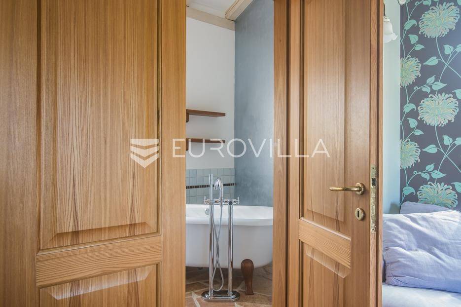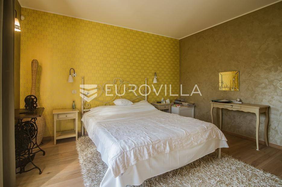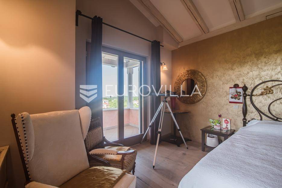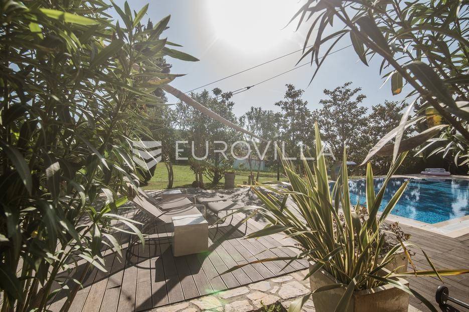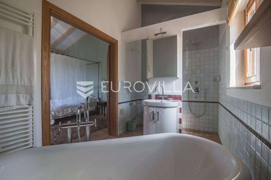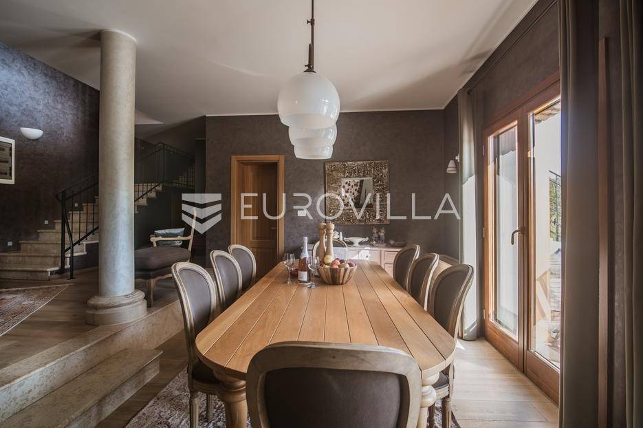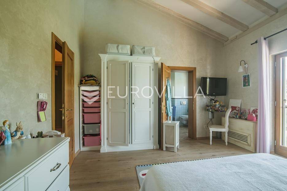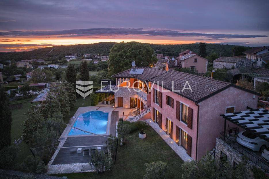 Istra, Šorići, ekskluzivna Vila Šorići: luksuzna kamena kuća s bazenom i predivnim bujnim vrtom te građevinsko zemljište 4621m2 tik uz parcelu kuće.Na izvanrednom posjedu smještenom u srcu prirodne ljepote otkrijte vrhunac sofisticiranog života u kamenoj kući u mjestu Šorići. Obuhvaćajući dvije temeljito osmišljene parcele ukupne površine 5383 m2, ovo imanje kombinira predivnu kamenu kuću s nizom izvanrednih sadržaja koji definiraju suvremeni luksuz.Glavna parcela (762 m2) sadrži kamenu kuću, remek-djelo arhitekture koja se proteže na približno 388 m² s 5 spavaćih soba, svaka sa svojom en suite kupaonicom, elegantnim interijerom, visokim stropovima i obilnom prirodnom svjetlošću.Na prostranom dvorištu od 525 m² koje se savršeno stapa s bujnim okruženjem nalazi se grijani bazen. Uživajte u cjelogodišnjem kupanjem u 43 m² bazenu s hidromasažom i umirujućim slapom. Na ulazu na imanje nalazi se natkriveno parkiralište te spremište s mogućnošću punjenja za električna vozila.Uz glavnu parcelu, nalazi se građevinska parcela (4621 m2) na kojoj se nalazi šarmantna vrtna kućica od 33 m2, koja nudi 17 m2 stambenog prostora i 16 m2 spremišta. Uz ovaj se prostor proteže natkrivena terasa od 17.5 m2, besprijekorno spajajući unutarnji i vanjski životni prostor.Kuća se sastoji od prizemlja i prvog kata. Prizemlje sadrži unutarnje spremište i prostoriju za pranje rublja, tehničku sobu, prostrani otvoreni prostor za dnevni boravak, blagovaonicu i kuhinju te jedinstvena rješenja za pohranu - pažljivo osmišljeni prostor ispod stepenica. Duž hodnika se nalazi gostinjski toalet i 2 spavaće sobe s vlastitim kupaonicama i izravnim pristupom vrtu i bazenu. Visoki stropovi, koji dosežu visinu od 8 metara, stvaraju prozračnu i veličanstvenu atmosferu u cijelom prostoru.Na prvom katu, prolazeći unutarnjom galerijom, nalaze se 2 spavaće sobe, svaka sa svojom kupaonicom, francuskim balkonom i pogledom na bazen i maslinike. Na kraju galerije nalazi se glavna spavaća soba s prostranim walk-in garderobnim ormarom i pristupom prostranoj gornjoj terasi koja se proteže na približno 50 m². Terasa se proteže na tri strane, pružajući prekrasan pogled a vanjske stepenice povezuju je s vrtom i bazenom u prizemlju.Posjed se može pohvaliti raznolikim sadržajima, uključujući grijanje i klimatizaciju koje pokreće električno upravljana toplinska pumpa s fen coil aparatima strateški integriranim diljem kuće. Dodatno, plinski sustav opslužuje ljetnu i unutarnju kuhinju kao i sustav grijanja vode. Energetska učinkovitost dodatno je poboljšana solarnim panelima koji doprinose grijanju vode za kuću i bazen. Oprema poput Starlink Interneta, WiFi audio/video sustavom s LP pločama, luksuznim vrtnim namještajem Royal Botania i Lotus uređajima industrijske klase u ljetnoj kuhinji, ova rezidencija nudi besprijekoran spoj udobnosti i sofisticiranosti. Poboljšane sigurnosne mjere, uključujući video nadzor i alarmni sustav osiguravaju mir bilo kojem zahtjevnom vlasniku.Bazen je opremljen naprednim značajkama, uključujući tretman slanom vodom za visokokvalitetnu vodu bez klora, primamljivo područje hidromasaže, čarobni vodopad, grijanje bazena, ambijentalna podvodna svjetla te praktičan ručni pokrivač bazena. Tehnička prostorija bazena smještena je na sunčalištu radi lakog pristupa.Za praktično parkiranje, tu je gornje privatno natkriveno parkiralište koje može primiti 2 automobila s dodatnom mogućnošću punjenja električnog vozila. Prostrano donje parkiralište, dostupno s pomoćne parcele, pruža dovoljno prostora za veći broj vozila.Posjed se ponosi očaravajućim detaljima, kao što su stare masline i citrusna palma istaknuta u posebno izrezbarenoj vazi. Elementi autentičnosti sačuvani su korištenjem vanjskih stepenica i ograde skinute s istarske kuće stare stoljećima. Ugodni kamin i dizajnerski namještaj usklađuju se sa starim istarskim seoskim komodama, vitrinama i antiknim artefaktima, poput autentične gradske venecijanske vitrine i drevne amfore. Razne vaze, stara šivaća mašina i stol za bridž dodaju karakter kući.Lokacija nudi praktičnost, sa Zračnom lukom Pula udaljenom 44 km. Plaža je lako dostupna, bilo u Limskom kanalu udaljenom 3 km ili u Rovinju udaljenom svega 10 km. U blizini se nalazi poznati restoran u Limskom kanalu ali i trgovina prehrambenih proizvoda u Rovinjskom selu, udaljenom samo 2 km.Posjed se prodaje kao kuća zasebno po cijeni od 1,250,000 eura ili zajedno sa građevinskom parcelom od 4621 m2 za 1,950,000 eura.Za više informacija kontaktirajte nas.... Više na eurovilla.hr, ID: 135027