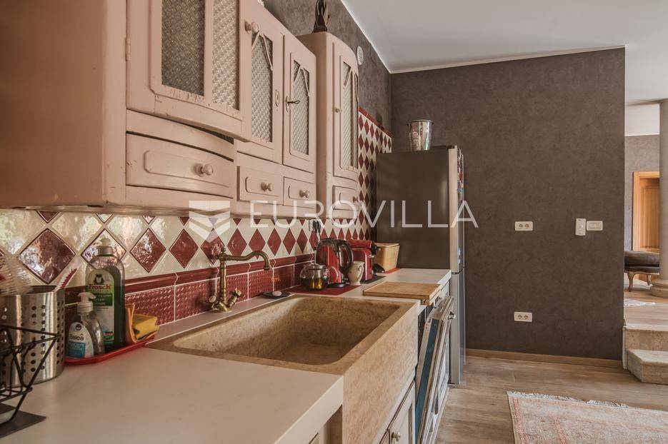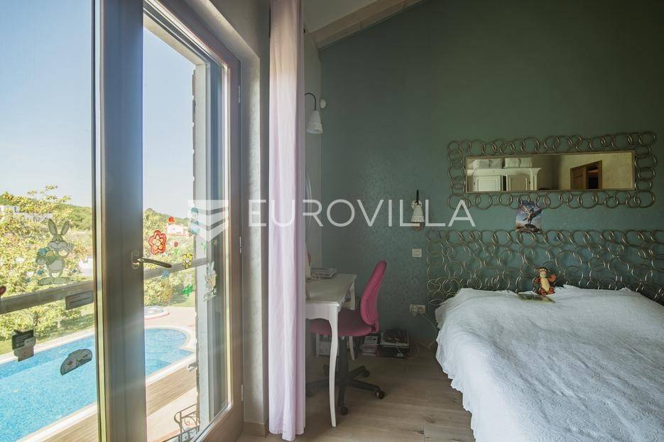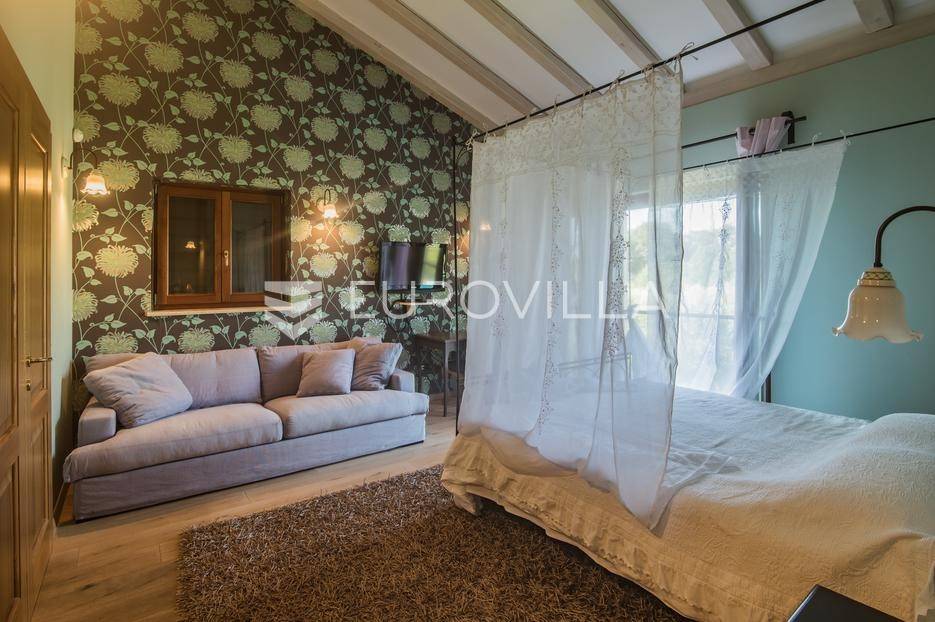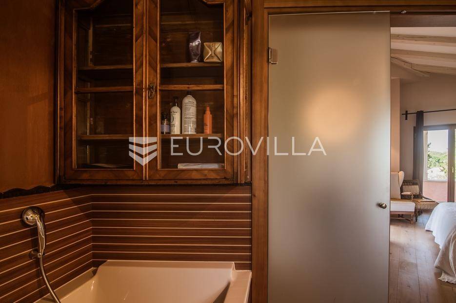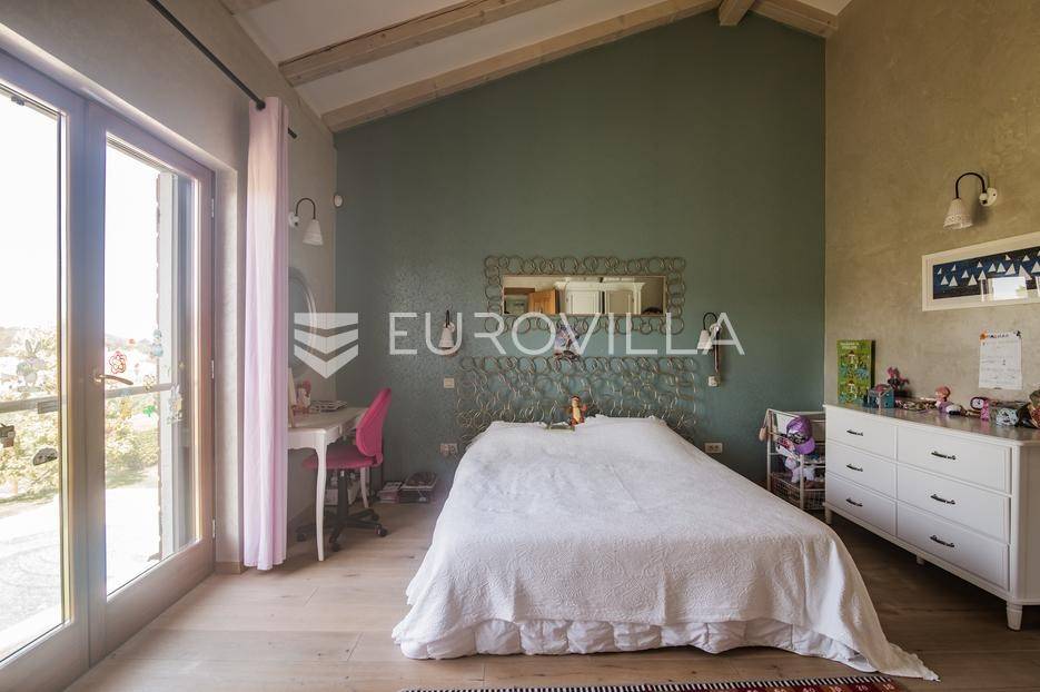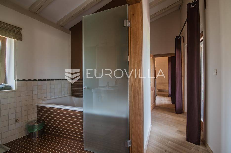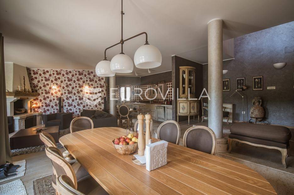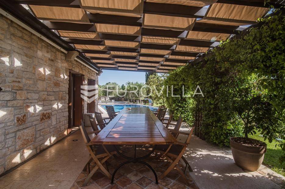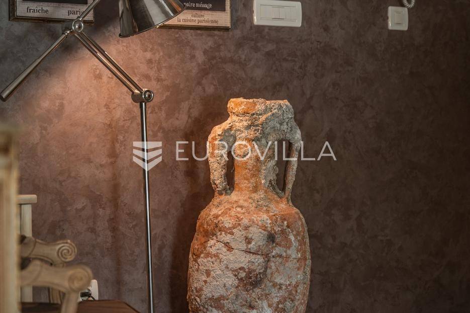 Istra, Šorići, ekskluzivna Vila Šorići: luksuzna kamena kuća s bazenom i predivnim bujnim vrtom te građevinsko zemljište 4621m2 tik uz parcelu kuće.Na izvanrednom posjedu smještenom u srcu prirodne ljepote otkrijte vrhunac sofisticiranog života u kamenoj kući u mjestu Šorići. Obuhvaćajući dvije temeljito osmišljene parcele ukupne površine 5383 m2, ovo imanje kombinira predivnu kamenu kuću s nizom izvanrednih sadržaja koji definiraju suvremeni luksuz.Glavna parcela (762 m2) sadrži kamenu kuću, remek-djelo arhitekture koja se proteže na približno 388 m² s 5 spavaćih soba, svaka sa svojom en suite kupaonicom, elegantnim interijerom, visokim stropovima i obilnom prirodnom svjetlošću.Na prostranom dvorištu od 525 m² koje se savršeno stapa s bujnim okruženjem nalazi se grijani bazen. Uživajte u cjelogodišnjem kupanjem u 43 m² bazenu s hidromasažom i umirujućim slapom. Na ulazu na imanje nalazi se natkriveno parkiralište te spremište s mogućnošću punjenja za električna vozila.Uz glavnu parcelu, nalazi se građevinska parcela (4621 m2) na kojoj se nalazi šarmantna vrtna kućica od 33 m2, koja nudi 17 m2 stambenog prostora i 16 m2 spremišta. Uz ovaj se prostor proteže natkrivena terasa od 17.5 m2, besprijekorno spajajući unutarnji i vanjski životni prostor.Kuća se sastoji od prizemlja i prvog kata. Prizemlje sadrži unutarnje spremište i prostoriju za pranje rublja, tehničku sobu, prostrani otvoreni prostor za dnevni boravak, blagovaonicu i kuhinju te jedinstvena rješenja za pohranu - pažljivo osmišljeni prostor ispod stepenica. Duž hodnika se nalazi gostinjski toalet i 2 spavaće sobe s vlastitim kupaonicama i izravnim pristupom vrtu i bazenu. Visoki stropovi, koji dosežu visinu od 8 metara, stvaraju prozračnu i veličanstvenu atmosferu u cijelom prostoru.Na prvom katu, prolazeći unutarnjom galerijom, nalaze se 2 spavaće sobe, svaka sa svojom kupaonicom, francuskim balkonom i pogledom na bazen i maslinike. Na kraju galerije nalazi se glavna spavaća soba s prostranim walk-in garderobnim ormarom i pristupom prostranoj gornjoj terasi koja se proteže na približno 50 m². Terasa se proteže na tri strane, pružajući prekrasan pogled a vanjske stepenice povezuju je s vrtom i bazenom u prizemlju.Posjed se može pohvaliti raznolikim sadržajima, uključujući grijanje i klimatizaciju koje pokreće električno upravljana toplinska pumpa s fen coil aparatima strateški integriranim diljem kuće. Dodatno, plinski sustav opslužuje ljetnu i unutarnju kuhinju kao i sustav grijanja vode. Energetska učinkovitost dodatno je poboljšana solarnim panelima koji doprinose grijanju vode za kuću i bazen. Oprema poput Starlink Interneta, WiFi audio/video sustavom s LP pločama, luksuznim vrtnim namještajem Royal Botania i Lotus uređajima industrijske klase u ljetnoj kuhinji, ova rezidencija nudi besprijekoran spoj udobnosti i sofisticiranosti. Poboljšane sigurnosne mjere, uključujući video nadzor i alarmni sustav osiguravaju mir bilo kojem zahtjevnom vlasniku.Bazen je opremljen naprednim značajkama, uključujući tretman slanom vodom za visokokvalitetnu vodu bez klora, primamljivo područje hidromasaže, čarobni vodopad, grijanje bazena, ambijentalna podvodna svjetla te praktičan ručni pokrivač bazena. Tehnička prostorija bazena smještena je na sunčalištu radi lakog pristupa.Za praktično parkiranje, tu je gornje privatno natkriveno parkiralište koje može primiti 2 automobila s dodatnom mogućnošću punjenja električnog vozila. Prostrano donje parkiralište, dostupno s pomoćne parcele, pruža dovoljno prostora za veći broj vozila.Posjed se ponosi očaravajućim detaljima, kao što su stare masline i citrusna palma istaknuta u posebno izrezbarenoj vazi. Elementi autentičnosti sačuvani su korištenjem vanjskih stepenica i ograde skinute s istarske kuće stare stoljećima. Ugodni kamin i dizajnerski namještaj usklađuju se sa starim istarskim seoskim komodama, vitrinama i antiknim artefaktima, poput autentične gradske venecijanske vitrine i drevne amfore. Razne vaze, stara šivaća mašina i stol za bridž dodaju karakter kući.Lokacija nudi praktičnost, sa Zračnom lukom Pula udaljenom 44 km. Plaža je lako dostupna, bilo u Limskom kanalu udaljenom 3 km ili u Rovinju udaljenom svega 10 km. U blizini se nalazi poznati restoran u Limskom kanalu ali i trgovina prehrambenih proizvoda u Rovinjskom selu, udaljenom samo 2 km.Posjed se prodaje kao kuća zasebno po cijeni od 1,250,000 eura ili zajedno sa građevinskom parcelom od 4621 m2 za 1,950,000 eura.Za više informacija kontaktirajte nas.... Više na eurovilla.hr, ID: 135027