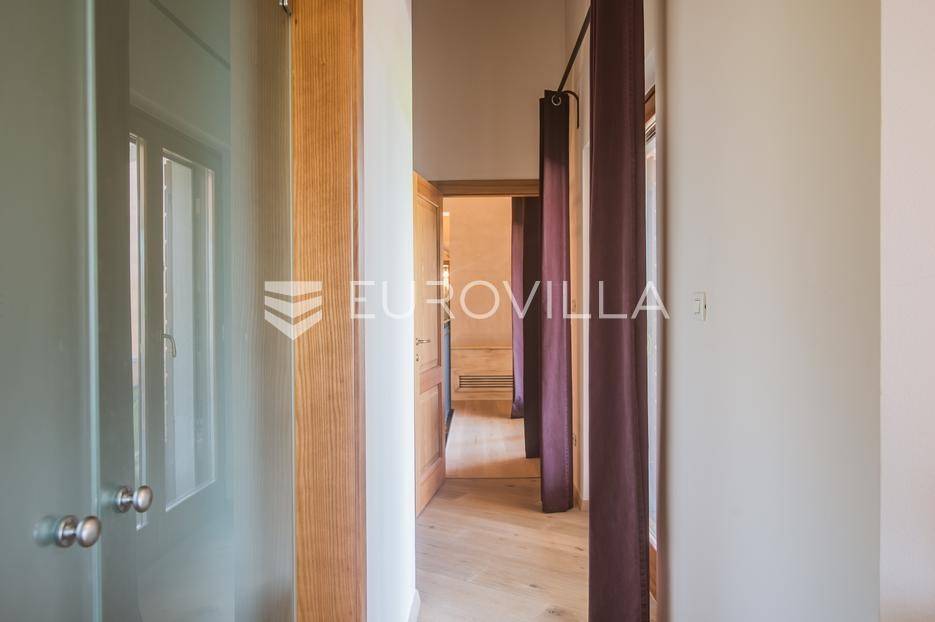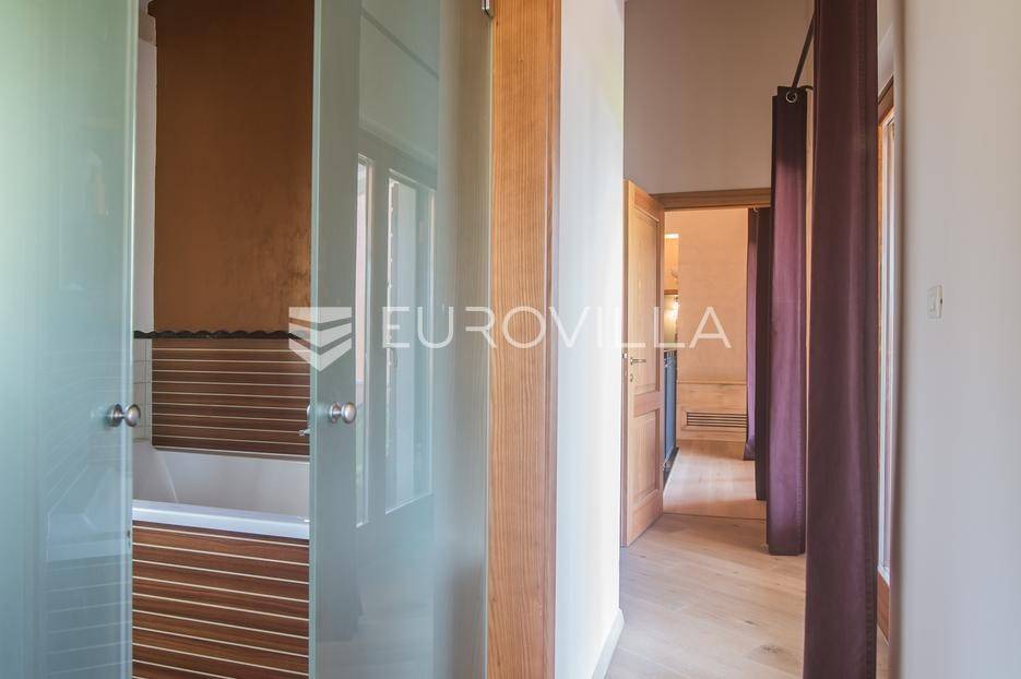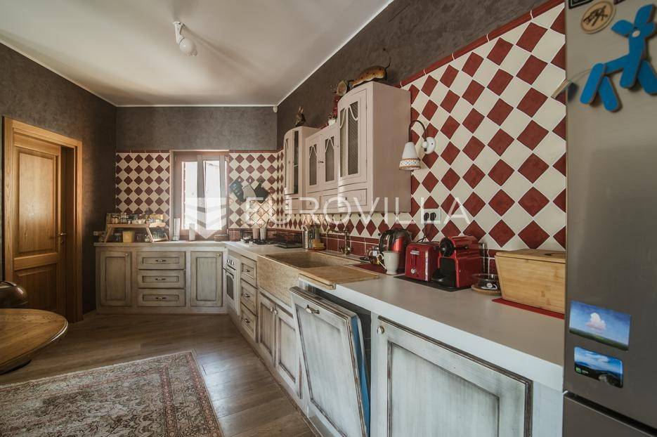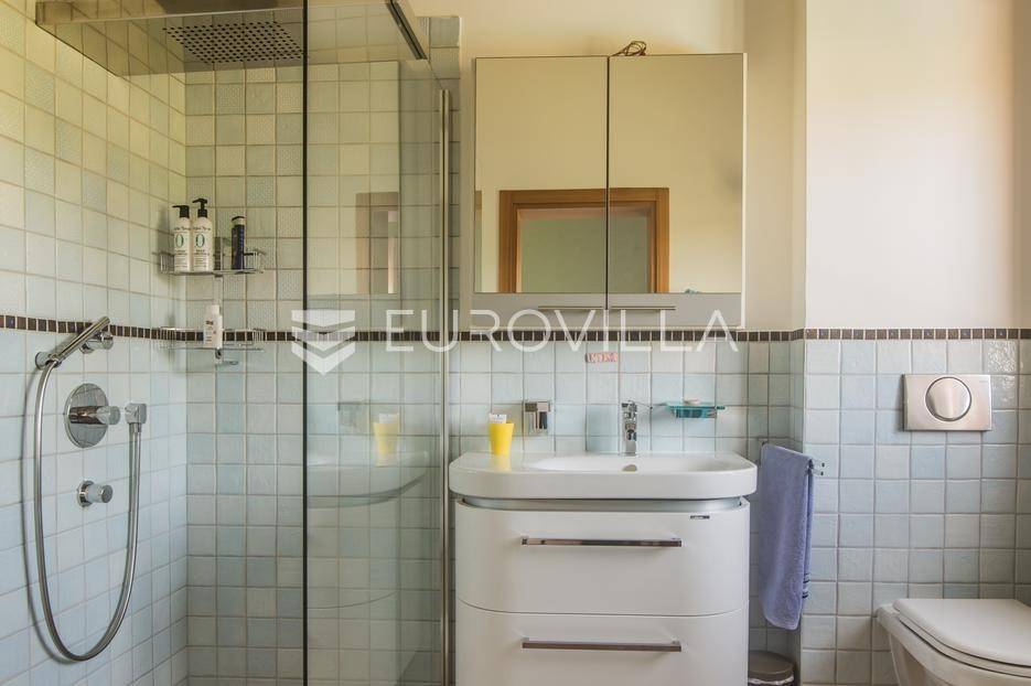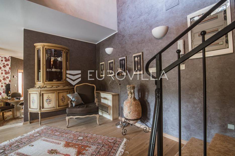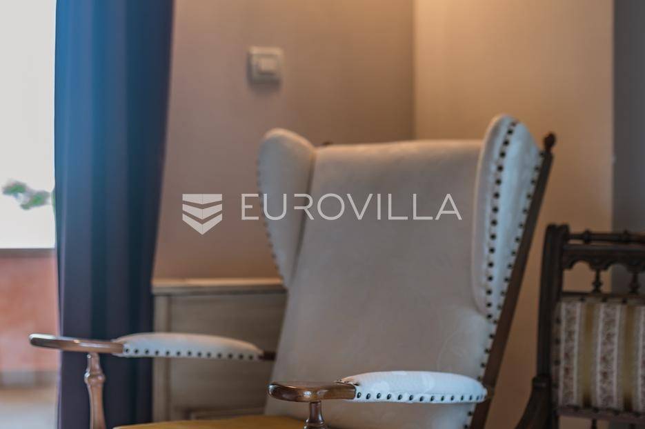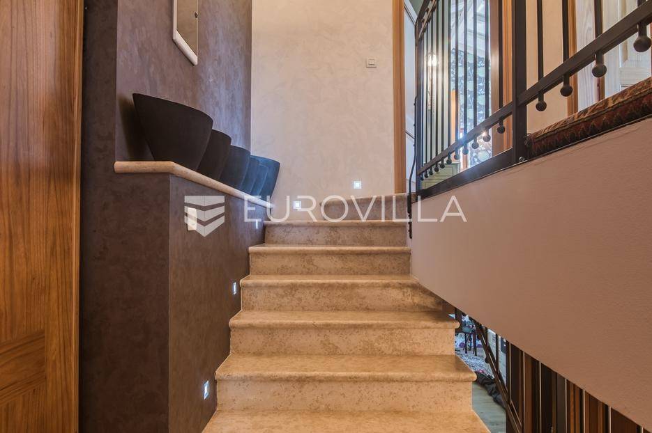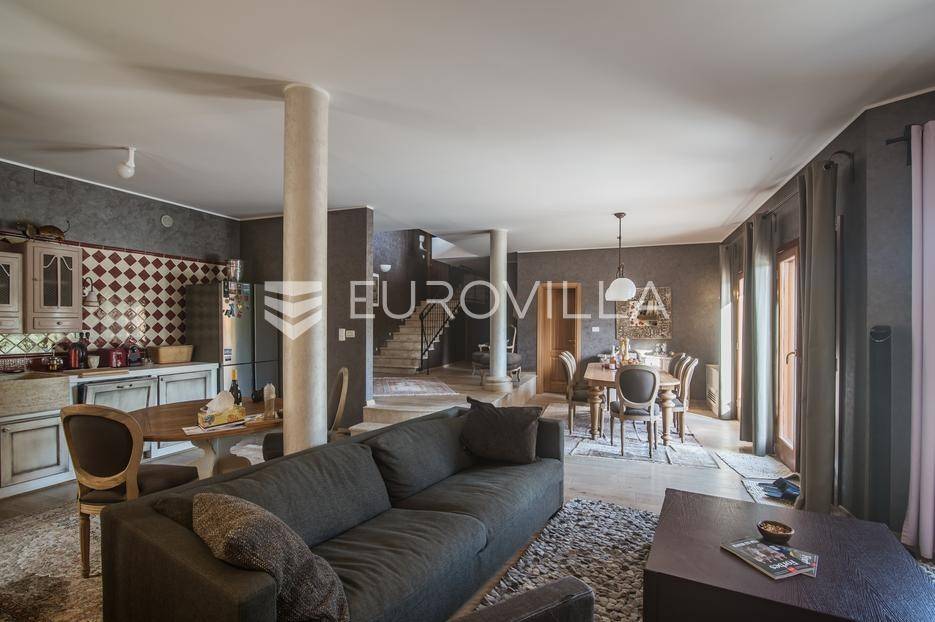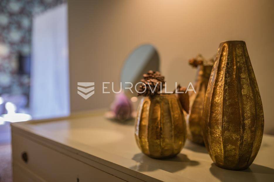 Istra, Šorići, ekskluzivna Vila Šorići: luksuzna kamena kuća s bazenom i predivnim bujnim vrtom te građevinsko zemljište 4621m2 tik uz parcelu kuće.Na izvanrednom posjedu smještenom u srcu prirodne ljepote otkrijte vrhunac sofisticiranog života u kamenoj kući u mjestu Šorići. Obuhvaćajući dvije temeljito osmišljene parcele ukupne površine 5383 m2, ovo imanje kombinira predivnu kamenu kuću s nizom izvanrednih sadržaja koji definiraju suvremeni luksuz.Glavna parcela (762 m2) sadrži kamenu kuću, remek-djelo arhitekture koja se proteže na približno 388 m² s 5 spavaćih soba, svaka sa svojom en suite kupaonicom, elegantnim interijerom, visokim stropovima i obilnom prirodnom svjetlošću.Na prostranom dvorištu od 525 m² koje se savršeno stapa s bujnim okruženjem nalazi se grijani bazen. Uživajte u cjelogodišnjem kupanjem u 43 m² bazenu s hidromasažom i umirujućim slapom. Na ulazu na imanje nalazi se natkriveno parkiralište te spremište s mogućnošću punjenja za električna vozila.Uz glavnu parcelu, nalazi se građevinska parcela (4621 m2) na kojoj se nalazi šarmantna vrtna kućica od 33 m2, koja nudi 17 m2 stambenog prostora i 16 m2 spremišta. Uz ovaj se prostor proteže natkrivena terasa od 17.5 m2, besprijekorno spajajući unutarnji i vanjski životni prostor.Kuća se sastoji od prizemlja i prvog kata. Prizemlje sadrži unutarnje spremište i prostoriju za pranje rublja, tehničku sobu, prostrani otvoreni prostor za dnevni boravak, blagovaonicu i kuhinju te jedinstvena rješenja za pohranu - pažljivo osmišljeni prostor ispod stepenica. Duž hodnika se nalazi gostinjski toalet i 2 spavaće sobe s vlastitim kupaonicama i izravnim pristupom vrtu i bazenu. Visoki stropovi, koji dosežu visinu od 8 metara, stvaraju prozračnu i veličanstvenu atmosferu u cijelom prostoru.Na prvom katu, prolazeći unutarnjom galerijom, nalaze se 2 spavaće sobe, svaka sa svojom kupaonicom, francuskim balkonom i pogledom na bazen i maslinike. Na kraju galerije nalazi se glavna spavaća soba s prostranim walk-in garderobnim ormarom i pristupom prostranoj gornjoj terasi koja se proteže na približno 50 m². Terasa se proteže na tri strane, pružajući prekrasan pogled a vanjske stepenice povezuju je s vrtom i bazenom u prizemlju.Posjed se može pohvaliti raznolikim sadržajima, uključujući grijanje i klimatizaciju koje pokreće električno upravljana toplinska pumpa s fen coil aparatima strateški integriranim diljem kuće. Dodatno, plinski sustav opslužuje ljetnu i unutarnju kuhinju kao i sustav grijanja vode. Energetska učinkovitost dodatno je poboljšana solarnim panelima koji doprinose grijanju vode za kuću i bazen. Oprema poput Starlink Interneta, WiFi audio/video sustavom s LP pločama, luksuznim vrtnim namještajem Royal Botania i Lotus uređajima industrijske klase u ljetnoj kuhinji, ova rezidencija nudi besprijekoran spoj udobnosti i sofisticiranosti. Poboljšane sigurnosne mjere, uključujući video nadzor i alarmni sustav osiguravaju mir bilo kojem zahtjevnom vlasniku.Bazen je opremljen naprednim značajkama, uključujući tretman slanom vodom za visokokvalitetnu vodu bez klora, primamljivo područje hidromasaže, čarobni vodopad, grijanje bazena, ambijentalna podvodna svjetla te praktičan ručni pokrivač bazena. Tehnička prostorija bazena smještena je na sunčalištu radi lakog pristupa.Za praktično parkiranje, tu je gornje privatno natkriveno parkiralište koje može primiti 2 automobila s dodatnom mogućnošću punjenja električnog vozila. Prostrano donje parkiralište, dostupno s pomoćne parcele, pruža dovoljno prostora za veći broj vozila.Posjed se ponosi očaravajućim detaljima, kao što su stare masline i citrusna palma istaknuta u posebno izrezbarenoj vazi. Elementi autentičnosti sačuvani su korištenjem vanjskih stepenica i ograde skinute s istarske kuće stare stoljećima. Ugodni kamin i dizajnerski namještaj usklađuju se sa starim istarskim seoskim komodama, vitrinama i antiknim artefaktima, poput autentične gradske venecijanske vitrine i drevne amfore. Razne vaze, stara šivaća mašina i stol za bridž dodaju karakter kući.Lokacija nudi praktičnost, sa Zračnom lukom Pula udaljenom 44 km. Plaža je lako dostupna, bilo u Limskom kanalu udaljenom 3 km ili u Rovinju udaljenom svega 10 km. U blizini se nalazi poznati restoran u Limskom kanalu ali i trgovina prehrambenih proizvoda u Rovinjskom selu, udaljenom samo 2 km.Posjed se prodaje kao kuća zasebno po cijeni od 1,250,000 eura ili zajedno sa građevinskom parcelom od 4621 m2 za 1,950,000 eura.Za više informacija kontaktirajte nas.... Više na eurovilla.hr, ID: 135027