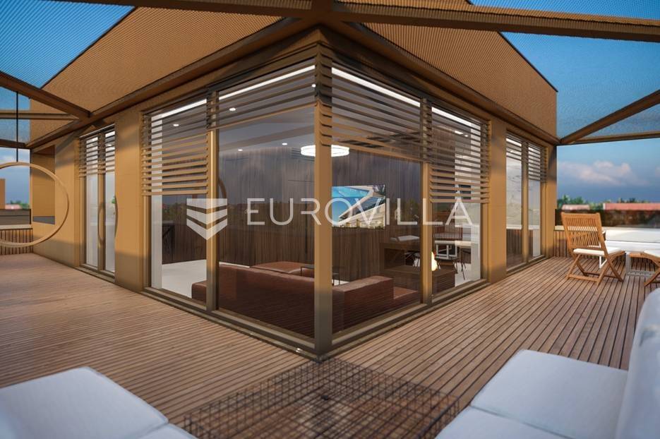Velika Gorica, luksuzna novogradnja (2023) projektirana prema suvremenim standardima gradnje. Izuzetno mirna lokacija u neposrednoj blizini centra grada te svih potrebnih sadržaja za život.STAN S4 (zgrada B)- četverosoban dvoetažan stan koji se prostire na drugom i trećem katu zgrade, zatvorene površine 123,62 m2.Donja etaža sastoji se od hodnika 11 m2, tri spavaće sobe (13 m2 / 9 m2 / 13 m2), kupaonice 4 m2 te lođe 4 m2.Gornja etaža (uvučeni kat) sastoji se od hall-a 8 m2, dnevnog boravka, blagovaonice i kuhinje 46 m2, stubišta 6 m2, kupaonice 4 m2, gospodarstva 5 m2 te nenatkrivene terase 61 m2. Sveukupne neto korisne površine stana 141 m2.Stanu pripada spremište 11 m2, garaža 17 m2, dva vanjska nenatkrivena parkirna mjesta 12 m2. Zajedno sa stanom Neto korisna površina iznosi 160 m2.Oprema:Troslojna Alu stolarija, komarnici, kombinacija ručno-autmatskih roletaVentilirana fasada 15 cm mineralne vune debljine 12 cm + silikonska završna žbuka.Ograde stubišta moderno/željezneDizala stambene građevine proizvođača OtisKeramičke pločice su prvoklasne, visoke kategorije.Izvor topline za grijanje biti će dizalica topline zrak/voda, podno grijanje, svi stanovi klimatiziraniProjekt Velika Gorica sastojat će se od ukupno 8 stambenih jedinica, različitih kvadratura, podijeljenih u 2 ulaza. Na taj način budući stanari mogu računati na veću udobnost stanovanja, praktičnost i intimnost. Nalazi se u neposrednoj blizini osnovne škole Eugena Kumičića, osnovne škole Nikole Hribara, dječjeg vrtića, doma zdravlja Velika Gorica, Farmacije, Superkonzuma, Interspara i teretane.Ostale informacije na upit.... Više na eurovilla.hr, ID: 198134