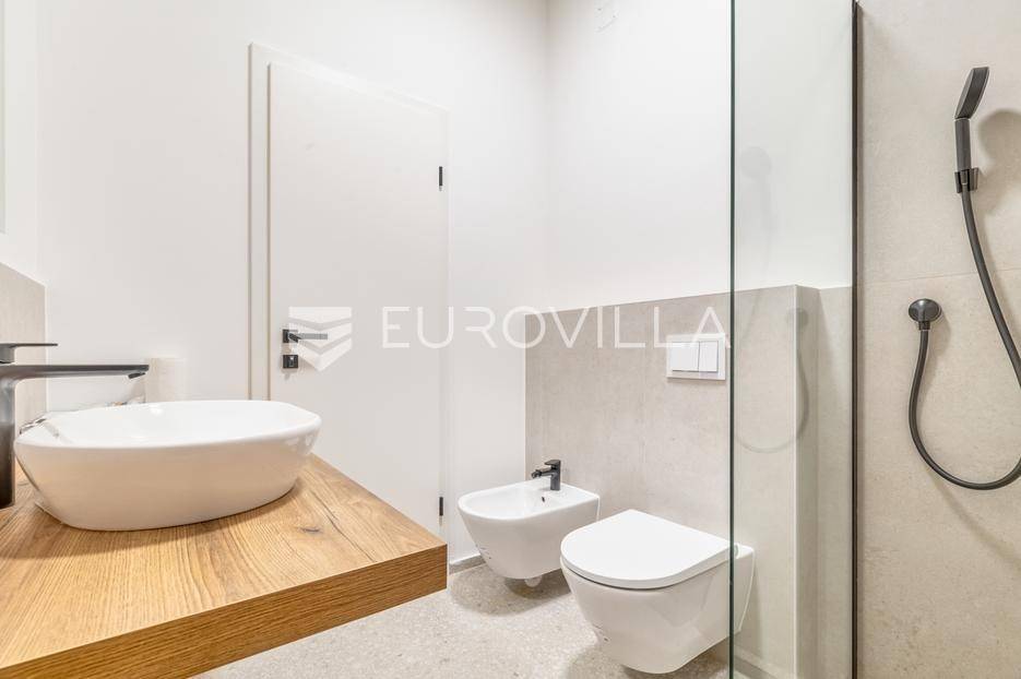 Prodaje se luksuzan četverosoban stan oznake S3 u novogradnji, smješten u samom centru Zagreba, u Ulici Augusta Šenoe.Ukupne neto korisne površine 107,08 m², stan se proteže kroz tri etaže te nudi visoku razinu privatnosti, udobnosti i modernog urbanog života.Stan je opremljen podnim etažnim plinskim grijanjem, a svaka prostorija klimatizirana je zasebnom jedinicom, što omogućuje maksimalnu kontrolu temperature i udobnosti tijekom cijele godine.Raspored prostorija:Prizemlje:ulazni prostorhodniktri prostrane, klimatizirane spavaće sobemoderna kupaonicaprostor za gospodarstvo (utility room)Kat:dnevni boravak s kuhinjom i blagovaonom otvorenog koncepta, ukupne površine 40 m², također klimatiziranizlaz na lijepu terasudodatna kupaonicaizba / ostavaKrovna etaža:privatna krovna terasa površine 44 m², idealna za opuštanje, druženja ili stvaranje zelenog kutka iznad gradaStanu pripada i vanjsko parkirno mjesto, što je izuzetna prednost za ovu lokaciju.Ova moderno projektirana novogradnja kombinira vrhunsku lokaciju, funkcionalan tlocrt i visoke standarde gradnje, čineći je idealnim izborom za obitelj, kao investiciju ili za one koji žele živjeti u centru grada uz maksimalnu udobnost.... Više na eurovilla.hr, ID: 205059