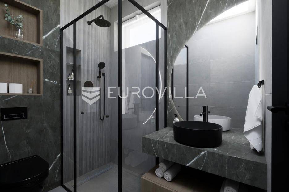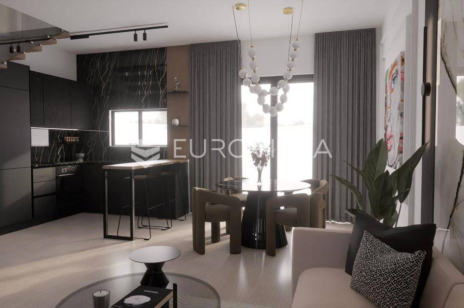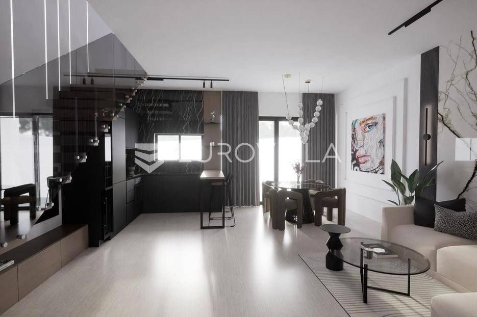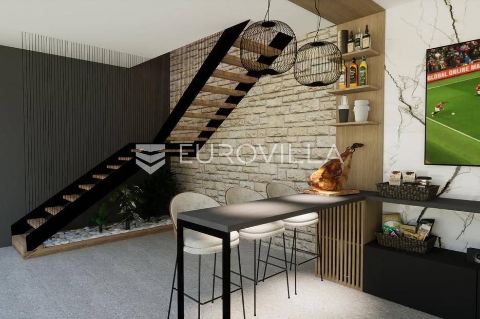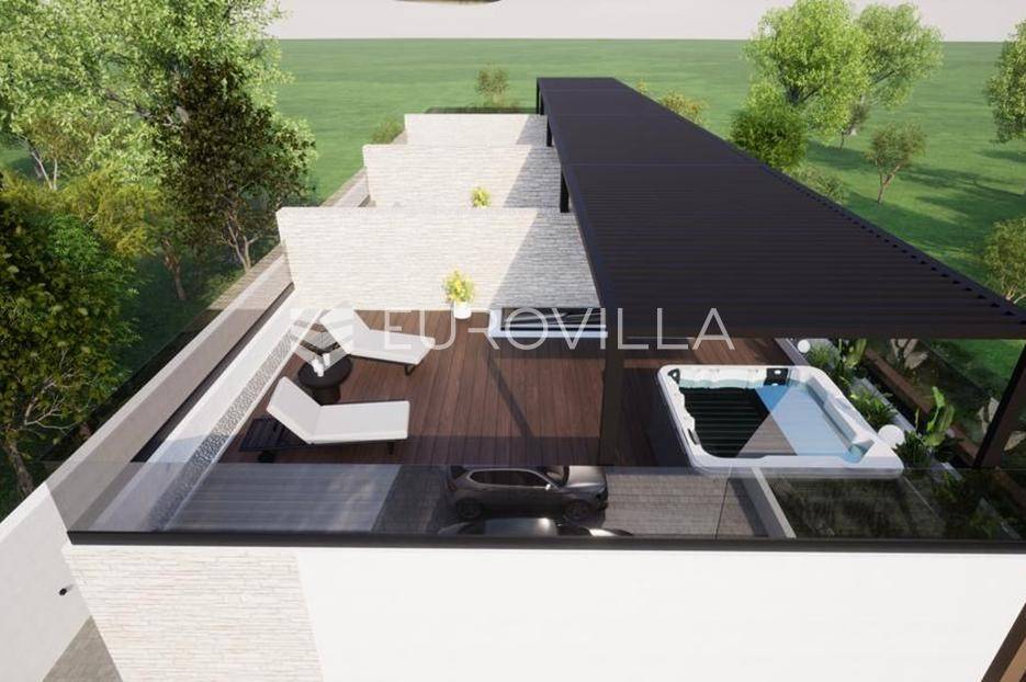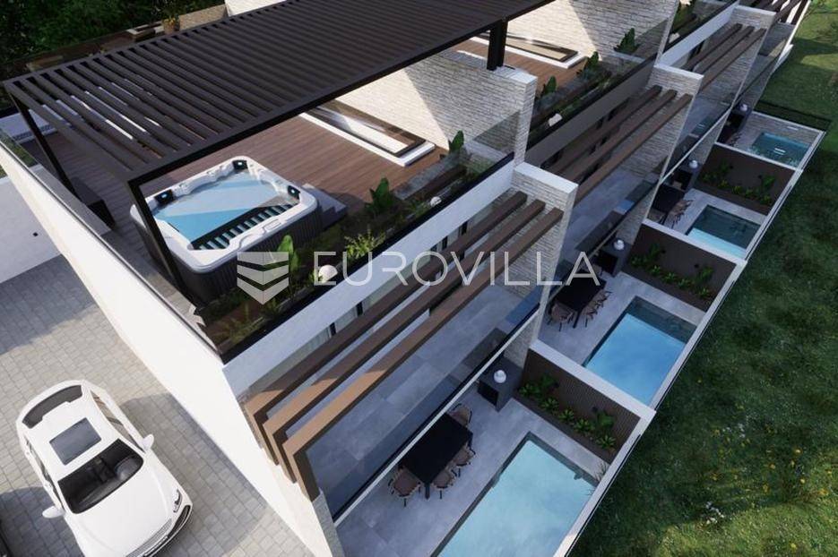 Vodice, NOVOGRADNJA, luksuzan projekt četiri kuća u nizu s pripadajućim terasama, bazenom, parkirnim mjestom na vrhunskoj lokaciji bit će građena po najvećim standardima, prati moderan i suvremen način života. Planirani završetak gradnje ljeto 2026. godine.Kuća S4 - zatvorene površine 84,76 m2, natkrivena terasa 10,90 m2, nenatkrivena terasa 80,10 m2. Ukupne podne površine 103,76 m2. Stanu pripada bazen na prvoj etaži i vanjsko parkirno mjesto. Postoji mogućnost potpunog opremanja i namještanja nekretnine po cijeni od 150.000€ i kupnja dodatnog vanjskog parkirnog mjesta za 15.000€.Kuća će biti izgrađena na dvije etaže, prizemlje i kat. Prizemlje se sastoji od ulaznog prostora, dnevnog boravka, kuhinje i blagovaonice otvorenog tlocrta s izlazom na polunatkrivenu terasu s bazenom, kupaonice, i spremišta. Na katu se nalaze predsoblje, dvije spavaće sobe, kupaonica i nenatkrivena terasa.Vrhunska oprema: dizalica topline, podno grijanje, klimatizirana svaka prostorija, ALU stolarija, protuprovalna ulazna vrata, parket I klase, vrhunska keramika i sanitarna oprema…Objekt se nalazi na izuzetnoj lokaciji u samom centru Vodica u neposrednoj blizini plaže i svih sadržaja potrebnih za kvalitetno življenje.Za sve ostale informacije stojimo na raspolaganju.... Više na eurovilla.hr, ID: 243041