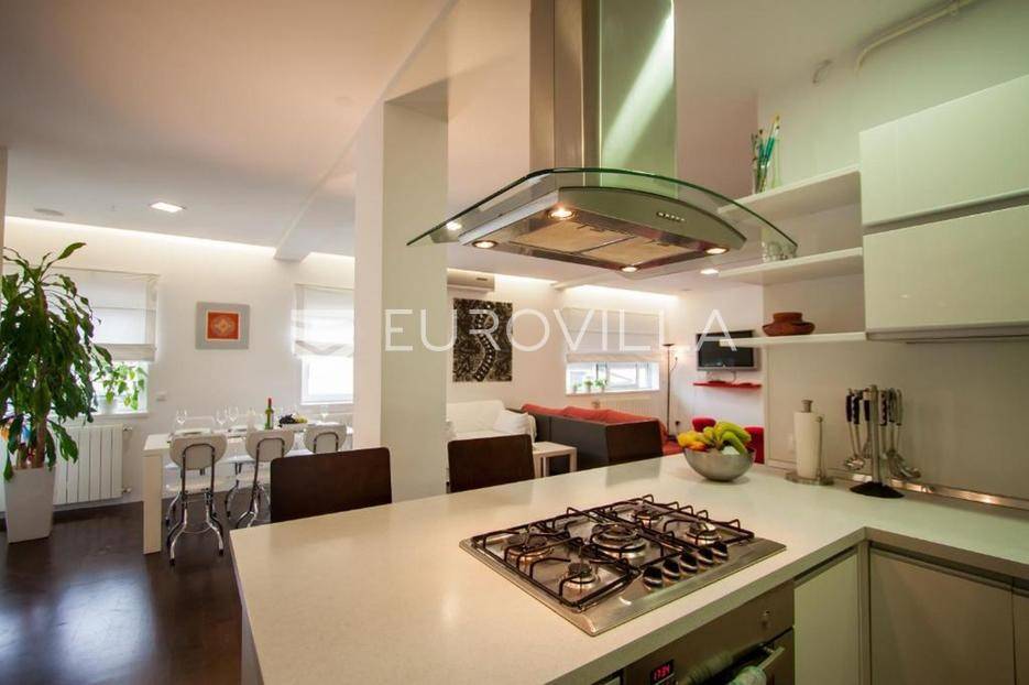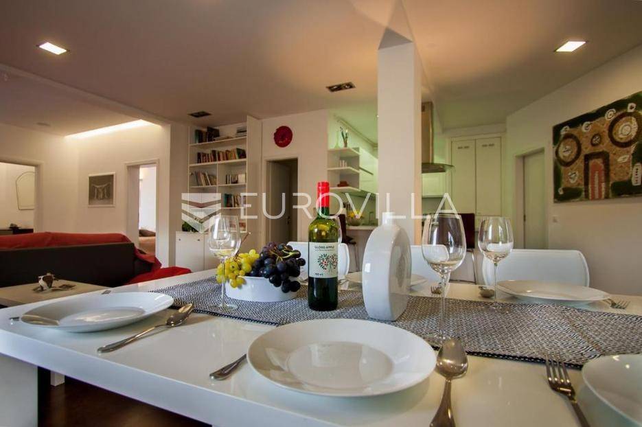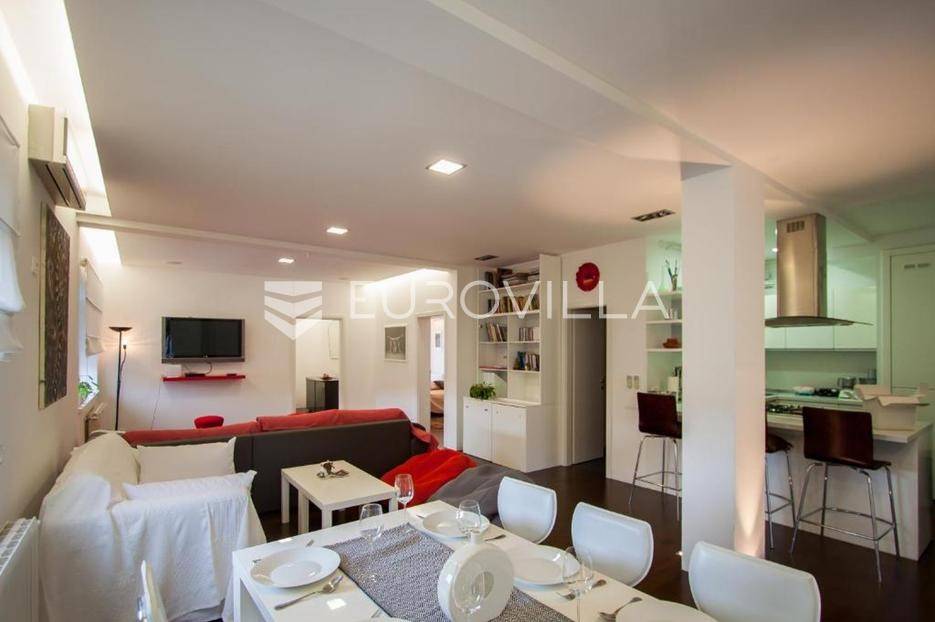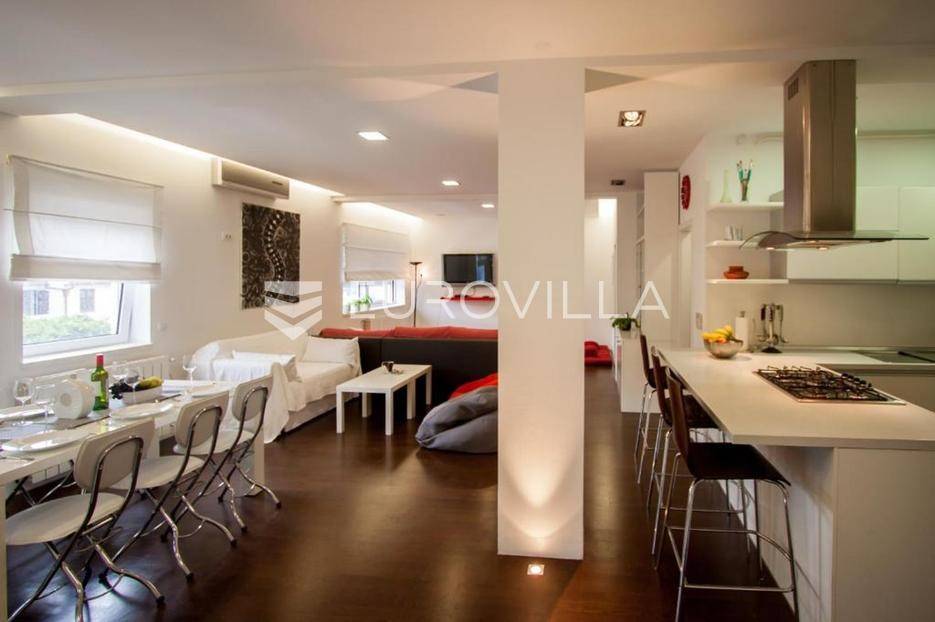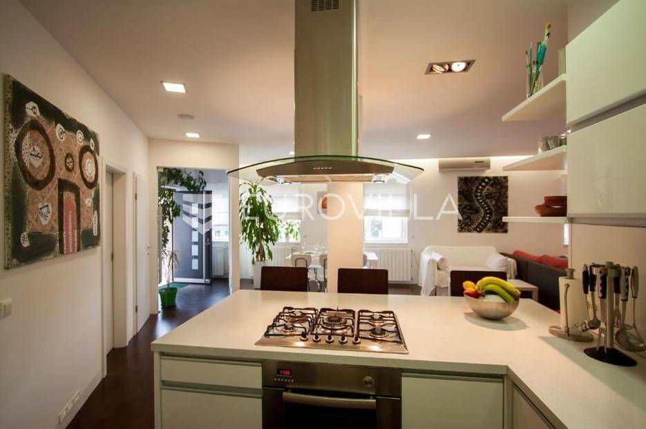 Na prodaju je prostran i izuzetno ugodan stan smješten na prvom katu kvalitetne stambene zgrade, na traženoj i praktičnoj lokaciji. Stan ukupne površine 110 m² osmišljen je tako da pruža maksimalnu funkcionalnost, ali i osjećaj topline i komfora već pri samom ulasku.Središnji dio stana čini veliki, svijetli dnevni prostor koji prirodno povezuje boravak i blagovaonicu, stvarajući idealno mjesto za svakodnevni život i opuštanje. Kuhinja je u neposrednoj blizini, potpuno opremljena i dodatno obogaćena smočnicom, što prostoru daje dodatnu praktičnost. Stan raspolaže s dvije spavaće sobe, od kojih se glavna ističe vlastitom moderno uređenom kupaonicom te izlazom na balkon-loggiu, savršenu za jutarnju kavu ili večernje opuštanje. Uz to, na raspolaganju je i dodatan wc.Za ugodnu temperaturu tijekom cijele godine brinu centralni sustav grijanja te tri klima uređaja. Stan je održavan, lijepo uređen i spreman za useljenje bez dodatnih ulaganja, što ga čini odličnim izborom kako za obiteljski život, tako i za investiciju.U neposrednoj blizini zgrade nalazi se javni parking, što omogućuje jednostavno i bezbrižno parkiranje. Vlasništvo je uredno.Za dodatne informacije ili dogovor oko razgledavanja, slobodno se javite.... Više na eurovilla.hr, ID: 249527