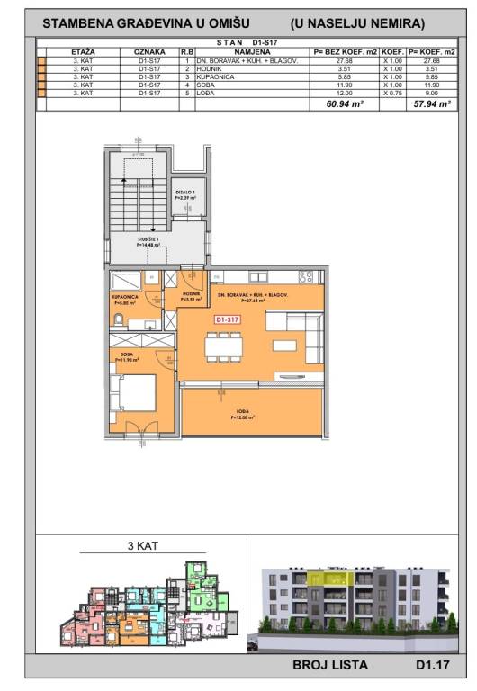 Omiška rivijera, jednosoban stan južne orijentacije, u modernoj novogradnji udaljenoj samo 150 metara od mora.STAN S17 nalazi se na trećem katu zgrade i ima 48.94 m2 zatvorene stambene površine. Sastoji se od jedne spavaće sobe, hodnika, kupaonice, kuhinje s blagovaonicom i dnevnog boravka. Iz blagovaonice se izlazi na lođu površine 12.00 m2.Uz stan je moguća kupnja garažnog ili vanjskog parkirnog mjesta, kao i ostave.Oprema: podno grijanje u dnevnom boravku i kupaonici, klima uređaj u sobi i dnevnom boravku, električne rolete, PVC stolarija s troslojnim staklom, klizne aluminijske stijene, staklena ograda, kvalitetna keramika i sanitarna oprema.Zgrada se nalazi u mirnom naselju, svega 145 metara od mora i prekrasnih plaža. Blizina grada Omiša, udaljenog samo 1,5 kilometara, omogućuje jednostavan pristup svim potrebnim sadržajima. Split je udaljen 25 kilometara, a Zračna luka 45 kilometara.Kupac ne plaća porez na promet nekretnina za stanove iz ovog projekta.Planirani završetak gradnje je krajem 2027. godine.Za više informacija, stojimo vam na raspolaganju.... Više na eurovilla.hr, ID: 255451