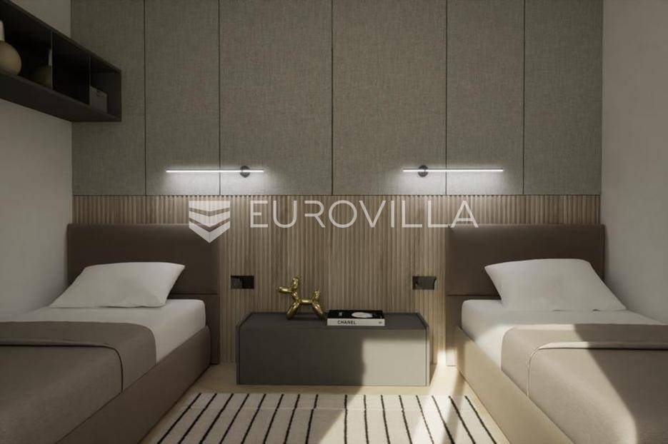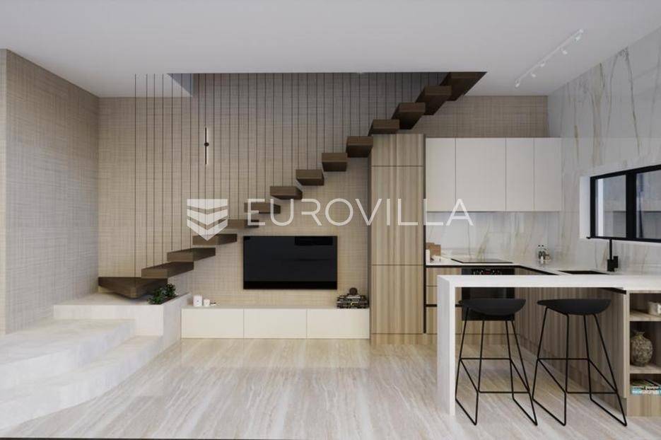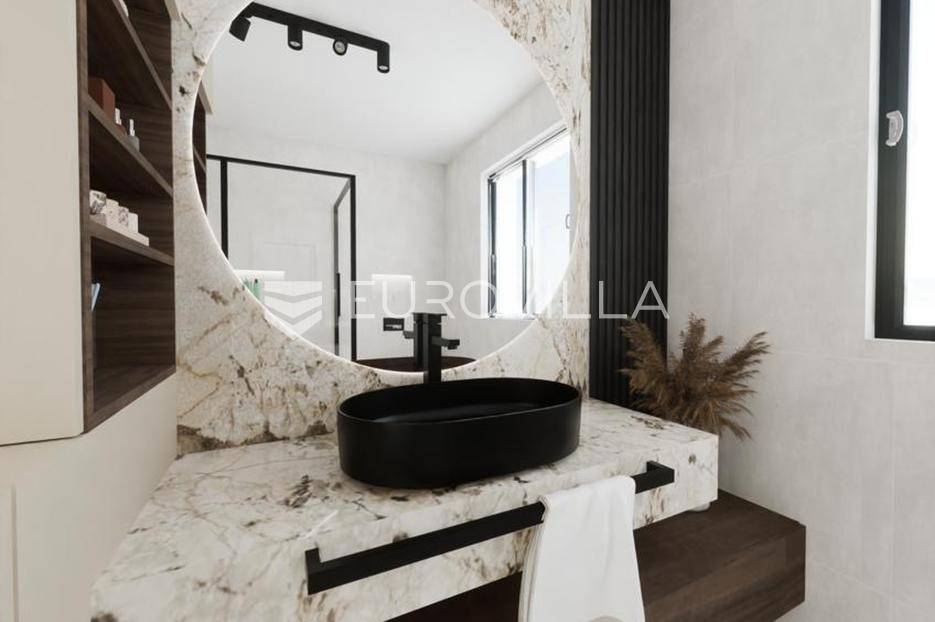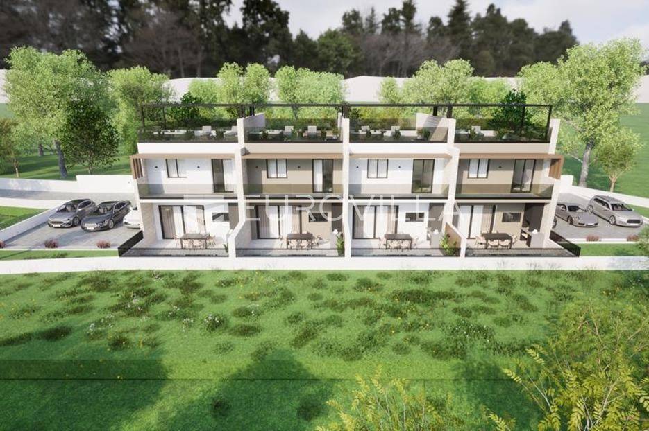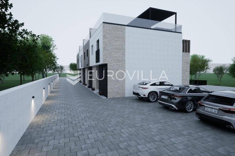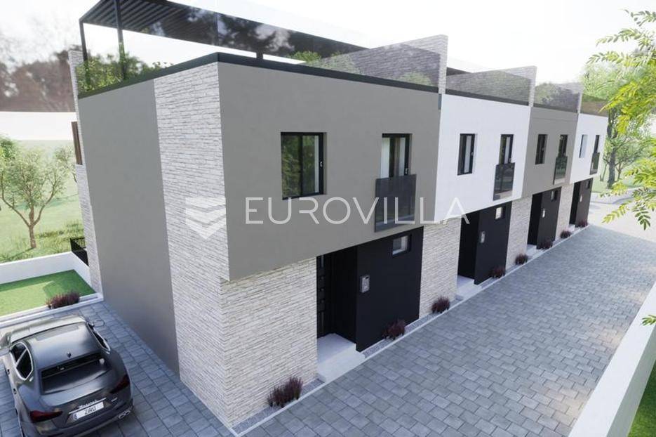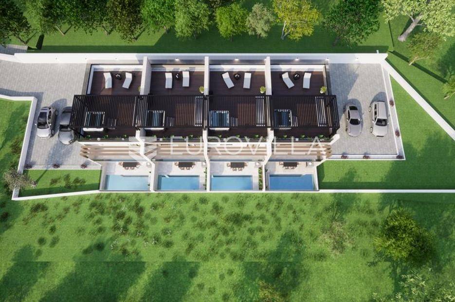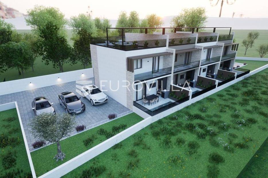 Vodice, NOVOGRADNJA, luksuzan projekt četiri kuća u nizu s pripadajućim terasama, bazenom, parkirnim mjestom na vrhunskoj lokaciji bit će građena po najvećim standardima, prati moderan i suvremen način života. Planirani završetak gradnje ljeto 2026. godine.Kuća S1 - zatvorene površine 84,76 m2, natkrivena terasa 10,90 m2, nenatkrivena terasa 80,10 m2. Ukupne podne površine 103,76 m2. Stanu pripada bazen na prvoj etaži i vanjsko parkirno mjesto. Postoji mogućnost potpunog opremanja i namještanja nekretnine po cijeni od 150.000€ i kupnja dodatnog vanjskog parkirnog mjesta za 15.000€.Kuća će biti izgrađena na dvije etaže, prizemlje i kat. Prizemlje se sastoji od ulaznog prostora, dnevnog boravka, kuhinje i blagovaonice otvorenog tlocrta s izlazom na polunatkrivenu terasu s bazenom, kupaonice, i spremišta. Na katu se nalaze predsoblje, dvije spavaće sobe, kupaonica i nenatkrivena terasa.Vrhunska oprema: dizalica topline, podno grijanje, klimatizirana svaka prostorija, ALU stolarija, protuprovalna ulazna vrata, parket I klase, vrhunska keramika i sanitarna oprema…Objekt se nalazi na izuzetnoj lokaciji u samom centru Vodica u neposrednoj blizini plaže i svih sadržaja potrebnih za kvalitetno življenje.Za sve ostale informacije stojimo na raspolaganju.... Više na eurovilla.hr, ID: 256592
