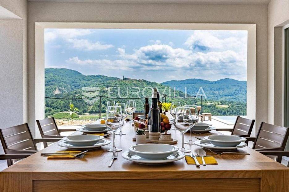 U okruženju potpune tišine i netaknute prirode smještena je jedinstvena nekretnina u tipu hacijende, idealna za one koji traže mir, privatnost i poseban način života. Riječ je o samostojećoj vili osmišljenoj kao skladna cjelina više stambenih jedinica, s ukupnom stambenom površinom od 386,56 m², smještenoj na impresivnom zemljištu površine 20.010 m².Ono što ovu nekretninu čini uistinu posebnom jest način gradnje temeljen na Hipokratovim principima, inspiriranima drevnom grčkom arhitekturom i prirodnim zakonima. Posebna pažnja posvećena je energetskoj učinkovitosti i optimalnoj orijentaciji prema suncu, čime se omogućuje maksimalno iskorištavanje prirodne solarne energije tijekom cijele godine. Masivni sjeverni zid zadržava toplinu, dok je južna strana osmišljena tako da ljeti štiti od visokog sunca, a zimi propušta nisko sunce, osiguravajući ugodnu temperaturu i obilje prirodne svjetlosti u interijeru bez pregrijavanja.Glavni dio vile prostire se na dvije etaže, prizemlje i kat, ukupne površine 299,56 m², dok se u stražnjem dijelu imanja nalazi pomoćni objekt od 87 m². Već pri samoj gradnji ovog jedinstvenog objekta posebna se pozornost posvetila kvaliteti materijala, tehničkim rješenjima i dugoročnoj održivosti. Prizemlje glavne vile oblikovano je u otvorenom konceptu koji povezuje dnevni boravak i kuhinju, stvarajući prozračan i ugodan prostor za boravak. Dodatni sadržaji na ovoj etaži uključuju spremišta, sanitarne prostorije te jednu manju prostoriju koja budućem vlasniku pruža mogućnost uređenja wellness sadržaja poput saune ili slane sobe. Iz dnevnog boravka izlazi se na natkrivenu terasu s rijetkim i očaravajućim pogledom na okolnu prirodu.Na katu su smještene dvije prostrane master spavaće sobe, svaka s vlastitom kupaonicom, osiguravajući maksimalnu privatnost i udobnost. U sklopu prizemlja, uz glavnu vilu, nalaze se i tri pažljivo dizajnirana apartmana, osmišljena prema SMART konceptu kako bi se maksimalno iskoristio svaki dio prostora i osigurao funkcionalan, ali ugodan boravak.Dodatni objekt iza vile podijeljen je u dvije cjeline, pri čemu je jedna zamišljena kao stambeni prostor, dok je druga predviđena za rekreaciju i opuštanje, što dodatno obogaćuje mogućnosti korištenja ove nekretnine.Okućnica se skladno uklapa u prirodni okoliš te nudi potpunu privatnost i izniman osjećaj mira. Posebnu pažnju privlači bazen vrhunske kvalitete, obložen Appiani pločicama koje mu daju izuzetno atraktivan vizualni dojam. Prostor oko bazena osmišljen je kao zona potpunog uživanja, sa sunčalištem, vanjskim prostorom za objedovanje i grill zonom, idealnom za druženja na otvorenom.Vila se prodaje potpuno opremljena visokokvalitetnim namještajem izrađenim po mjeri. Dodatnu sigurnost i praktičnost osigurava suvremeni sustav videonadzora povezan s alarmom, uz mogućnost upravljanja putem pametnog telefona i automatsko otvaranje ulazne kapije. Pomno birani materijali i napredne tehnike gradnje rezultirali su iznimno kvalitetnom i rijetkom nekretninom na tržištu, koja zahvaljujući južnoj orijentaciji uživa obilje sunca tijekom cijele godine, a pritom zadržava ugodnu i stabilnu unutarnju klimu.Za više informacija ili dogovor oko razgledavanja ove jedinstvene nekretnine stojimo vam na raspolaganju.... Više na eurovilla.hr, ID: 273929