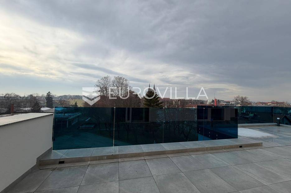 Đakovo, strogi Centar, moderan stan u novogradnji, u kvalitetnoj stambenoj zgradi s liftom unutar zgrade te vanjskim liftom prilagođenim osobama s invaliditetom. Zgrada ima podzemnu garažu, spremišta, natkrivena parkirna mjesta te prostor u podrumu za bicikle i dječja kolica. Pristup 4. katu moguć je isključivo karticom u liftu, kao i zatvoreno stepenište, što osigurava dodatnu sigurnost i privatnost.Stan ukupne stambene površine 96,88 m2 sastoji se od dvije spavaće sobe, dvije kupaonice, hodnika, ostave te kuhinje s blagovaonicom i dnevnim boravkom. Iz dnevnog boravka izlazi se na prostranu terasu/balkon, dok se iz spavaćih soba izlazi na dodatni balkon/terasu, ukupne površine 57,14 m2. Stanu pripada spremište u zgradi te natkriveno parkirno mjesto, uz mogućnost povezivanja s drugim stanom na istom katu.Stan je vrhunski opremljen: podno grijanje s akumulacijom u cijelom stanu i na terasama (za otapanje snijega), klima uređaji u svim sobama, električne roletne, te fotonaponski sustav. Nekretnina se nalazi u neposrednoj blizini autobusnog kolodvora, centra grada, trgovina, kafića, restorana, škola i vrtića, što je čini idealnim izborom za obiteljski život ili sigurnu investiciju.Ostale informacije na upit.... Više na eurovilla.hr, ID: 275783