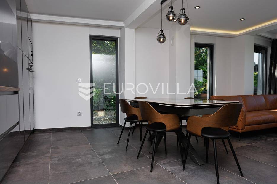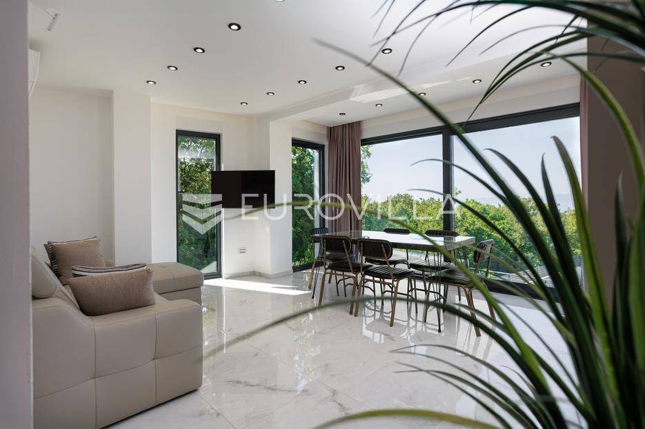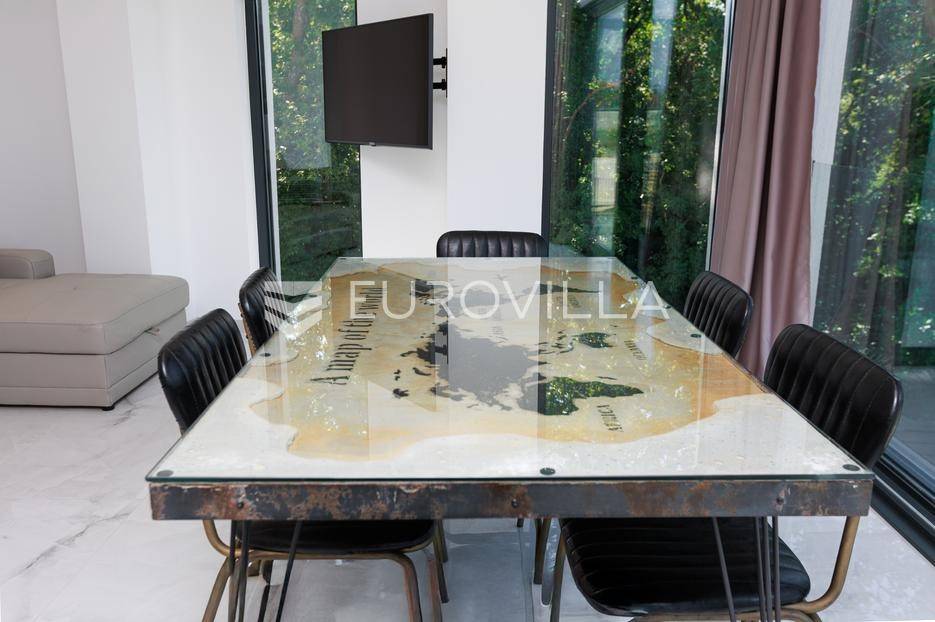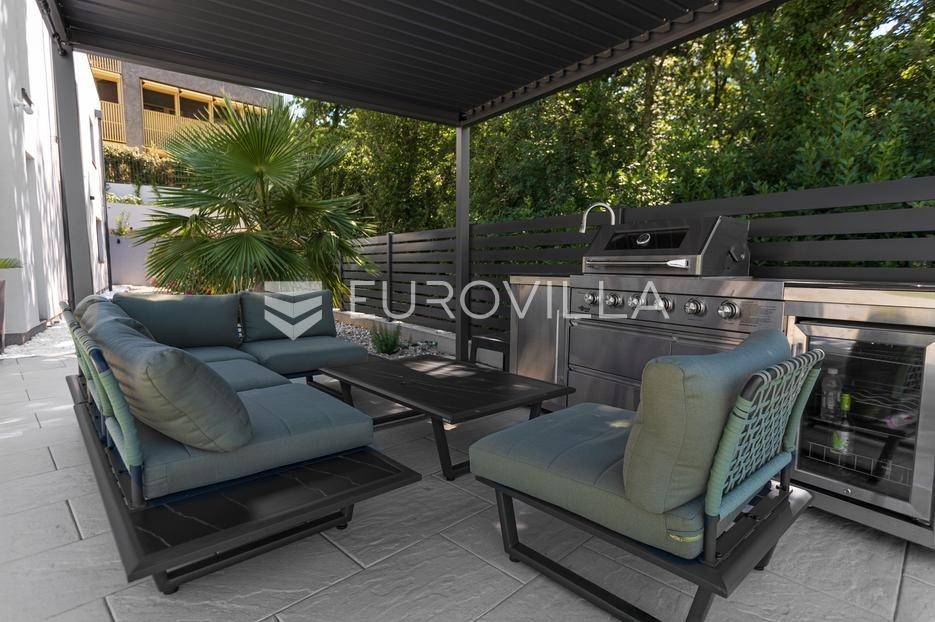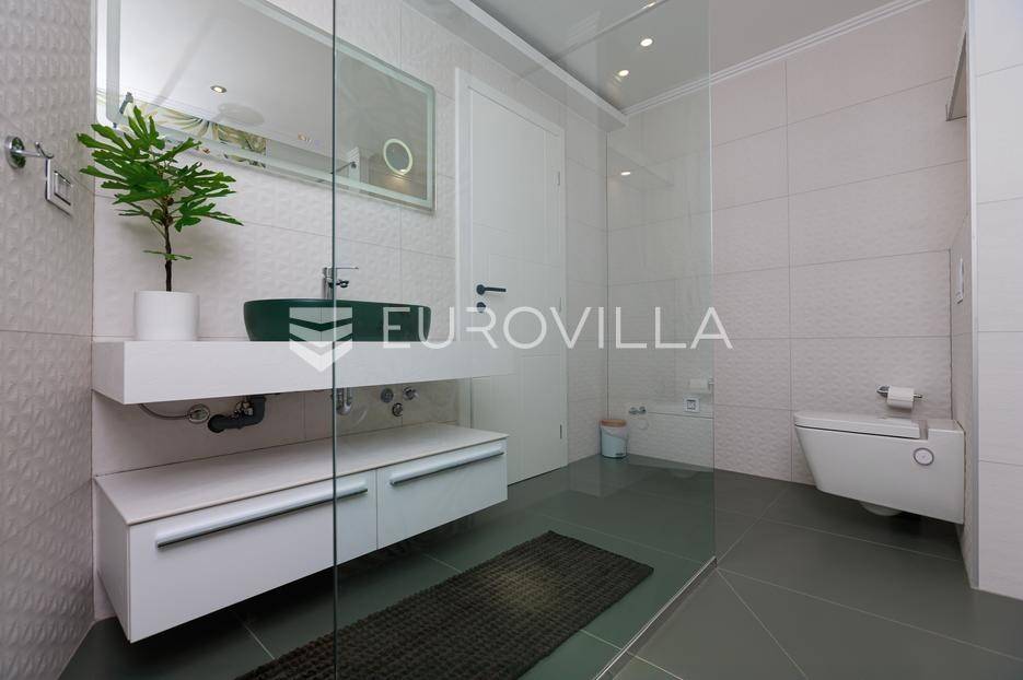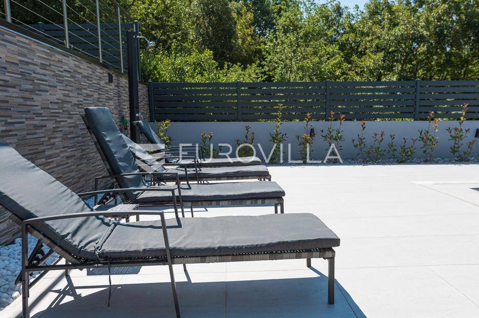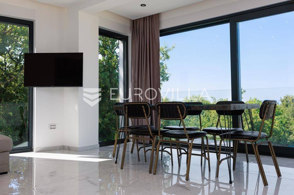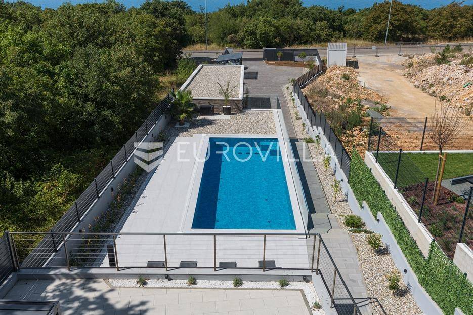 Rijeka, Kostrena, Paveki, najam ville s 2 stana 279m2, pomoćnim objektom i bazenom, udaljene od mora svega 150 m. Između lijepih, uređenih kostrenskih plaža, koje se kilometarski protežu od istoka prema zapadu i kuće je zaštićen zeleni pojas, a na istočnoj strani cijelom dužinom parcele proteže se šuma. Iznimna lokacija čini ovu nekretninu poželjnom za obitelj zbog gradnje novog dječjeg vrtića u blizini.Kuća ima dva odvojena stana - u prizemlju dvosobni s velikim dnevnim dijelom i 2 kupaonice, iz kojeg se izlazi na terasu i bazen. Na terasi će biti ljetna kuhinja s pergolom. Na drugom katu nalazi se trosoban stan s prostranim dnevnim boravkom, dvije kupaonice te unutarnjim stepenicama koje vode na impresivnu krovnu terasu površine 120m². Terasa nudi brojne mogućnosti za uživanje i opuštanje na otvorenom,već su postavljene instalacije vode i struje, što budućim vlasnicima omogućuje jednostavnu ugradnju jacuzzija ili druge dodatne opreme po želji.Iz svih južnih dijelova novogradnje pruža se pogled na more, a s terase je izniman pogled na cijeli Kvarner i otoke.Bazen je površine 40m2, ima tehničku komoru i mogućnost zagrijavanja.Pomoćni objekt, neto površine 50m2, ima jednu sobu, kupaonicu i veću sobu koja se može koristiti kao teretana, studio, salon za goste i slično.Dokumenti uredni, obratite se za više informacija.... Više na eurovilla.hr, ID: 283694