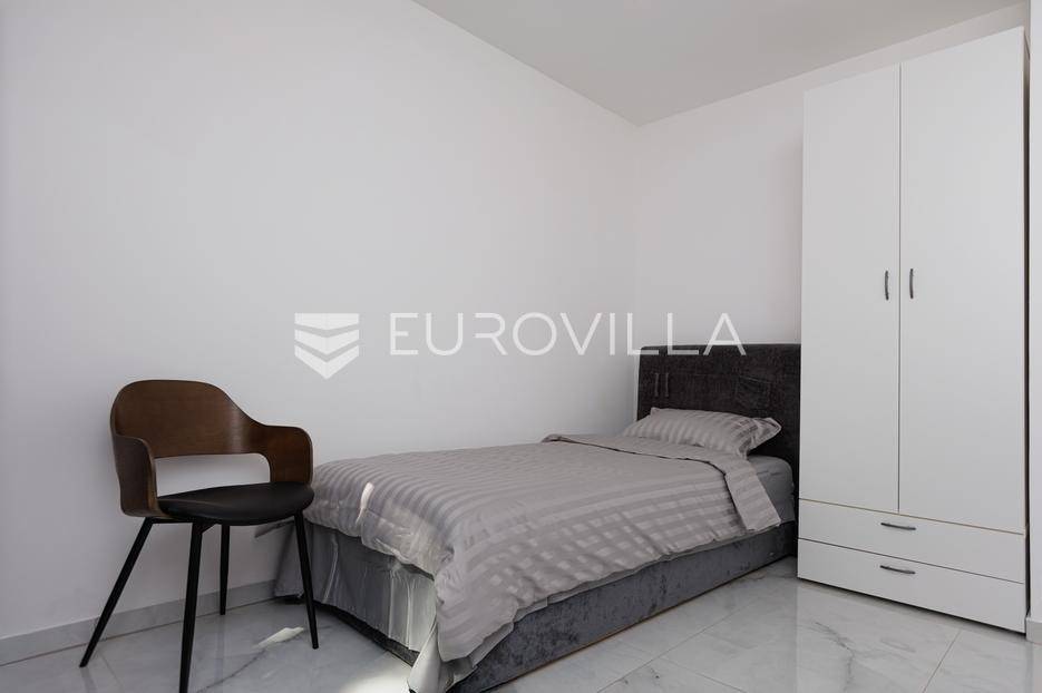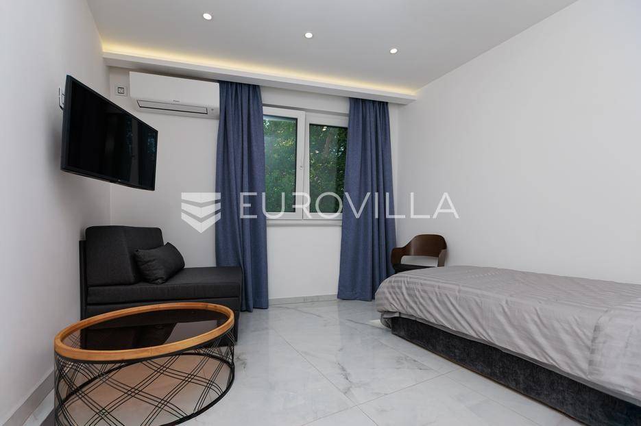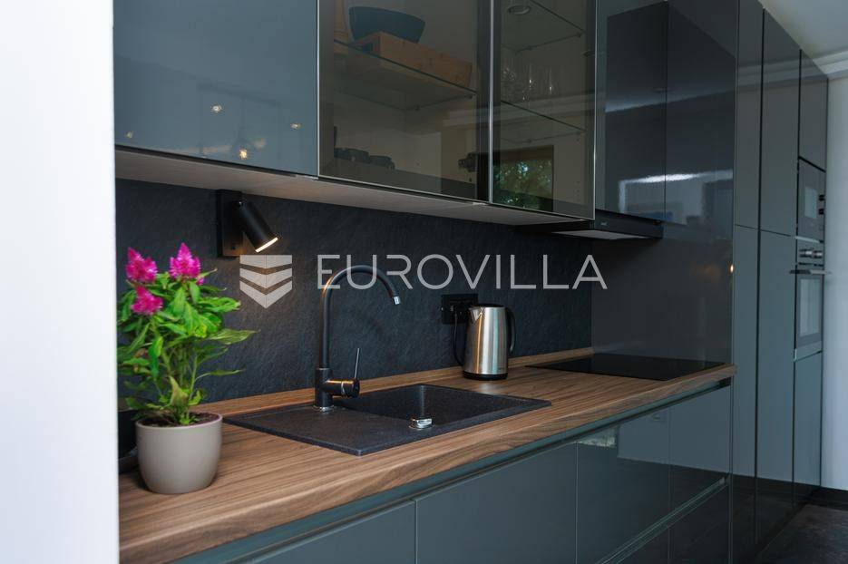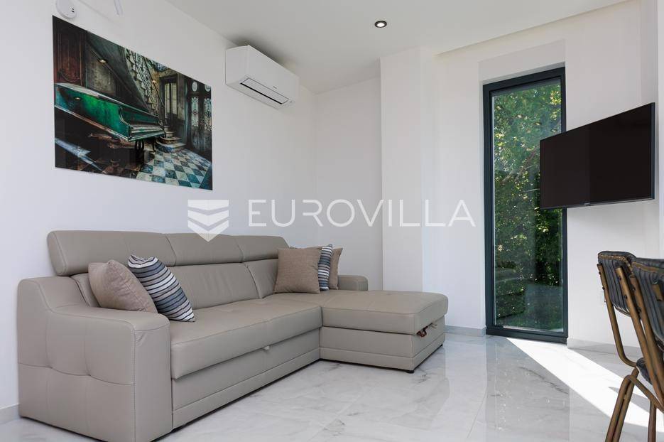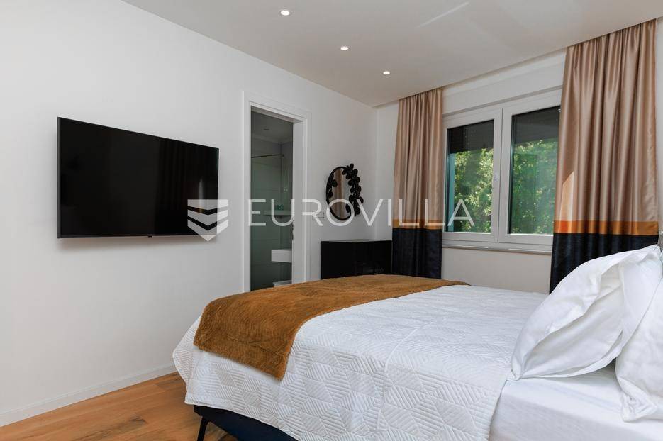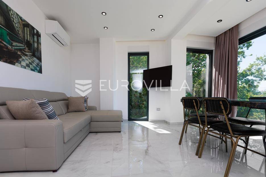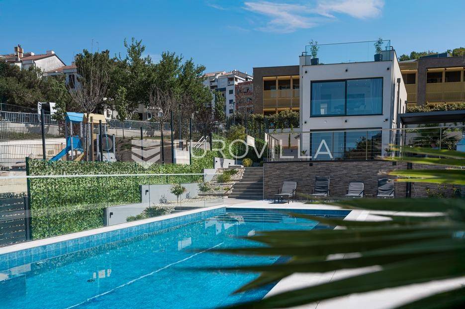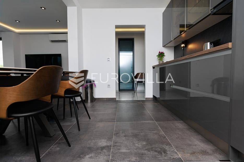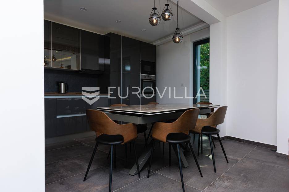 Rijeka, Kostrena, Paveki, najam ville s 2 stana 279m2, pomoćnim objektom i bazenom, udaljene od mora svega 150 m. Između lijepih, uređenih kostrenskih plaža, koje se kilometarski protežu od istoka prema zapadu i kuće je zaštićen zeleni pojas, a na istočnoj strani cijelom dužinom parcele proteže se šuma. Iznimna lokacija čini ovu nekretninu poželjnom za obitelj zbog gradnje novog dječjeg vrtića u blizini.Kuća ima dva odvojena stana - u prizemlju dvosobni s velikim dnevnim dijelom i 2 kupaonice, iz kojeg se izlazi na terasu i bazen. Na terasi će biti ljetna kuhinja s pergolom. Na drugom katu nalazi se trosoban stan s prostranim dnevnim boravkom, dvije kupaonice te unutarnjim stepenicama koje vode na impresivnu krovnu terasu površine 120m². Terasa nudi brojne mogućnosti za uživanje i opuštanje na otvorenom,već su postavljene instalacije vode i struje, što budućim vlasnicima omogućuje jednostavnu ugradnju jacuzzija ili druge dodatne opreme po želji.Iz svih južnih dijelova novogradnje pruža se pogled na more, a s terase je izniman pogled na cijeli Kvarner i otoke.Bazen je površine 40m2, ima tehničku komoru i mogućnost zagrijavanja.Pomoćni objekt, neto površine 50m2, ima jednu sobu, kupaonicu i veću sobu koja se može koristiti kao teretana, studio, salon za goste i slično.Dokumenti uredni, obratite se za više informacija.... Više na eurovilla.hr, ID: 283694