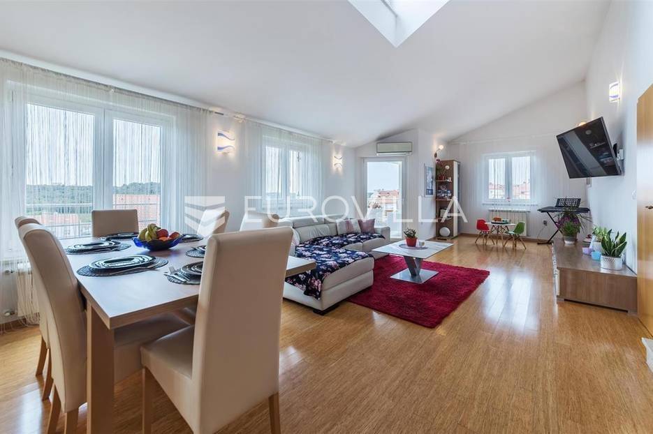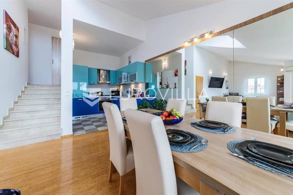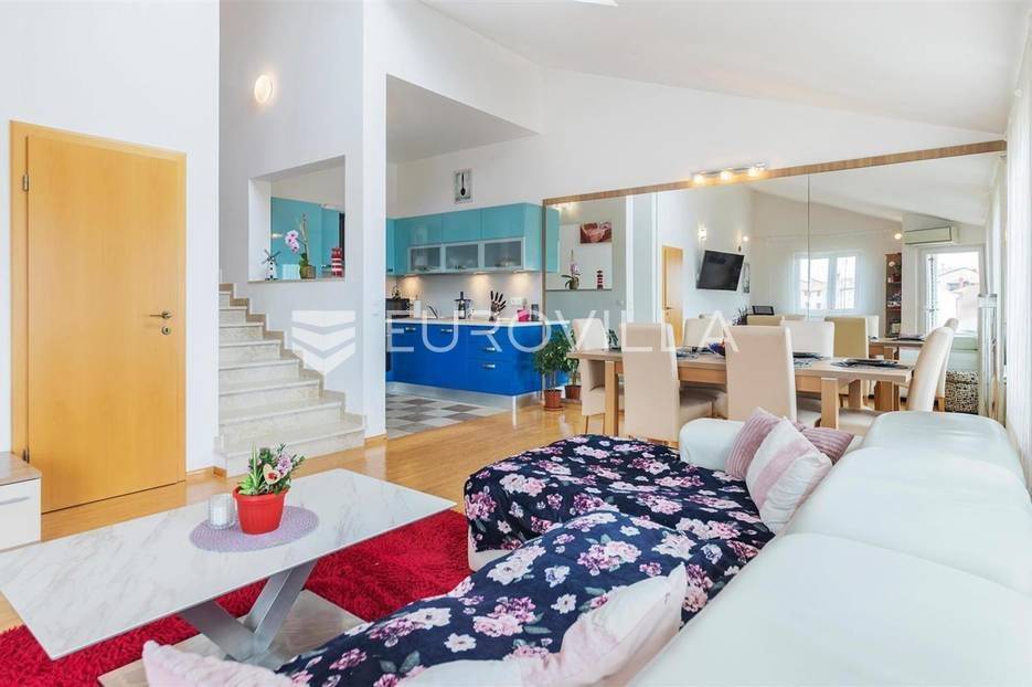 Prodaje se prekrasan dvoetažni stan, ukupne površine 90 m2 s privatnim parkingom.Stan se nalazi na 2. katu manje stambene zgrade te se sastoji od ulaznog hodnika, "open space"prostora u kojem se nalaze kuhinja s blagovaonicom i dnevni boravak te terasa, dok se na gornjoj etaži nalaze dvije spavaće sobe i kupaonica. Stanu pripada i drvarnica u podrumu zgrade te jedno parking mjesto.Stan je klimatiziran, postavljeno je centralno grijanje, alarmni sustav, protuprovalna vrata te podovi od bambusa.Za više informacija slobodno nas kontaktirajte.... Više na eurovilla.hr, ID: 295681