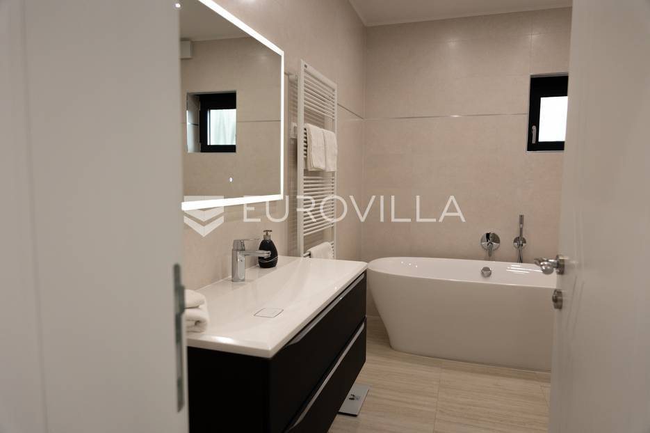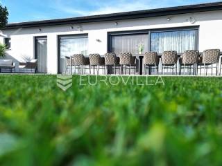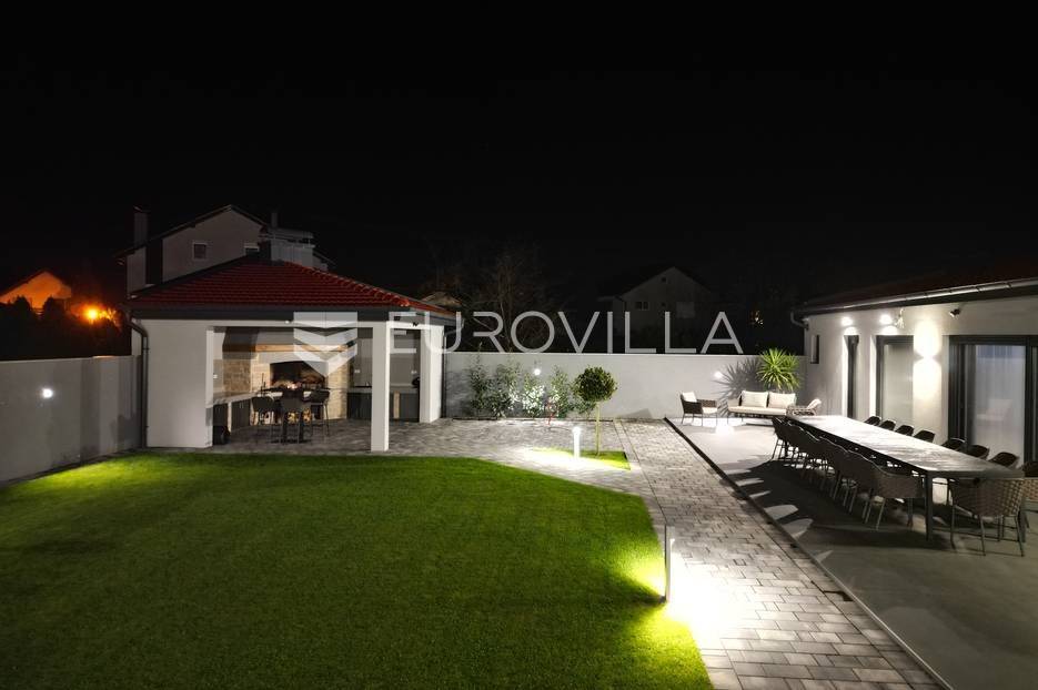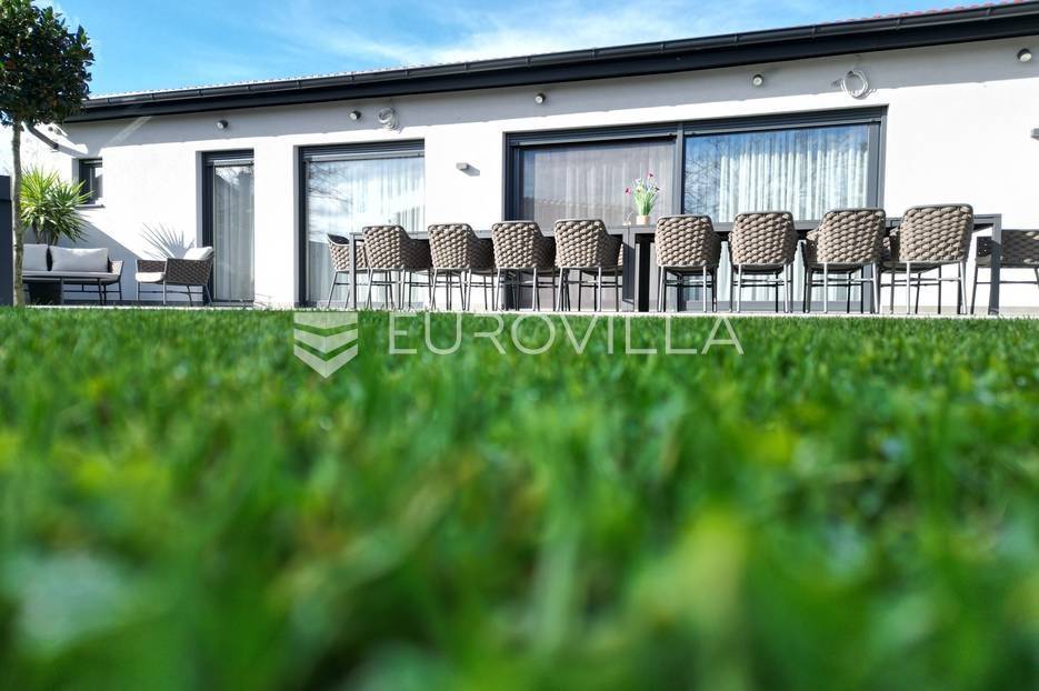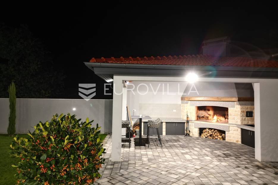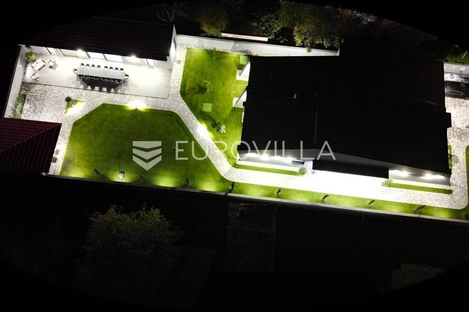 Baranja, U srcu Baranje, kontinentalnoj regiji koja bilježi veliki turistički rast, nalazi se ova nova, energetski potpuno neovisna kuća, izgrađena od najmodernijih vrhunskih materijala. Idealna, kako za kvalitetan i miran obiteljski život, tako i za odličnu turističku investiciju.Kuća veličine 257 m2 nalazi se na zemljištu veličine 1048 m2, a osim glavnog objekta na zemljištu se nalazi i objekt za wellness, druženje i rekreaciju.Glavni objekt proteže se kroz prizemlje i potkrovlje. Prizemlje se sastoji od ulaznog prostora, prostranog dnevnog boravka, kuhinje, dva toaleta za goste, pred prostora spavaonica, tri spavaće sobe, dvije odvojene kupaonice, master spavaće sobe s kupaonicom (ukupno pet kupaonica), te garaže za dva automobila. Potkrovni prostor veličine je 220 m2, pogodan za razne namjene.Wellness prostor, u cijelosti u prizemlju (78m2) sastoji se od: ulaza, toaleta, otvorenog dnevnog boravka i kuhinje, sobe za opuštanje i masažu, kupaonice i finske saune, te kotlovnice. Ispred objekta se nalazi terasa od 80 m2 sa stolom za 20 osoba (po potrebi moguće proširiti za proslave do 50 osoba).Preko puta wellness objekta u dvorištu se nalazi poluotvoreni moderni roštilj sa svom opremom za uživanje u brojnim načinima pripreme hrane.Dvorište je potpuno ograđeno uređenim zidom. Prednji dio ograde izgrađen je od aluminija (zatvorenog pogleda unutar dvorišta) s automatskim daljinskim vratima pješačkog i kolnog prilaza. Objekti i dvorišna ograda posjeduju ambijentalnu rasvjetu. Dvorišne staze i kolni prilaz u potpunosti su popločeni. Automatsko navodnjavanje vrta. Ostalo - izvedena je kompletna priprema za vanjski grijani bazen i jacuzzi, te priprema za automatsku alu pergolu terase objekta za wellness i rekreaciju. Potkrovlje je pripremljeno za prostorije za opuštanje ili u stambeni prostor te je u planu nadgoradnja objekta s pergolom i welness sadržajima sa bazenom.Solarna elektrana od 25 kw omogućuje potpunu energetsku neovisnost. U oba objekta ugrađeno je podno grijanje; mogućnost pogona plinskim, ili električno putem dizalice topline (Wiesmann sustav). Svaka prostorija ima neovisno podešavanje temperature grijanja i hlađenja.Jedinstvena je i lokacija - unutar 30 minuta vožnje možete uživati u baranjskim vinskim cestama, posjetiti regionalni centar Osijek ili obići Mađarsku i Vojvodinu.Objekt je nevidljiv izvana, prekrasan iznutra. Zamišljen za opuštanje, odmor i uživanje iz kojeg ne želite otići. Prostor je pogodan i za luksuzni najam. Namještaj i oprema je predmet dogovora.Za sve informacije stojimo na raspolaganju.... Više na eurovilla.hr, ID: 338188