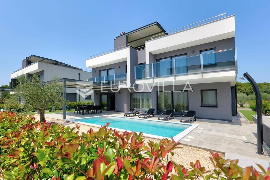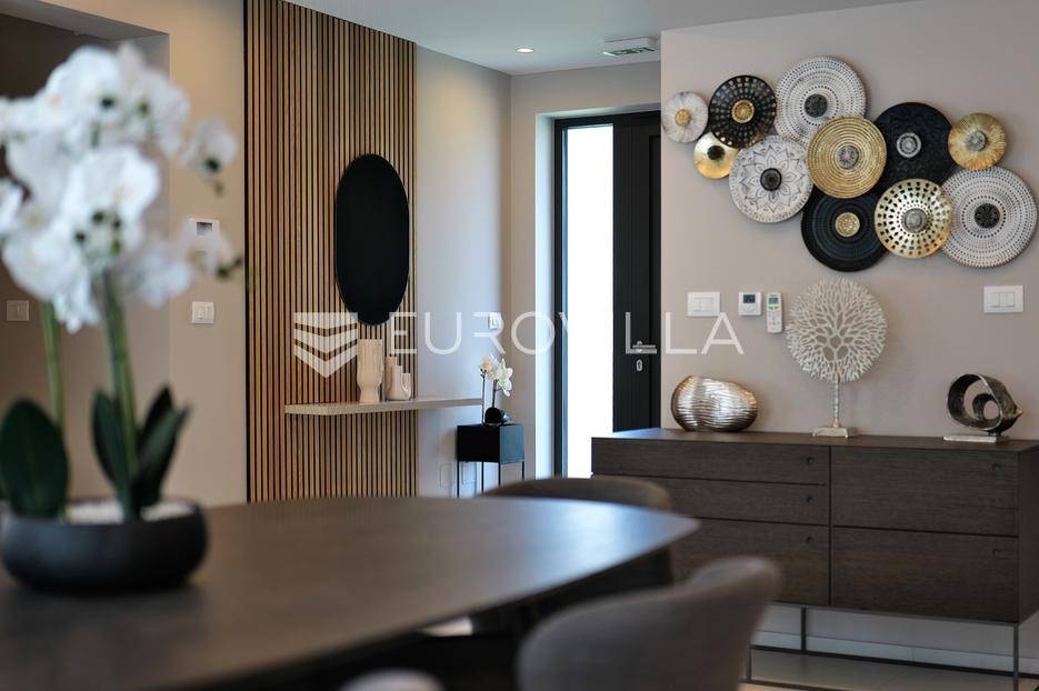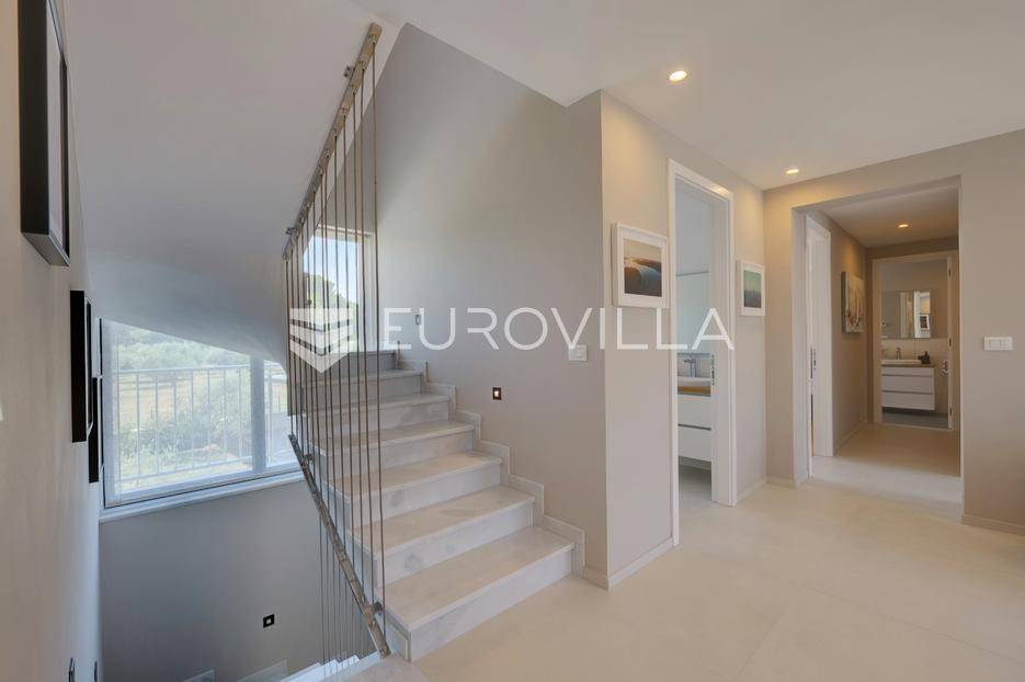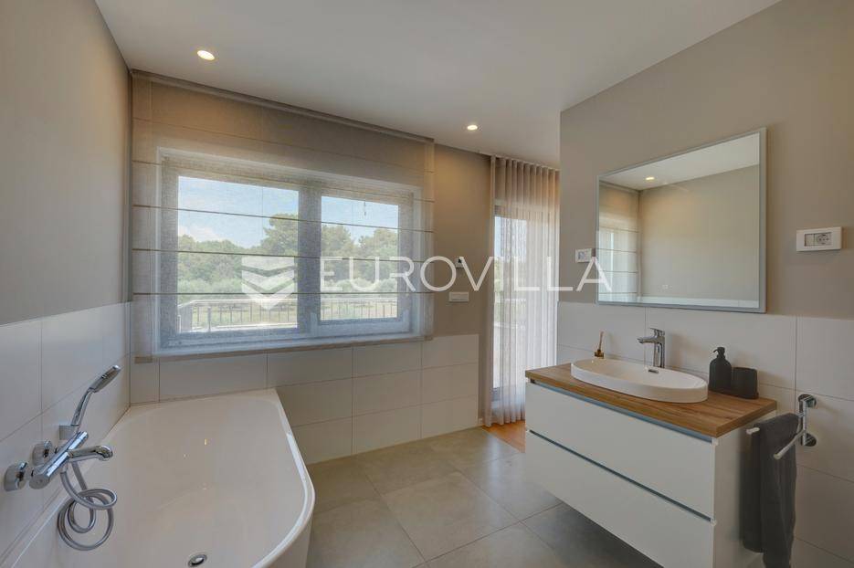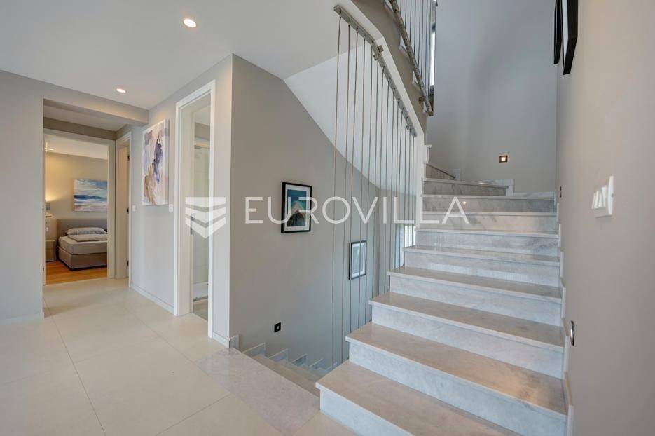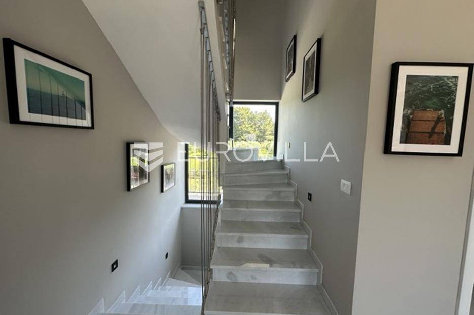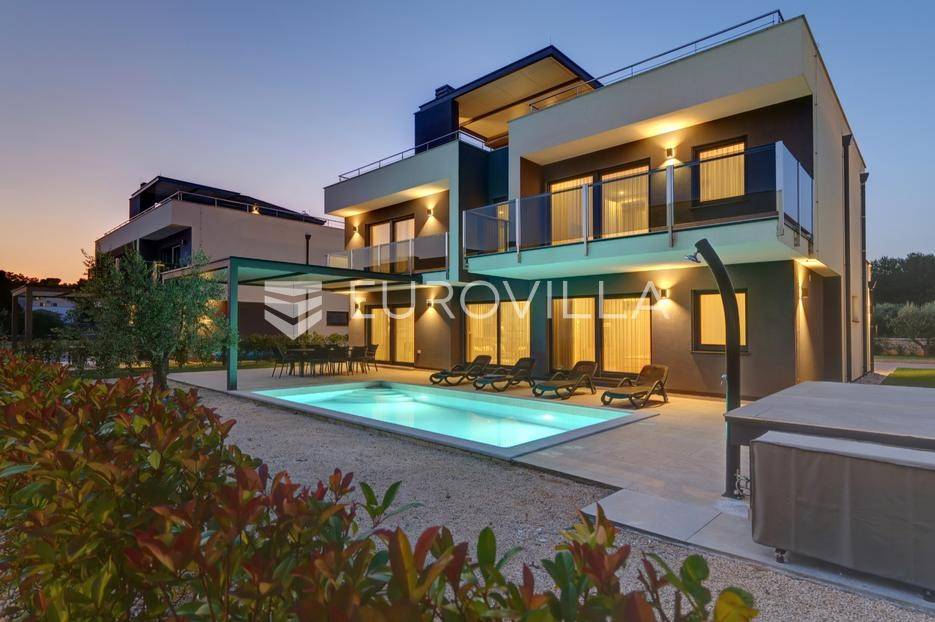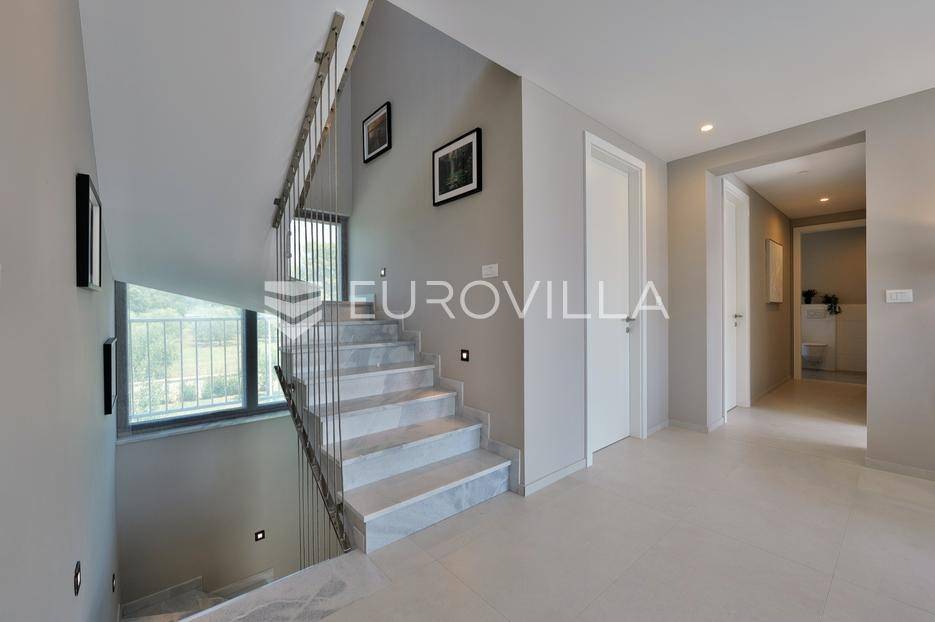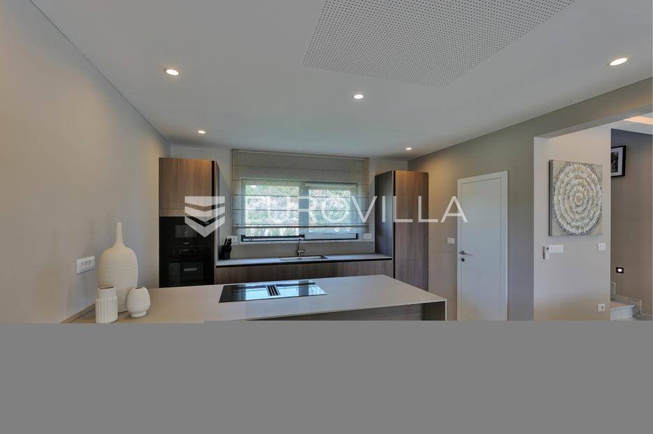 Smještena u pitoresknom i mirnom dijelu Pomera, u srcu Općine Medulin, ova izvanredna samostojeća vila predstavlja oličenje suvremenog luksuza i udobnosti. Izgrađena 2024. godine kao novogradnja, vila se prostire na impresivnih 286 m2 neto korisne površine, unutar prostrane i brižno uređene okućnice od 500 m2. Njezina lokacija je idealna: samo 400 metara udaljenosti od kristalno čistog mora i predivnih plaža, s orijentacijom jug-zapad koja osigurava obilje sunca i fantastičan pogled na more i obližnju marinu. Ova nekretnina nudi savršen spoj privatnosti, elegancije i praktičnosti, idealna za obiteljski život, opuštajući odmor ili kao izvrsna investicija u turističkom najmu.Po ulasku u posjed, dočekuje vas prostrana garaža namijenjena za dva vozila, iz koje je omogućen direktan pristup u unutrašnjost vile, pružajući dodatnu razinu komfora i sigurnosti. Prizemna etaža dominira otvorenim konceptom prostranog dnevnog boravka, raskošne kuhinje i elegantne blagovaonice, stvarajući fluidan i prozračan prostor idealan za obiteljska okupljanja i zabavu. Kuhinja je opremljena najmodernijim aparatima i vrhunskim materijalima, dok toplinu dnevnom boravku daje elegantni kamin. Velike staklene klizne stijene s troslojnim staklom ne samo da osiguravaju iznimnu prirodnu svjetlost, već i nude nesmetan izlaz na natkrivenu terasu i impresivan bazen, stvarajući savršenu simbiozu unutarnjeg i vanjskog prostora. Ova vanjska zona je idealno mjesto za opuštanje, blagovanje na otvorenom i uživanje u mediteranskom suncu. U prizemlju se nalazi i jedna prostrana spavaća soba s vlastitom kupaonicom, pružajući privatnost i udobnost gostima ili starijim članovima obitelji.Unutarnje stubište, elegantnog dizajna, vodi na prvu etažu gdje se u centralnom dijelu nalazi dodatan dnevni prostor, savršen kao kutak za opuštanje, čitanje ili druženje. Na ovoj etaži smještene su još tri luksuzno opremljene spavaće sobe, svaka s vlastitom modernom kupaonicom, osiguravajući maksimalnu privatnost i komfor za svakog ukućana. Svaka je soba pažljivo dizajnirana s naglaskom na udobnost i funkcionalnost, s ugradbenim ormarima i pogledima koji obogaćuju prostor. Prevladavaju neutralne boje koje prostor čine elegantnijim i suvremenijim, ostavljajući dojam sofisticiranosti i smirenosti.Posebnost ove vile je njezina prostrana krovna terasa, dostupna također unutarnjim stubištem. Djelomično natkrivena, ova terasa nudi spektakularan panoramski pogled na more, živopisnu marinu i okolni slikoviti krajolik. Predviđena je kao ultimativna zona za zabavu i opuštanje, s prostorom za sunčanje, pripremu roštilja i lounge zonu, čineći je idealnim mjestom za večernja druženja pod zvijezdama i uživanje u nezaboravnim zalascima sunca. Zamislite samo ljetne večeri provedene ovdje, uz povjetarac s mora i miris borova, stvarajući uspomene za cijeli život.Vila je opremljena najsuvremenijom tehnologijom, uključujući napredan "Smart Home" sustav koji omogućava jednostavno upravljanje rasvjetom, sustavom grijanja i hlađenja, te sigurnosnim značajkama putem pametnog telefona. Grijanje je osigurano putem energetski učinkovitog sustava toplinske pumpe, s podnim grijanjem i fan-coil uređajima koji osiguravaju optimalnu temperaturu tijekom cijele godine, dok je svaka prostorija individualno klimatizirana. Kvaliteta izrade i odabir materijala su na najvišoj razini, od visokokvalitetne keramike i sanitarija do pažljivo odabranih podova, što doprinosi trajnosti i estetskoj privlačnosti nekretnine. Okućnica je pažljivo hortikulturno uređena, s automatskim sustavom navodnjavanja, stvarajući zelenu oazu mira i ljepote.Lokacija u Pomeru nudi savršenu ravnotežu između mirnog života i blizine svih potrebnih sadržaja. Medulin sa svojim raznolikim restoranima, trgovinama i marinom udaljen je tek nekoliko minuta vožnje, dok se do grada Pule s bogatom kulturnom baštinom, zračnom lukom i svim urbanim sadržajima stiže za petnaestak minuta. Blizina mora omogućuje jednostavan pristup prekrasnim plažama idealnim za plivanje, sunčanje i razne vodene sportove. Ovo je rijetka prilika za posjedovanje nekretnine koja nudi beskompromisan luksuz, udobnost i iznimnu lokaciju, savršenu za one koji traže premium životni stil na istarskoj obali. Ne propustite priliku postati vlasnikom ove izuzetne vile koja spaja eleganciju, funkcionalnost i pogled na more. Za sve dodatne informacije i organizaciju razgledavanja, stojimo Vam na raspolaganju.... Više na eurovilla.hr, ID: 371689