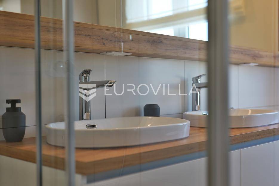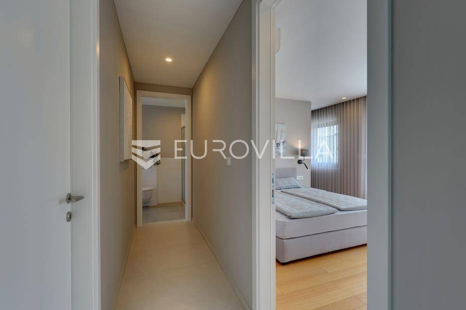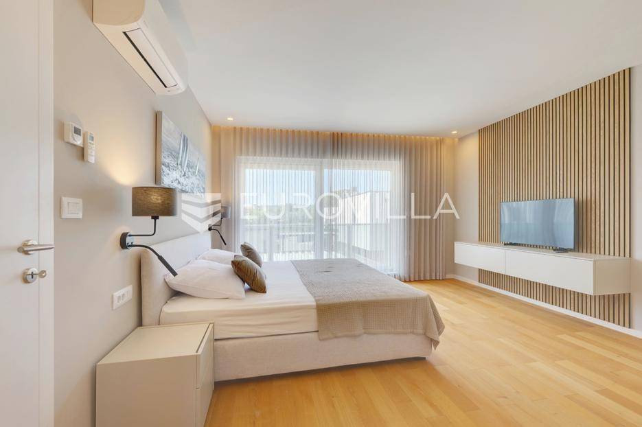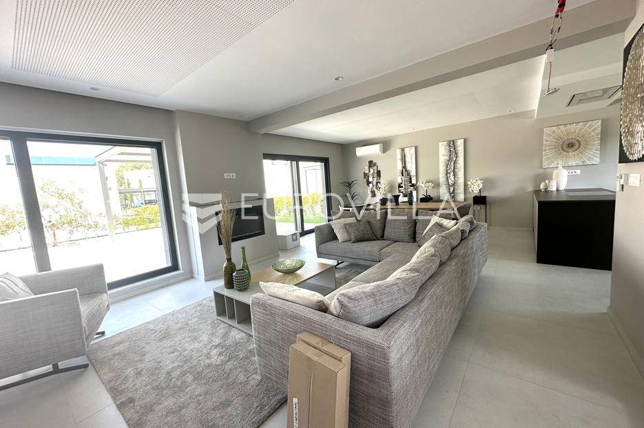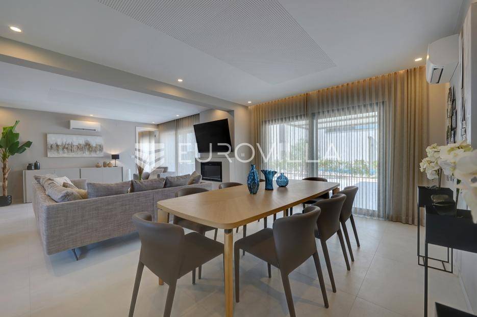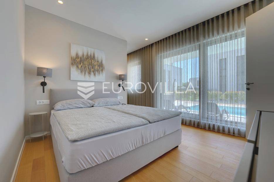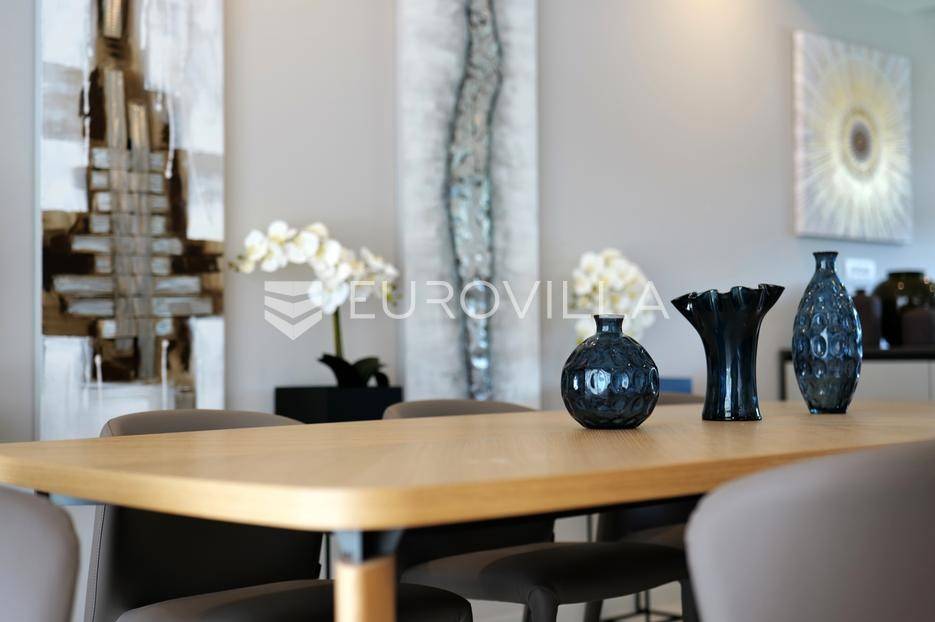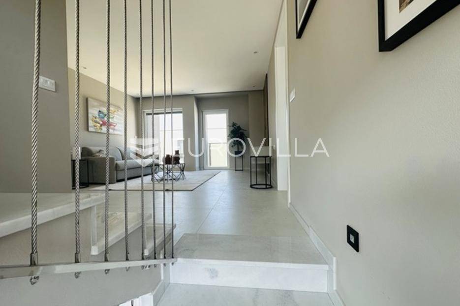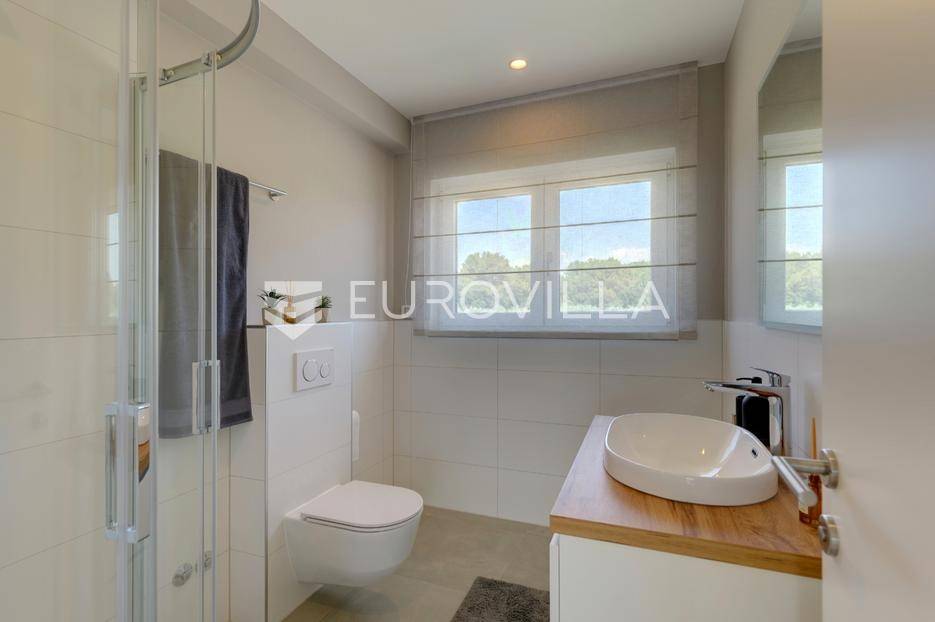 Smještena u pitoresknom i mirnom dijelu Pomera, u srcu Općine Medulin, ova izvanredna samostojeća vila predstavlja oličenje suvremenog luksuza i udobnosti. Izgrađena 2024. godine kao novogradnja, vila se prostire na impresivnih 286 m2 neto korisne površine, unutar prostrane i brižno uređene okućnice od 500 m2. Njezina lokacija je idealna: samo 400 metara udaljenosti od kristalno čistog mora i predivnih plaža, s orijentacijom jug-zapad koja osigurava obilje sunca i fantastičan pogled na more i obližnju marinu. Ova nekretnina nudi savršen spoj privatnosti, elegancije i praktičnosti, idealna za obiteljski život, opuštajući odmor ili kao izvrsna investicija u turističkom najmu.Po ulasku u posjed, dočekuje vas prostrana garaža namijenjena za dva vozila, iz koje je omogućen direktan pristup u unutrašnjost vile, pružajući dodatnu razinu komfora i sigurnosti. Prizemna etaža dominira otvorenim konceptom prostranog dnevnog boravka, raskošne kuhinje i elegantne blagovaonice, stvarajući fluidan i prozračan prostor idealan za obiteljska okupljanja i zabavu. Kuhinja je opremljena najmodernijim aparatima i vrhunskim materijalima, dok toplinu dnevnom boravku daje elegantni kamin. Velike staklene klizne stijene s troslojnim staklom ne samo da osiguravaju iznimnu prirodnu svjetlost, već i nude nesmetan izlaz na natkrivenu terasu i impresivan bazen, stvarajući savršenu simbiozu unutarnjeg i vanjskog prostora. Ova vanjska zona je idealno mjesto za opuštanje, blagovanje na otvorenom i uživanje u mediteranskom suncu. U prizemlju se nalazi i jedna prostrana spavaća soba s vlastitom kupaonicom, pružajući privatnost i udobnost gostima ili starijim članovima obitelji.Unutarnje stubište, elegantnog dizajna, vodi na prvu etažu gdje se u centralnom dijelu nalazi dodatan dnevni prostor, savršen kao kutak za opuštanje, čitanje ili druženje. Na ovoj etaži smještene su još tri luksuzno opremljene spavaće sobe, svaka s vlastitom modernom kupaonicom, osiguravajući maksimalnu privatnost i komfor za svakog ukućana. Svaka je soba pažljivo dizajnirana s naglaskom na udobnost i funkcionalnost, s ugradbenim ormarima i pogledima koji obogaćuju prostor. Prevladavaju neutralne boje koje prostor čine elegantnijim i suvremenijim, ostavljajući dojam sofisticiranosti i smirenosti.Posebnost ove vile je njezina prostrana krovna terasa, dostupna također unutarnjim stubištem. Djelomično natkrivena, ova terasa nudi spektakularan panoramski pogled na more, živopisnu marinu i okolni slikoviti krajolik. Predviđena je kao ultimativna zona za zabavu i opuštanje, s prostorom za sunčanje, pripremu roštilja i lounge zonu, čineći je idealnim mjestom za večernja druženja pod zvijezdama i uživanje u nezaboravnim zalascima sunca. Zamislite samo ljetne večeri provedene ovdje, uz povjetarac s mora i miris borova, stvarajući uspomene za cijeli život.Vila je opremljena najsuvremenijom tehnologijom, uključujući napredan "Smart Home" sustav koji omogućava jednostavno upravljanje rasvjetom, sustavom grijanja i hlađenja, te sigurnosnim značajkama putem pametnog telefona. Grijanje je osigurano putem energetski učinkovitog sustava toplinske pumpe, s podnim grijanjem i fan-coil uređajima koji osiguravaju optimalnu temperaturu tijekom cijele godine, dok je svaka prostorija individualno klimatizirana. Kvaliteta izrade i odabir materijala su na najvišoj razini, od visokokvalitetne keramike i sanitarija do pažljivo odabranih podova, što doprinosi trajnosti i estetskoj privlačnosti nekretnine. Okućnica je pažljivo hortikulturno uređena, s automatskim sustavom navodnjavanja, stvarajući zelenu oazu mira i ljepote.Lokacija u Pomeru nudi savršenu ravnotežu između mirnog života i blizine svih potrebnih sadržaja. Medulin sa svojim raznolikim restoranima, trgovinama i marinom udaljen je tek nekoliko minuta vožnje, dok se do grada Pule s bogatom kulturnom baštinom, zračnom lukom i svim urbanim sadržajima stiže za petnaestak minuta. Blizina mora omogućuje jednostavan pristup prekrasnim plažama idealnim za plivanje, sunčanje i razne vodene sportove. Ovo je rijetka prilika za posjedovanje nekretnine koja nudi beskompromisan luksuz, udobnost i iznimnu lokaciju, savršenu za one koji traže premium životni stil na istarskoj obali. Ne propustite priliku postati vlasnikom ove izuzetne vile koja spaja eleganciju, funkcionalnost i pogled na more. Za sve dodatne informacije i organizaciju razgledavanja, stojimo Vam na raspolaganju.... Više na eurovilla.hr, ID: 371689