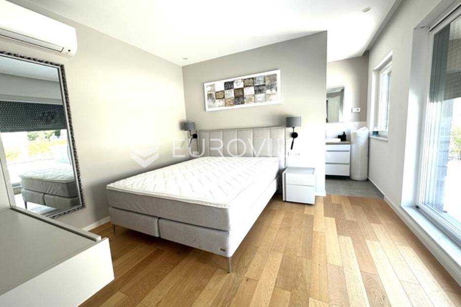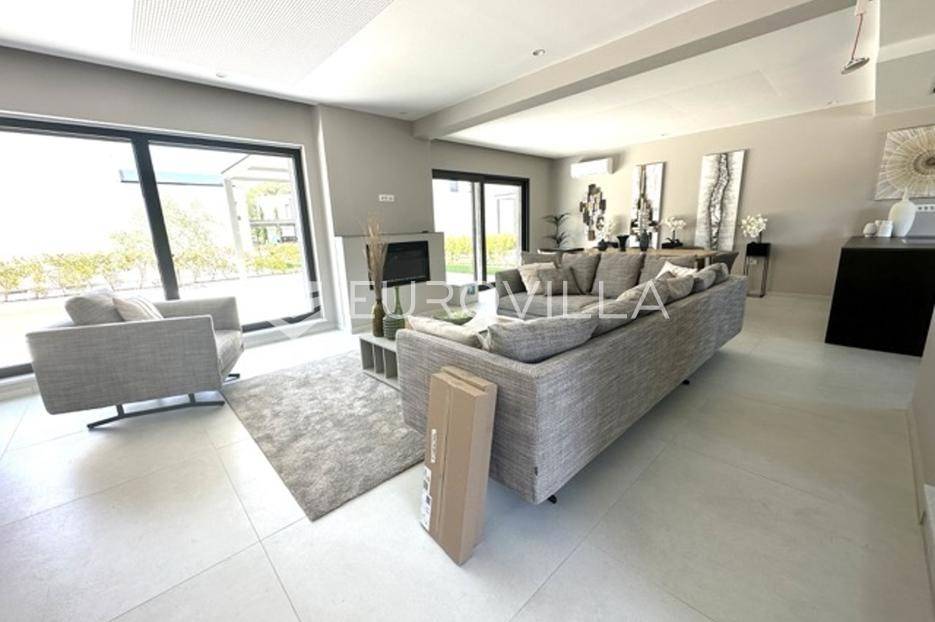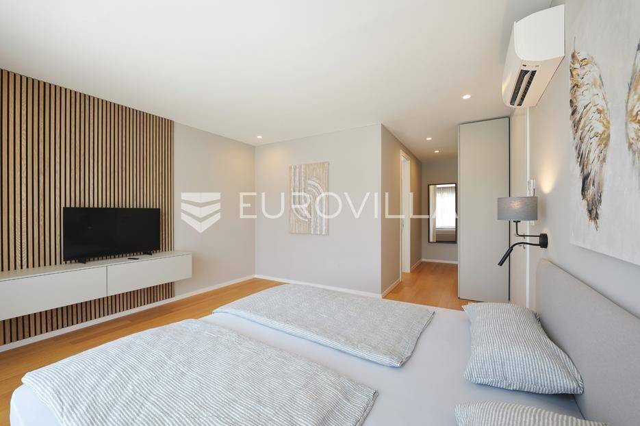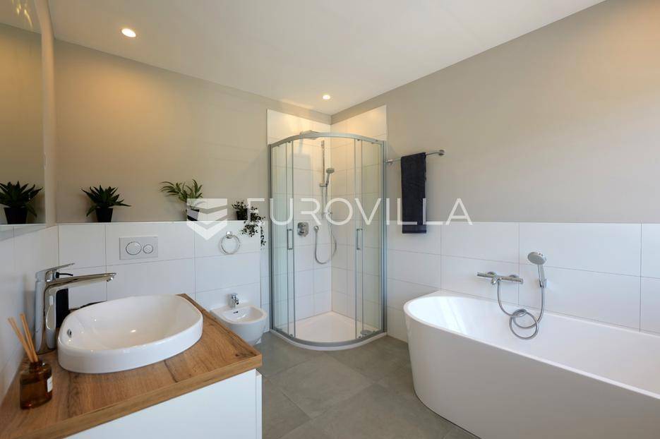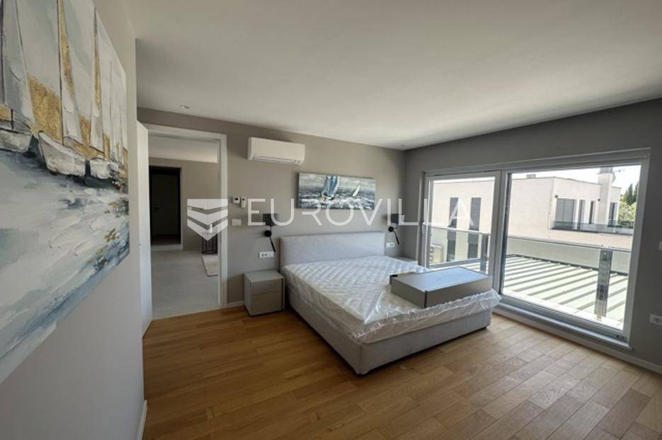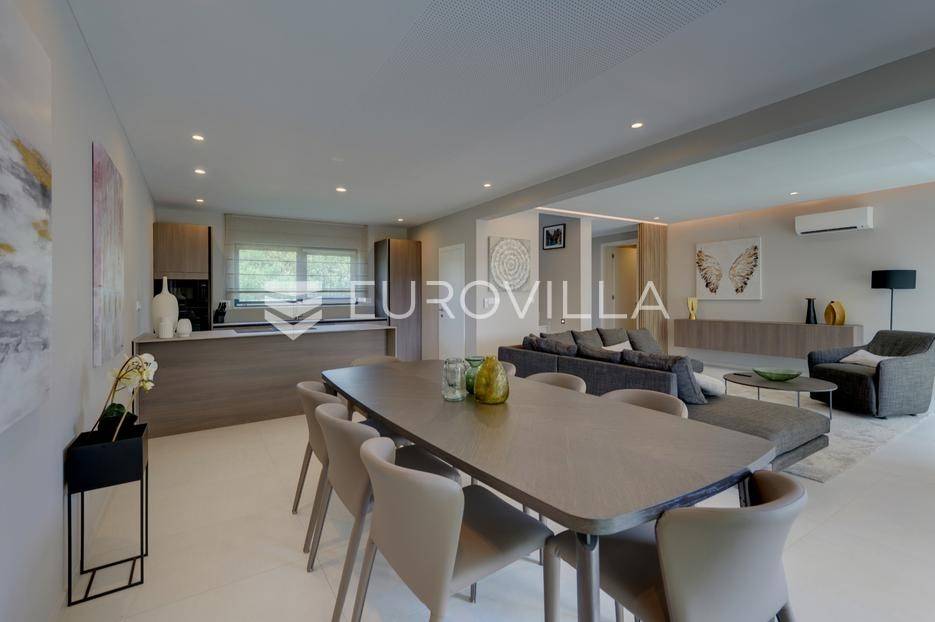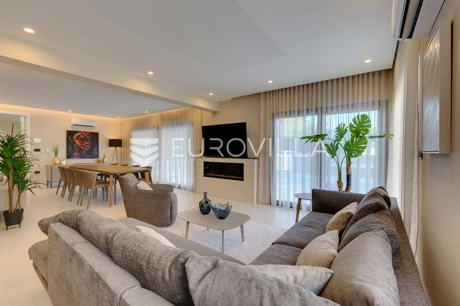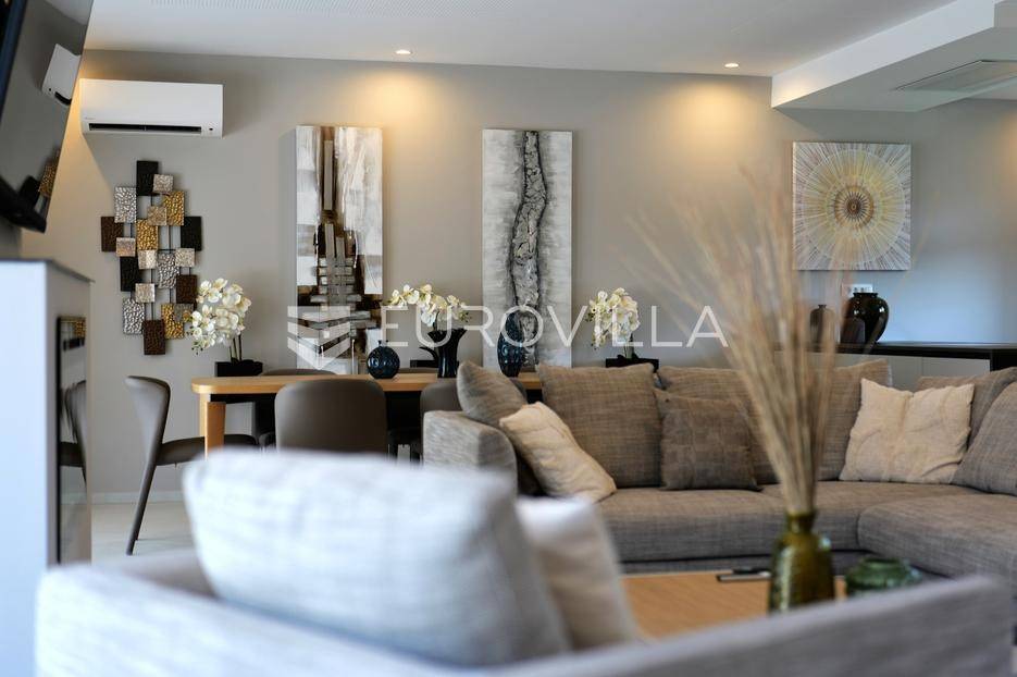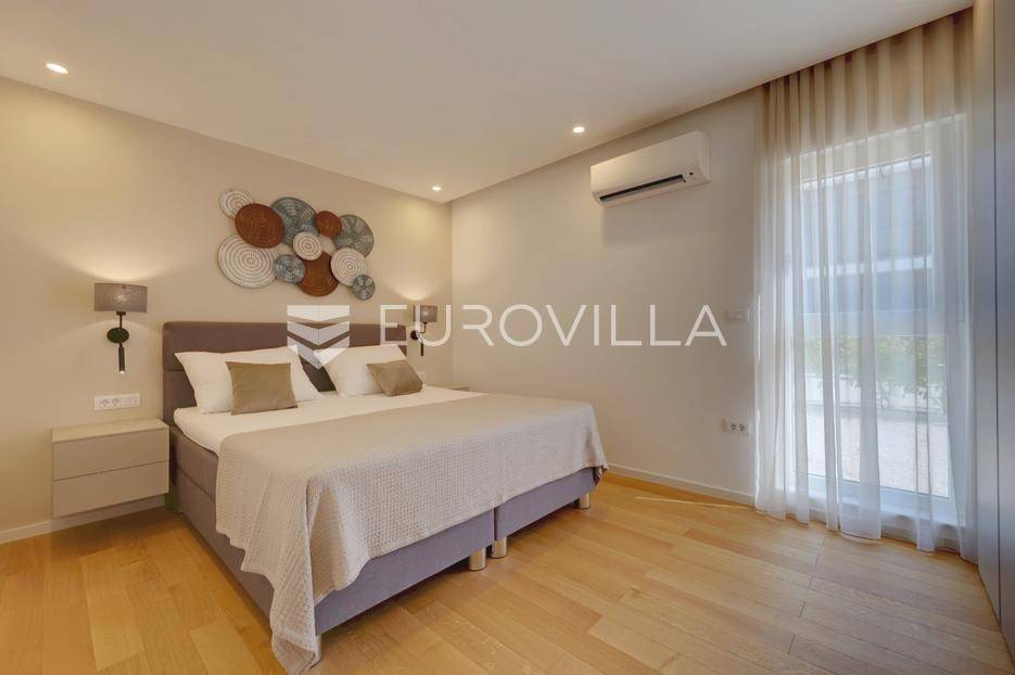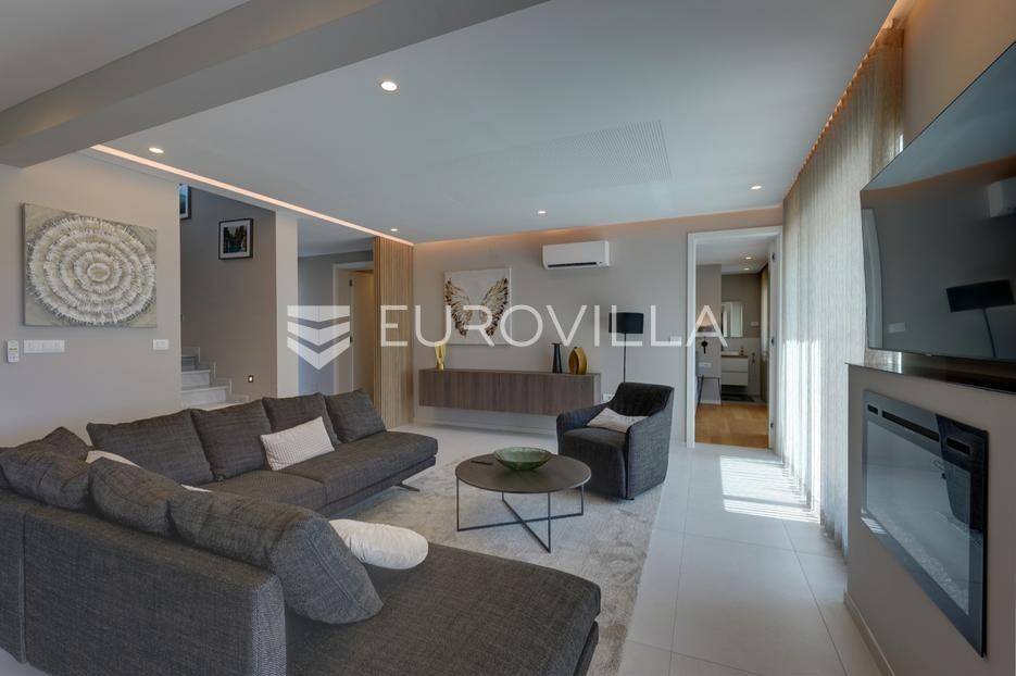 Smještena u pitoresknom i mirnom dijelu Pomera, u srcu Općine Medulin, ova izvanredna samostojeća vila predstavlja oličenje suvremenog luksuza i udobnosti. Izgrađena 2024. godine kao novogradnja, vila se prostire na impresivnih 286 m2 neto korisne površine, unutar prostrane i brižno uređene okućnice od 500 m2. Njezina lokacija je idealna: samo 400 metara udaljenosti od kristalno čistog mora i predivnih plaža, s orijentacijom jug-zapad koja osigurava obilje sunca i fantastičan pogled na more i obližnju marinu. Ova nekretnina nudi savršen spoj privatnosti, elegancije i praktičnosti, idealna za obiteljski život, opuštajući odmor ili kao izvrsna investicija u turističkom najmu.Po ulasku u posjed, dočekuje vas prostrana garaža namijenjena za dva vozila, iz koje je omogućen direktan pristup u unutrašnjost vile, pružajući dodatnu razinu komfora i sigurnosti. Prizemna etaža dominira otvorenim konceptom prostranog dnevnog boravka, raskošne kuhinje i elegantne blagovaonice, stvarajući fluidan i prozračan prostor idealan za obiteljska okupljanja i zabavu. Kuhinja je opremljena najmodernijim aparatima i vrhunskim materijalima, dok toplinu dnevnom boravku daje elegantni kamin. Velike staklene klizne stijene s troslojnim staklom ne samo da osiguravaju iznimnu prirodnu svjetlost, već i nude nesmetan izlaz na natkrivenu terasu i impresivan bazen, stvarajući savršenu simbiozu unutarnjeg i vanjskog prostora. Ova vanjska zona je idealno mjesto za opuštanje, blagovanje na otvorenom i uživanje u mediteranskom suncu. U prizemlju se nalazi i jedna prostrana spavaća soba s vlastitom kupaonicom, pružajući privatnost i udobnost gostima ili starijim članovima obitelji.Unutarnje stubište, elegantnog dizajna, vodi na prvu etažu gdje se u centralnom dijelu nalazi dodatan dnevni prostor, savršen kao kutak za opuštanje, čitanje ili druženje. Na ovoj etaži smještene su još tri luksuzno opremljene spavaće sobe, svaka s vlastitom modernom kupaonicom, osiguravajući maksimalnu privatnost i komfor za svakog ukućana. Svaka je soba pažljivo dizajnirana s naglaskom na udobnost i funkcionalnost, s ugradbenim ormarima i pogledima koji obogaćuju prostor. Prevladavaju neutralne boje koje prostor čine elegantnijim i suvremenijim, ostavljajući dojam sofisticiranosti i smirenosti.Posebnost ove vile je njezina prostrana krovna terasa, dostupna također unutarnjim stubištem. Djelomično natkrivena, ova terasa nudi spektakularan panoramski pogled na more, živopisnu marinu i okolni slikoviti krajolik. Predviđena je kao ultimativna zona za zabavu i opuštanje, s prostorom za sunčanje, pripremu roštilja i lounge zonu, čineći je idealnim mjestom za večernja druženja pod zvijezdama i uživanje u nezaboravnim zalascima sunca. Zamislite samo ljetne večeri provedene ovdje, uz povjetarac s mora i miris borova, stvarajući uspomene za cijeli život.Vila je opremljena najsuvremenijom tehnologijom, uključujući napredan "Smart Home" sustav koji omogućava jednostavno upravljanje rasvjetom, sustavom grijanja i hlađenja, te sigurnosnim značajkama putem pametnog telefona. Grijanje je osigurano putem energetski učinkovitog sustava toplinske pumpe, s podnim grijanjem i fan-coil uređajima koji osiguravaju optimalnu temperaturu tijekom cijele godine, dok je svaka prostorija individualno klimatizirana. Kvaliteta izrade i odabir materijala su na najvišoj razini, od visokokvalitetne keramike i sanitarija do pažljivo odabranih podova, što doprinosi trajnosti i estetskoj privlačnosti nekretnine. Okućnica je pažljivo hortikulturno uređena, s automatskim sustavom navodnjavanja, stvarajući zelenu oazu mira i ljepote.Lokacija u Pomeru nudi savršenu ravnotežu između mirnog života i blizine svih potrebnih sadržaja. Medulin sa svojim raznolikim restoranima, trgovinama i marinom udaljen je tek nekoliko minuta vožnje, dok se do grada Pule s bogatom kulturnom baštinom, zračnom lukom i svim urbanim sadržajima stiže za petnaestak minuta. Blizina mora omogućuje jednostavan pristup prekrasnim plažama idealnim za plivanje, sunčanje i razne vodene sportove. Ovo je rijetka prilika za posjedovanje nekretnine koja nudi beskompromisan luksuz, udobnost i iznimnu lokaciju, savršenu za one koji traže premium životni stil na istarskoj obali. Ne propustite priliku postati vlasnikom ove izuzetne vile koja spaja eleganciju, funkcionalnost i pogled na more. Za sve dodatne informacije i organizaciju razgledavanja, stojimo Vam na raspolaganju.... Više na eurovilla.hr, ID: 371689