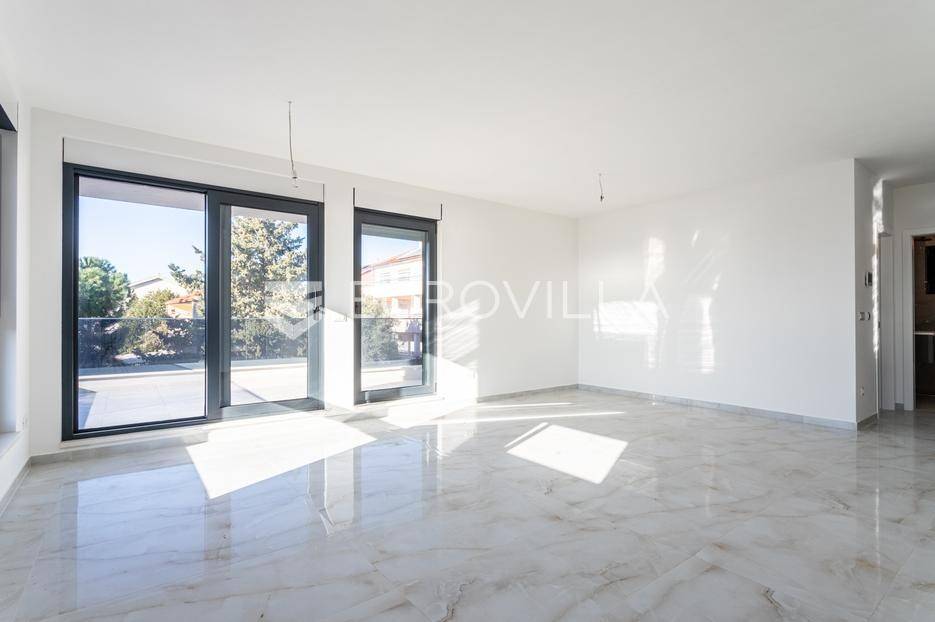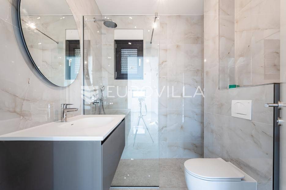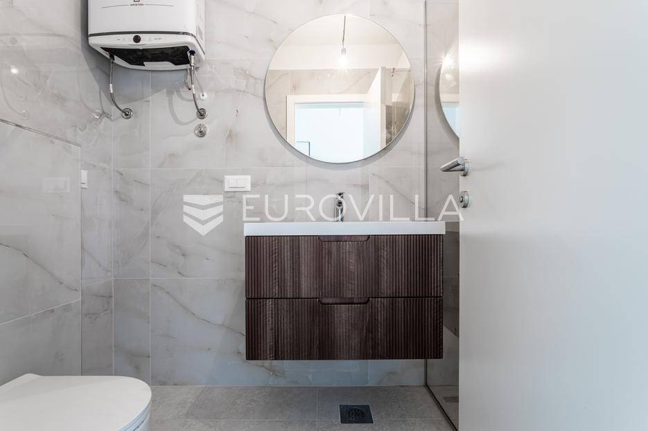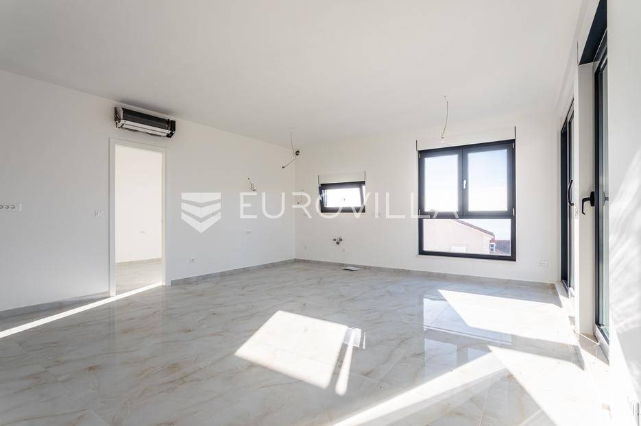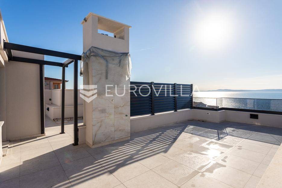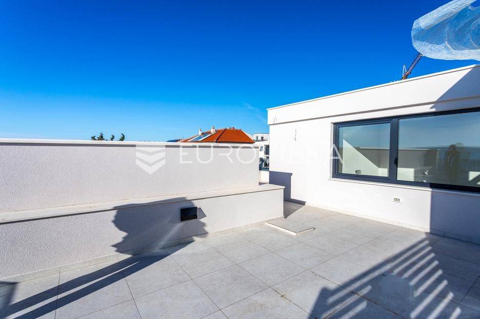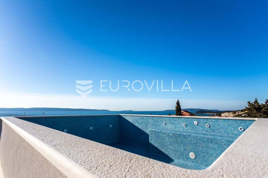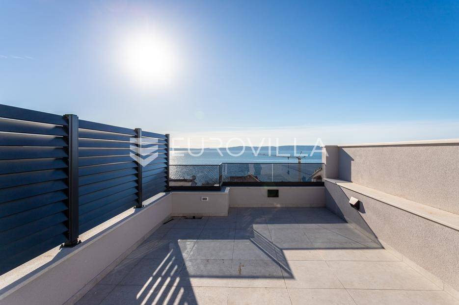 Čiovo, Okrug Gornji, dvosobni penthouse smješten na drugom katu visokokvalitetne moderne zgrade s ukupno šest stambenih jedinica.Stan se sastoji od ulaznog hodnika, dvije kupaonice, dvije spavaće sobe, kuhinje s blagovaonicom te prostranog dnevnog boravka s izlazom na natkrivenu terasu površine 25 m². Površina zatvorenog stambenog dijela iznosi 73,94 m².Posebna vrijednost ove nekretnine je impresivna krovna terasa površine 40,35 m², na kojoj se nalazi privatni bazen površine 25 m², idealan za uživanje i opuštanje uz pogled na more.Objekt raspolaže s ukupno četiri bazena, podzemnom garažom i liftom. Svi stanovi su južno orijentirani, s otvorenim pogledom prema moru i velikim staklenim stijenkama koje osiguravaju obilje prirodnog svjetla i ugodan boravak.Zgrada je izvrsno pozicionirana - smještena u mirnoj, slijepoj ulici, odlično prometno povezana, a udaljena manje od 150 metara od mora.Penthouse je liftom povezan s podzemnom garažom, a stanu pripada jedno parkirno mjesto.Objekt je završen i odmah useljiv.Za sve dodatne informacije i razgledavanje, stojim na raspolaganju.... Više na eurovilla.hr, ID: 420367