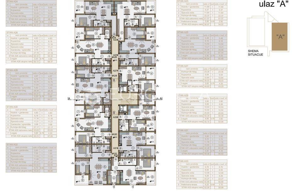 Moderan i pažljivo planiran stambeno poslovni projekt u Srdočima, osmišljen da zadovolji potrebe suvremenog života.Stan A 23 na trećem katu od 54,02 m2 sastoji se od hodnika, jedne spavaće sobe, kuhinje s blagavaonom, dnevnog boravka, kupaonice i loggie.Garaža i spremište se kupuju zasebno.U sklopu projekta gradi se višestambeni kompleks s ukupno 104 stana, garažama, spremištima i sedam poslovnih prostora. Objekt će imati tri podzemne etaže namijenjene parkiranju i spremištima, dok se iznad njih planiraju dvije zgrade s prizemljem i pet katova. U prizemlju će biti smješteni poslovni prostori, a između dvaju objekata formira se ugodan pješački trg koji će dodatno oplemeniti okolinu.Od prvog do petog kata predviđeni su stanovi raznih veličina, ukupno 104 jedinice, raspoređene u dvije zgrade.Lokacija u samom centru Srdoča posebno je cijenjena zbog svoje funkcionalnosti i razvijene infrastrukture. U neposrednoj blizini nalaze se škole, vrtići, sportski sadržaji, trgovine, ugostiteljski objekti, rekreacijski tereni, kao i odlična povezanost gradskim prijevozom. Zahvaljujući blizini Opatije, lokacija dobiva dodatnu atraktivnost i vrijednost.Ponuda stanova prilagođena je različitim potrebama i stilovima života — od praktičnih manjih stanova za pojedince i parove do prostranijih obiteljskih domova, a sastoje se od jednosobnih, dvosobnih i trosobnik stanova sa dnevnim boravkom različitih veličina.Visok standard gradnje i opreme osigurava dugotrajnu kvalitetu i udobnost. Stanovi su opremljeni električnim podnim grijanjem u dnevnim boravcima i kupaonicama, inverterskim klima uređajima, keramikom prvoklasne kvalitete, laminatom u spavaćim sobama, protukliznim pločicama na terasama i balkonima, sigurnosnim ulaznim vratima, višekomornom PVC stolarijom s troslojnim staklom, ALU roletama, kvalitetnom kupaonskom opremom renomiranih proizvođača te modernim walk-in tuševima i ugradbenim vodokotlićima.Za detaljnije informacije slobodno se javite.... Više na eurovilla.hr, ID: 422663
