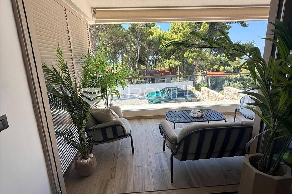 Hvar, Jelsa, moderno uređen i potpuno opremljen jednosoban stan južne orijentacije, položen u prizemlju novoizgrađenog stambenog objekta.Funkcionalan raspored, kao jedna od prednosti ove nekretnine se sastoji od hodnika/ predsoblja, kupaonice, jedne spavaće sobe, te dnevnog prostora ( kuhinje, dnevnog boravka ) s izlazom na natkrivenu terasu s koje se pruža pogled na zelenilo i more.Površina stambenog dijela iznosi 40, 45 m2, dok je površina terase 10, 53 m2.Stanu pripada jedno nenatkriveno parkirno mjesto uz objekt.Zgrada je građena po najvišim standardima struke, estetski uklopljena u okoliš, a prilikom izgradnje i uređenja su korišteni visokokvalitetni materijali.Ishodovana je uporabna dozvola.Odlična lokacija, južna strana predivnog Hvara, samo nekoliko minuta hoda do mora.Za sve dodatne informacije, stojimo vam na raspolaganju.... Više na eurovilla.hr, ID: 424799
