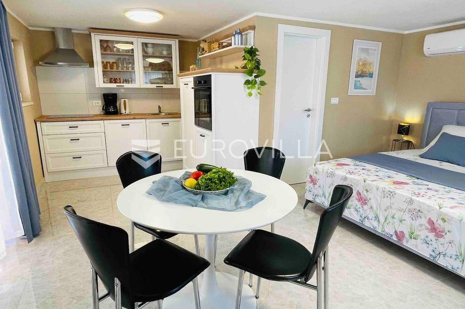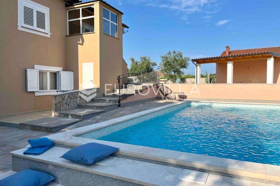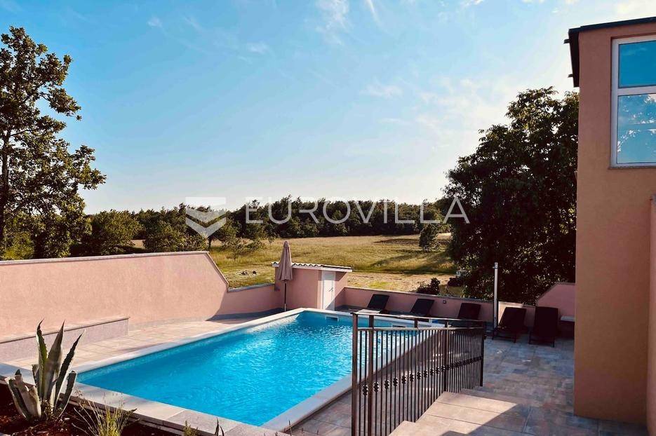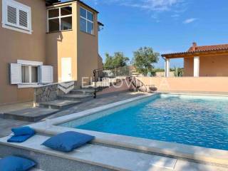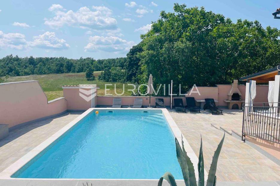 U malom mjestu nedaleko Barbana, smjestila se lijepa nova samostojeća kuća od 200 m2 na prostranom zemljištu od 850 m2. Ova izuzetna nekretnina nudi savršenu kombinaciju udobnosti i privatnosti idealna za one koji traže miran život.Kuća se sastoji od prizemlja i prvog kata; svaki kat je stan za sebe, pružajući fleksibilnost i mogućnost odvojenog stanovanja. Prizemlje je koncipirano kao otvoren prostor koji obuhvaća ulaz, kuhinju i dnevni boravak. Uz to, tu je i kupaonica te natkrivena terasa koja poziva na uživanje u svježem zraku i prekrasnom pogledu na zelenilo. Stambenog prostora u prizemlju je 30ak m2.Na samoj terasi smještena je relax zona s roštiljem, idealna za ljetne večeri i druženja s prijateljima. Bazen u produžetku terase pruža osvježenje u vrućim ljetnim danima, dok zelena površina oko bazena nudi prostor za opuštanje i igru. Prvi kat također nudi prostrani dnevni boravak s kuhinjom, kupaonicu i dvije udobne spavaće sobe, pružajući dovoljno prostora za cijelu obitelj ili goste. Stambenog prostora je 60ak m2.U dvorištu se nalazi parking za nekoliko automobila, uključujući i dva natkrivena parking mjesta, što osigurava praktičnost i sigurnost za Vaša vozila. Cijela kuća je klimatizirana, što omogućuje ugodan boravak tijekom cijele godine.Ova kuća je idealna za one koji žele pobjeći od gradske vreve i uživati u mirnom životu u prelijepoj prirodi. Barban i okolica nude brojne mogućnosti za rekreaciju, istraživanje i uživanje u bogatoj kulturnoj baštini Istre. Blizina Barbana osigurava jednostavan pristup svim potrebnim sadržajima, dok istovremeno zadržavate privatnost i mir.Za dodatne informacije kao i dogovor oko termina razgledavanja slobodno nam se obratite - stojimo Vam na raspolaganju kako bismo Vam omogućili da doživite ovu izvanrednu nekretninu uživo.... Više na eurovilla.hr, ID: 439499