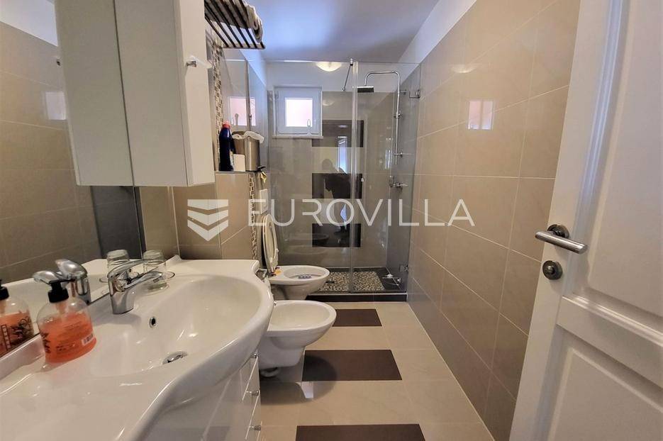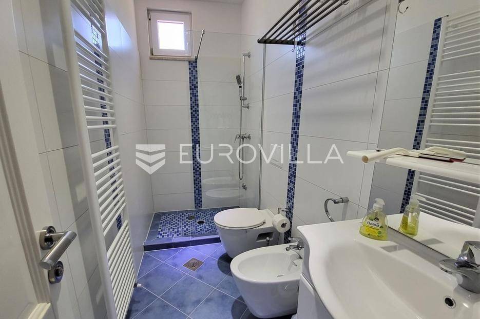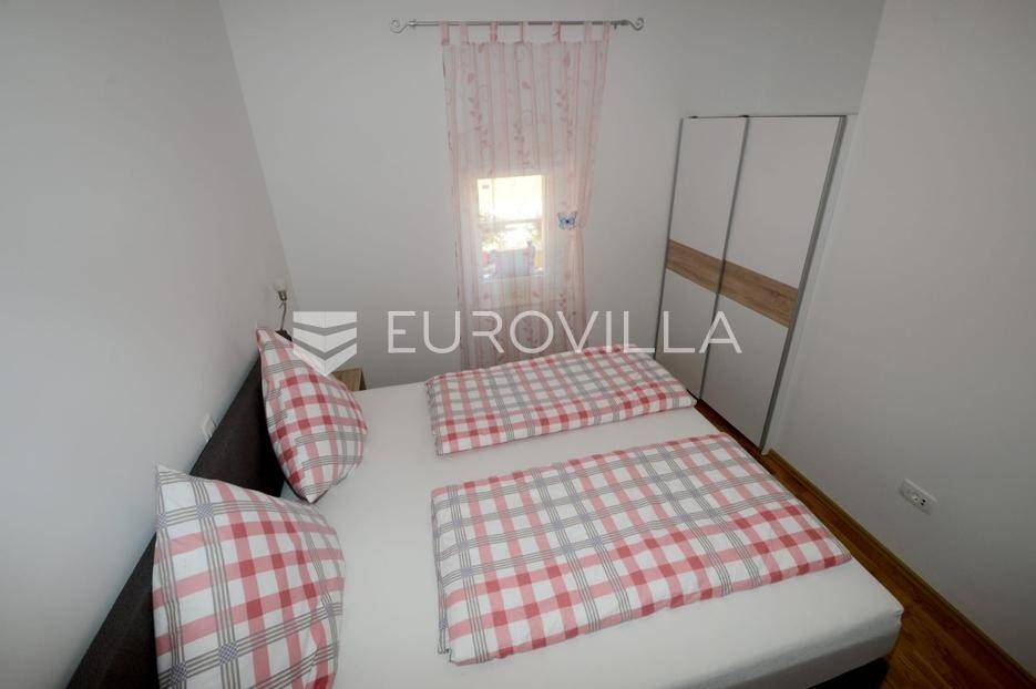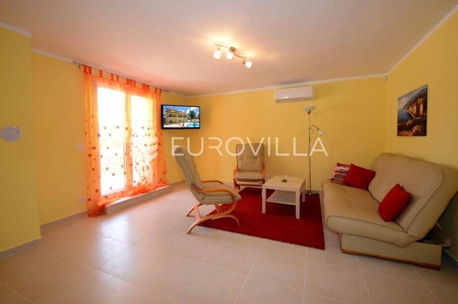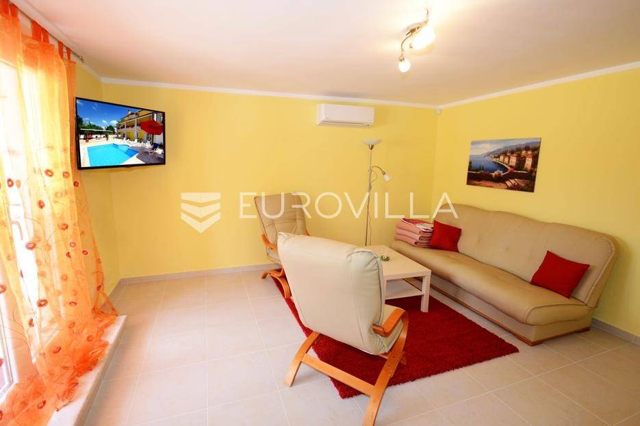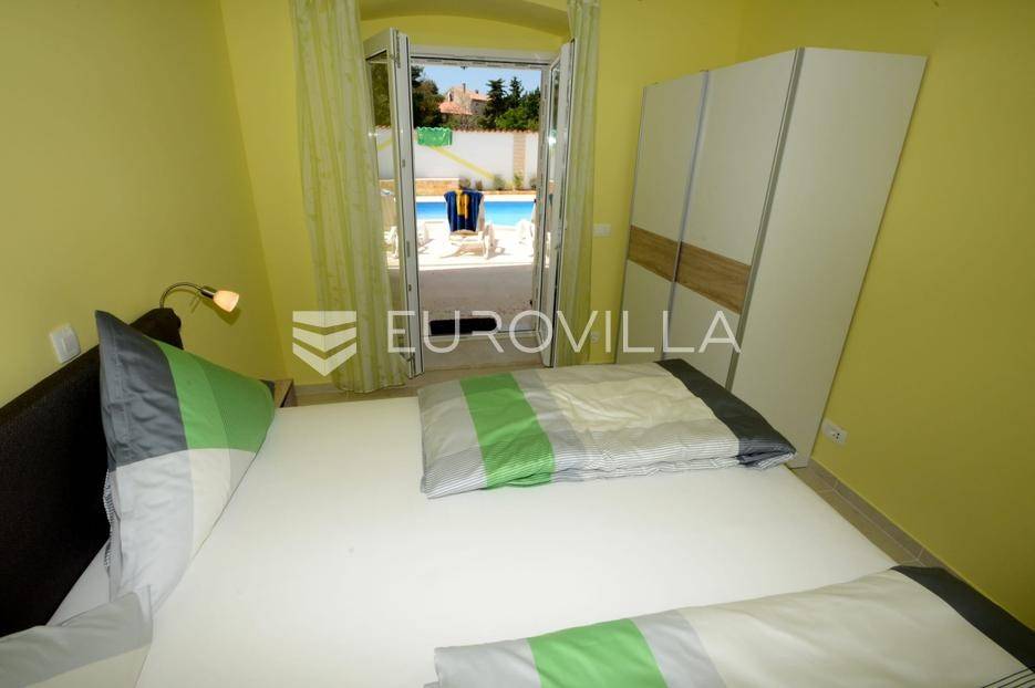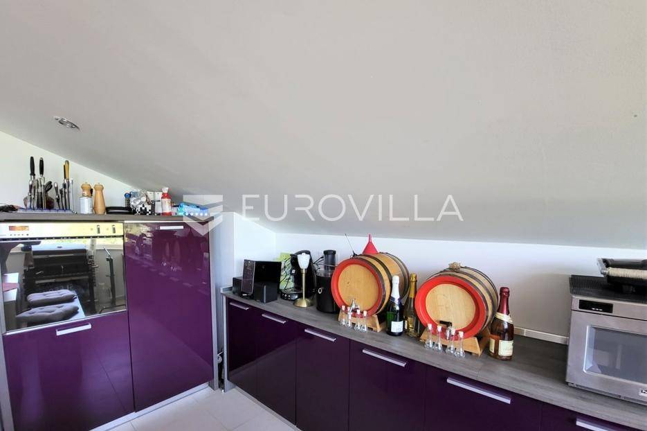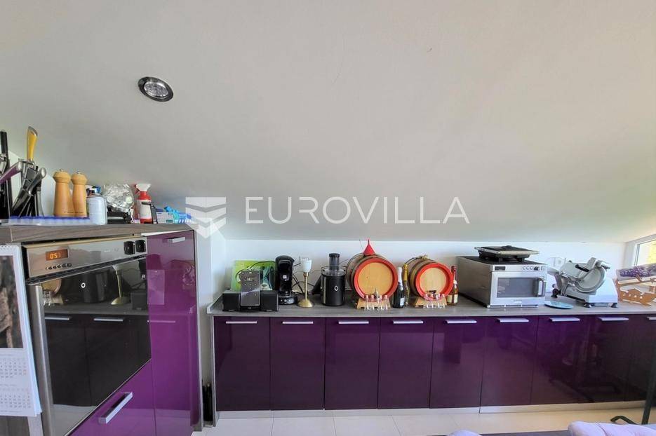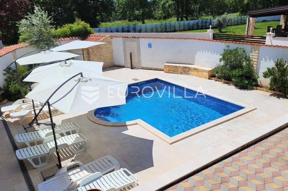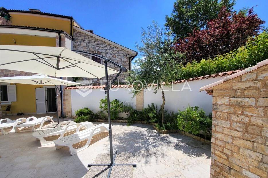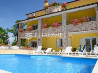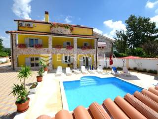Istra, okolica Višnjan - kuća s bazenom i 4 stambene jedinice, blizina PorečaDvojna kuća se prostire na tri etaže i ima ukupno 500 m² bruto površine, dok tlocrtna površina iznosi 171 m². Površina zemljišta iznosi 664 m² i u potpunosti je ograđena.Raspored:Prizemlje: veliki apartman koji se sastoji od kuhinje, blagovaonice, dnevnog boravka, tri spavaće sobe, dvije kupaonice, ostave i praonice. Iz dnevnog boravka i jedne spavaće sobe izlaz na natkrivenu terasu i bazen.Kat: dva apartmana s balkonima i pogledom na bazen. Jedan apartman ima dvije spavaće sobe, drugi jednu.Visoko potkrovlje: stan s dvije spavaće sobe, kupaonicom, toaletom za goste, spremištem, dnevnim boravkom, blagovaonicom i potpuno opremljenom kuhinjom.Nekretnina se prodaje potpuno namještena. Grijanje je centralno uz klima uređaje (inverter), s mogućnošću grijanja na drva. Objekt je opremljen video nadzorom, alarmom, klima uređajima, TV-om u svakoj sobi i komarnicima na svim prozorima.Okućnica sadrži:bazen površine 21 m² sa sunčalištemnatkrivenu terasuroštiljdječji kutakviše parkirnih mjesta (uključujući natkriveno parkiranje)Zbog blizine mora (12 km), Poreča i razvijene turističke ponude, nekretnina je pogodna za turistički najam i investiciju.Lokacija je mirna, okružena kućama za odmor, a u blizini se nalaze jama Baredine, Zvjezdarnica Višnjan, brojne vinarije i agroturizmi.Za više informcija stojimo vam na raspolaganju... Više na eurovilla.hr, ID: 470436