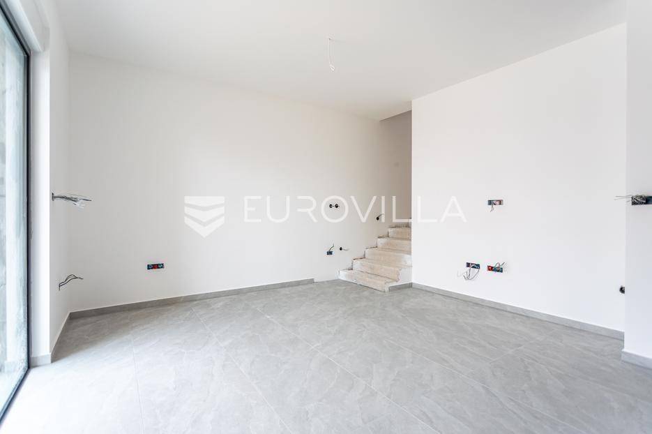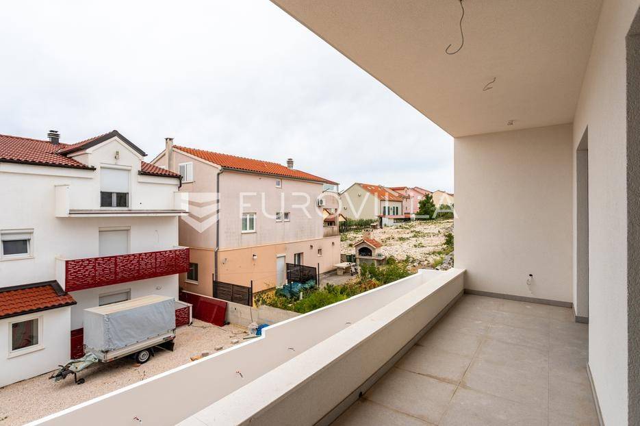 Vodice, prostran, dvoetažan dvosoban stan, neto korisne površine 112,61 m². Površina zatvorenog prostora iznosi 102,61m². Odlična pozicija za turistički najam, ali i za stanovanje. Zgrada je u završnoj fazi izgradnje, te će biti završena do kraja lipnja 2025. godine.Stan se prostire u prizemlju i na prvom katu zgrade od ukupno 3 etaže. U prizemlju stana nalazi se prostrani dnevni boravak sa kuhinjom i blagovaonicom, te WC i prostor ispod stepenica koji služi kao ostava. Iz boravka se izlazi na vanjsku terasu i dvorišni prostor površine 40 m² koji pripada stanu. Na prvom katu nalaze se dvije spavaće sobe, kupaonica i vešeraj. Obje spavaće sobe imaju izlaze na balkone. Apartmanu pripadaju i dva parkirna mjesto ispred zgrade.Nalazi na odličnoj lokaciji, 1300 metara od mora, na par minuta od centra Vodica. Svi bitni sadržaji nalaze se u blizini zgrade.Za sve ostale informacije stojimo Vam na raspolaganju.... Više na eurovilla.hr, ID: 480051