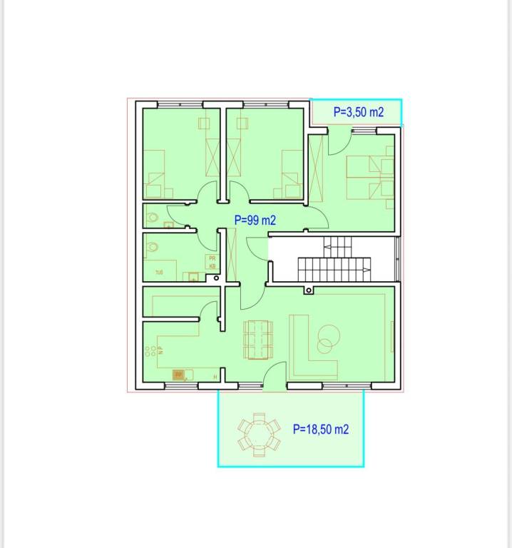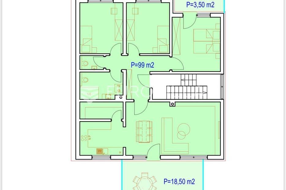 Đakovo, Dračice, moderan i funkcionalan četverosoban stan smješten na prvom katu urbane vile s ukupno tri stana, u mirnoj i poželjnoj gradskoj četvrti. Svakom stanu pripadaju dva vanjska nenatkrivena parkirna mjesta. Ova nekretnina predstavlja idealan spoj suvremenog dizajna, udobnosti i napredne tehnologije; savršeno rješenje za obiteljski život.Stan se sastoji od tri spavaće sobe, od kojih glavna ima izlaz na balkon, prostrane kupaonice, odvojenog WC-a, hodnika, dnevnog boravka, blagovaonice, kuhinje i ostave. Dovodi i odvodi za perilicu rublja predviđeni su u kupaonici i ostavi, što omogućuje fleksibilan raspored perilice i sušilice. Balkon pruža ugodan prostor za boravak na otvorenom.Zgrada je opremljena podnim grijanjem, videonadzorom, trofaznim priključkom struje, ima grijano stepenište i automatskom rampom na ulazu u dvorište. Planirano je uvođenje dva klima uređaja po stanu, a u dvorištu objekta nalazi se zajednički bunar za korištenje. Objekt je građen prema najvišim standardima energetske učinkovitosti i kvalitete stanovanja. Završetak radova planiran je u svibnju 2026. godine.U neposrednoj blizini dostupni su svi potrebni sadržaji za ugodan svakodnevni život; škola, vrtić, dom zdravlja, trgovine, pekara, kafići, restoran, igrališta i benzinska postaja.Ostale informacije na upit.... Više na eurovilla.hr, ID: 500162