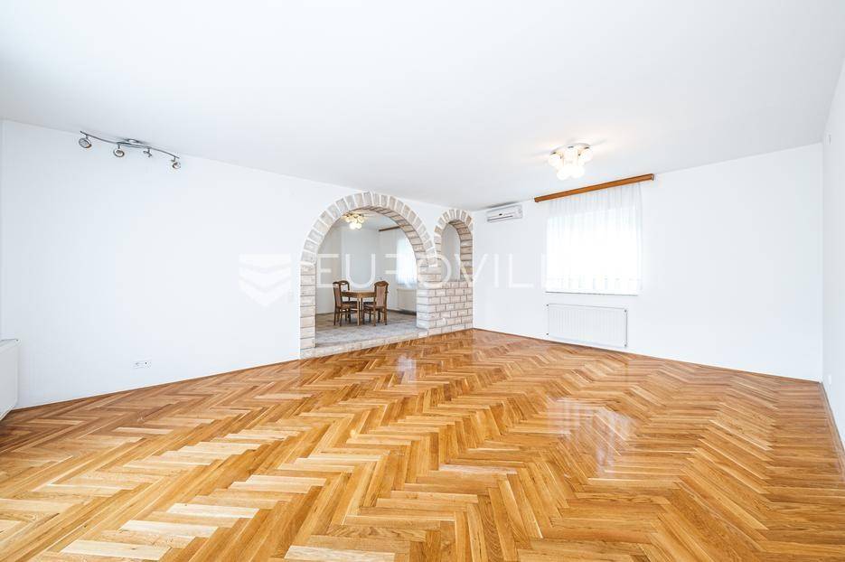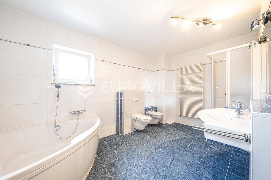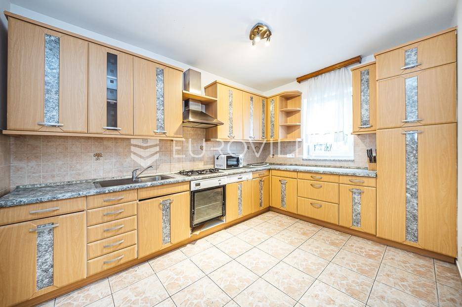 Gračani, prekrasan troetažan šeterosoban stan s vrtom u odličnoj zgrada, ukupno 5 stanova s zasebnim ulazima, novije gradnje 2002. godine na odličnoj lokaciji s prekrasnim otvorenim pogledom u neposrednoj blizini svih sadržaja potrebnih za kvalitetan obiteljski život.Stan se prostire na tri etaže povezane unutarnjim stubištem (podrum, prizemlje i prvi kat) zatvorene površine 234,60 m2, polunatkrivena terasa 15,34 m2, terasa 5,04 m2, vrt 345,00 m2, vanjsko parkirno mjesto 16,00 m2. Ukupno obračunski netto korisna površina 278,66 m2. Sastoji se od ulaznog hodnika, dnevnog boravka s izlazom na terasu i vrt, blagovaonice, odvojene kuhinje s ostavom, kupaonice i stubišta u prizemlju, hodnika, četiri spavaće sobe od kojih jedna ima izlaz na terasu, kupaonice na prvom katu. U sklopu podrumu se nalaze ostava, strojarnica, vešeraj i dvosoban stan s zasebnim ulazom koji se sastoji od dnevnog boravka, kuhinje s blagovaonicom, spavače sobe i kupaonice.Odličan tlocrt, puno danjeg svjetla, otvoreni pogled na Sljeme i Medvednicu. Plinsko etaže grijanje, klimatiziran... Položajem se nalazi u blizini javnog prijevoza, Meridijan shopping centra, škole, vrtića... Do Trga Bana Jelačića 20 min tramvajem.Za sve ostale informacije stojimo na raspolaganju.... Više na eurovilla.hr, ID: 540569