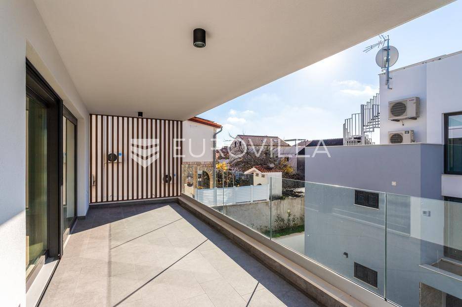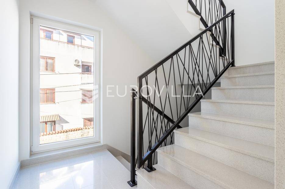 Na iznimnoj lokaciji u centru Vodica, svega 200 metara od mora, nalazi se ovaj prostrani apartman na prvom katu novogradnje visoke kvalitete, neto korisne površine 119,95 m². Nekretnini pripadaju dva privatna parkirna mjesta u dvorištu zgrade. Ukupna zatvorena površina stana iznosi 100,84 m².Stan je funkcionalno i moderno osmišljen, a sastoji se od prostranog dnevnog boravka s kuhinjom i blagovaonicom, tri spavaće sobe (od kojih jedna ima vlastitu kupaonicu), dodatne kupaonice te zasebnog toaleta. Iz dnevnog boravka izlazi se na veliku terasu površine 28,15 m², koja čini savršen prostor za boravak na otvorenom.Zgrada je građena prema najvišim standardima gradnje i opreme. Izdvajamo:podno grijanje na toplinsku pumpuMitsubishi klima uređaje u svim prostorijamavrhunsku stolariju s troslojnim staklomvideo parlafonpripremu za punionicu električnih vozila na parkirnom mjestupametnu parking rampu s očitavanjem registarskih oznakaLokacija zgrade dodatno povećava vrijednost nekretnine - mirna, a istovremeno centralna pozicija, na nekoliko minuta hoda od mora, plaže i svih sadržaja, čini ovu novogradnju jednom od rijetkih i najpoželjnijih u ovom dijelu Vodica.Za sve dodatne informacije i razgledavanje, slobodno nas kontaktirajte.... Više na eurovilla.hr, ID: 602562