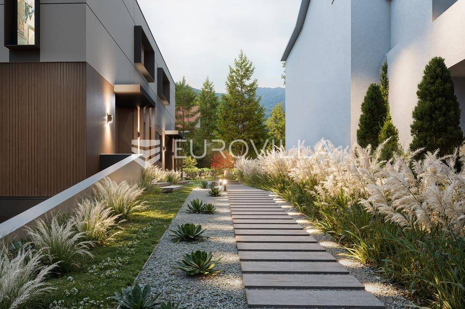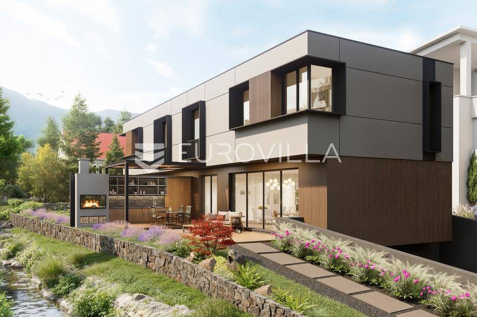 Zagreb, ulica Mlinovi, fenomenalan projekt dvojne kuće koja se gradi prema najvišim standardima gradnje na raritenoj mikrolokaciji, zavučena od glave ceste, uz zeleni pojas i potok.Odlično izveden tlocrt, razveden u tri etaže, ukupne zatvorene površine cca 208 m2 sa vrtom 133 m2. Na minus etaži se nalazi garaža za dva automobila i veliko spremište ukupne površine 50 m2. Stambeni prostor u prizemlju od 88 m2 sadrži ulazni hodnik, gostinjski wc, garderobu, veliku kuhinju, blagavonu i dnevni boravak sa izlazom na vrt dok je na drugoj etaži od 70 m2 spavaći dio sa roditeljskom sobom i zasebnom kupaonicom, dodatno 2 dječje sobe i kupaonica te vešeraj.Tehnologija gradnje i oprema prema najvišim standardima struke, od najbitnijeg izdvajamo:Izolacija temelja, podruma i garaža (Xypex, vodonepropusni beton)- Vrhunski aluminijski prozori, OTIIMA & Schüco- Ventilirana fasada po cijeloj kući- Stropni sustav za hlađenje, najnovija generacija sustava za hlađenje- Rješenje pametne kuće- Imitacija prirodnog kamena na zidovima- Visina stropa 310 cm- Omekšivač filtera za vodu- Sustav podnog grijanja i dizalica topline- Kuća je projektirana za dobivanje A+ energetskog certifikataPočetak gradnje 01/2025. godine, planirani završetak 05/2026. godine. Iskazana cijena je sa PDV-om a u ovoj fazi je moguće napraviti određene preinake u tlocrtu i opremi projekta.Izuzetna rezidencijalna lokacija okružena ambasadama. Dućani, kafići, škola i vrtić te javni prijevoz na glanoj cesti u neposrednoj blizini.Sve ostale tehničke specifikacije dostavljamo na upit. Preporuka agencije.... Više na eurovilla.hr, ID: 603501