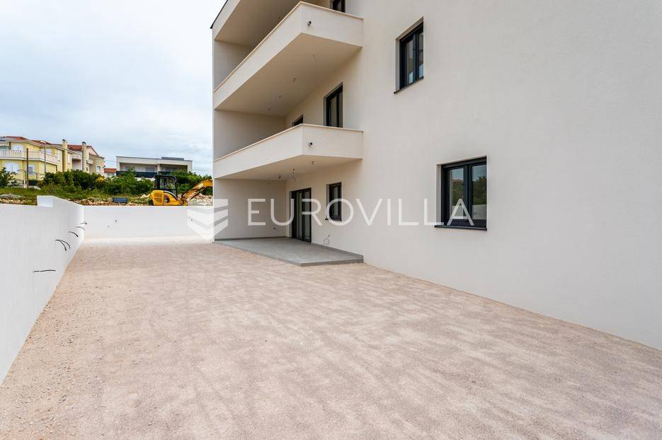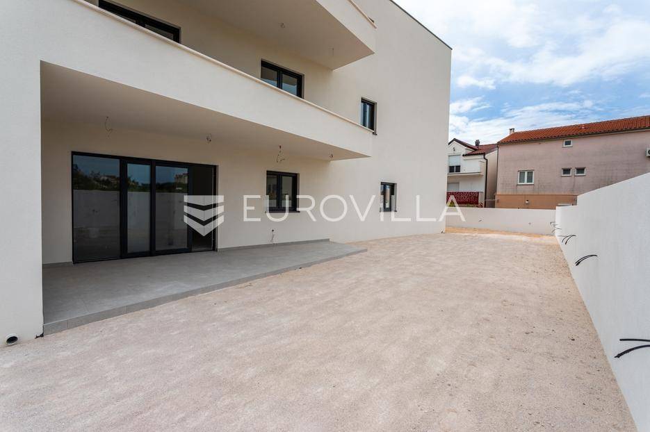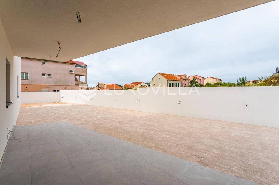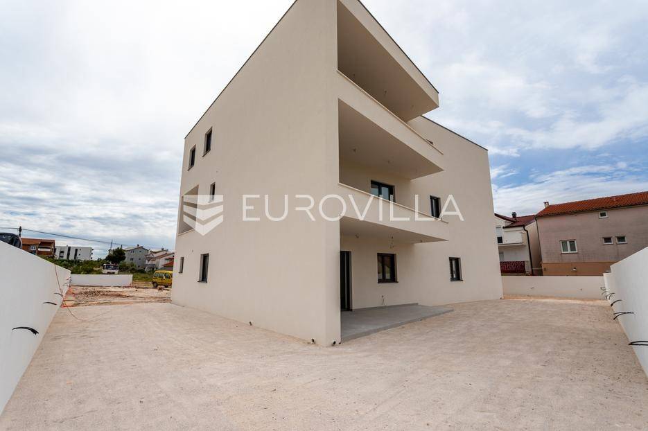 Vodice, prostran, dvoetažan trosoban stan, neto korisne površine 172,73 m². Površina zatvorenog prostora iznosi 152,73m². Odlična pozicija za turistički najam, ali i za stanovanje. Zgrada je u završnoj fazi izgradnje, te će biti završena do kraja lipnja 2025. godine.Stan se prostire u prizemlju i na prvom katu zgrade od ukupno 3 etaže. U prizemlju stana nalazi se prostrani dnevni boravak sa kuhinjom i blagovaonicom, te WC i prostor ispod stepenica koji služi kao ostava. Iz boravka se izlazi na vanjsku terasu i dvorišni prostor površine 140 m² koji pripada stanu. Na prvom katu nalaze se tri spavaće sobe, od kojih master soba ima vlastitu kupaonicu, te još jedna zasebna kupaonica i vešeraj. Dvije spavaće sobe imaju izlaze na balkone. Apartmanu pripadaju i dva parkirna mjesto ispred zgrade.Nalazi na odličnoj lokaciji, 1300 metara od mora, na par minuta od centra Vodica. Svi bitni sadržaji nalaze se u blizini zgrade.Za sve ostale informacije stojimo Vam na raspolaganju.... Više na eurovilla.hr, ID: 660094