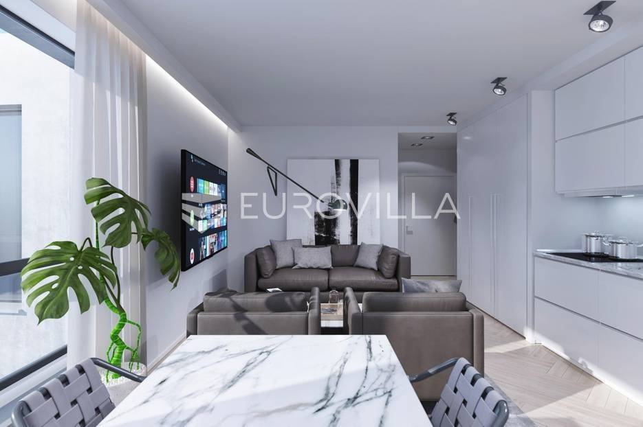 Zagreb, Britanski trg (Kukuljevićeva), luksuzna novogradnja M Residence (2024).Luksuzno namješten dvosoban stan 39,84m2 za najam, sastoji se od boravka s kuhinjom, spavaće sobe i kupaonice. Nalazi se na 2. katu, orijentiran na zapad i sjever. Pripada mu parkirno mjesto u garaži 18m2 (9). Ukupno obračunski 49m2. Slobodan za useljenje od 1.1.2026.Top lokacija, top luksuz i top sigurnost!Pronaći najbolje mjesto za sebe ne znači samo pronaći svoj idealan kvadratni metar. Dok stambeni prostor uređujemo prema svojima idejama, gradske četvrti oblikuju nas, naše navike i svakodnevnicu.Zamislite život u prirodi, udaljen od gradske vreve i smoga, a opet u centru grada i samo 5 minuta hoda do Malog placa(Britanskog trga), prvih kafića, dućana i tramvaja. Mali plac, kako ga građani zovu od milja, jedan je od najstarijih i najpopularnijih gradskih trgova, mjesto susreta, svježeg cvijeća i antikviteta na kojem živi savršeno očuvan ugođaj starog Zagreba. Na samo nekoliko koraka od Vašeg luksuznog stana nalaze se park šuma Zelengaj i Tuškanac koje nude kilometre staza za šetnju ili bicikliranje. Ako želite pak popiti kavu u samom centru grada, za samo 15-tak minuta lagane šetnje doći ćete do glavnog gradskog trga -Trga Bana Jelačića!Kukuljevićeva pripada uskom krugu najljepših zagrebačkih ulica, okružena zelenim pojasom, a živjeti u toj ulici znači živjeti daleko od gradske vreve, a opet biti od nje udaljen samo nekoliko minuta hoda.Živjeti u visokom luksuzu i sigurnosti, a imati prirodu za najbližeg susjeda velika je povlastica. Šumski pojas iznad Britanskog trga tako nudi osvježavajuću mikroklimu sa ljetnim temperaturama uvijek za nekoliko stupnjeva niže od onih na zagrijanom gradskom asfaltu. Svježina zraka i zelenilo u spoju luksuza nadomak gradskog centra pun je pogodak i za najizbirljivije.POSEBNOSTI ZGRADEZgrada "M" je luksuzna boutique zgrada sa 22 stana na prestižnoj lokaciji u samom centru grada. Njezin luksuz je opisan sa 3 „M":Mighty - zgrada je ojačana za potres 20% iznad propisanog visokog Europskog Standarda (Eurocode 8) za našu potresnu zonu. Time je ova stambena zgrada jedinstvena u Hrvatskoj.Modern - primjena vrhunskih materijala i tehničkih rješenja na vanjskim oblozima garantira impresivnu razinu energetske učinkovitosti. Moderan dizajn stanova i zajedničkih prostora, vrhunska oprema i materijali te precizna izvedba čine Zgradu-M vjerojatno najluksuznijom zgradom u našem gradu.Memorable - luksuz koji se pamti! Od neobično visokih staklenih stijena (2.5m - 2.8m) koje ne samo da otvaraju prostor, već ga i integriraju s prirodom, pa sve do pažljivog odabira vrhunske opreme (npr. vlastitog odabira između renomiranog francuskog dizajnera Philippe Starck-a, i perfekcionista master arhitekta Talijana Antonia Citteria) …suvremeni luksuz je protkan od unutarnjeg do vanjskog izgleda.OPREMAPodne obloge od vrhunske talijanske keramike i najkvalitetnijeg parketa slaganih u francuski vez ili ravan, stoji vama na odabir (u ranijoj fazi gradnje).Jedinstven doživljaj vode omogućit će Vam Axor (luksuzna linija Hansgrohe kolekcije), gdje ćete moći izabrati između luksuznog dizajna renomiranog francuskog dizajnera Philippe Starck-a, poznatog po unikatnom dizajnu Venus-a, jahte Steve Jobs-a, i perfekcionista master arhitekta Talijana Antonia Citteria.UDOBNOSTPogledom na tlocrte stanova uvidjet ćete da je komfor življenja bio prioritet u projektiranju. Protočnost stanova te razdvojenost glavnog spavaćeg dijela od dnevnih prostorija garantira ugodan suživot svih ukućana bez obzira na razliku u dobi i navikama. Američki način integriranosti kuhinje sa dnevnom sobom upotpunjuje druženje u zajedništvu obitelji.Svaka prostorija u stanu ima svoj termostat i može se neovisno o drugim prostorijama grijati ili hladiti što pridonosi udobnosti boravka svih ukućana. Cjelokupna površina stana grije se podnim grijanjem, a klima jedinice su nevidljive i skrivene u spuštenom stropu. Sve je do daljinski kontrolirano preko interneta putem mobilnog telefona ili tableta.Pristup zgradi omogućen je osobama smanjene pokretljivosti. Također, stanari će u zgradu ući i s dječjim kolicima ili koferima bez ikakvih prepreka i podizanja.ENERGETSKA UČINKOVITOSTZgrada je opremljena vrhunskom Schuco aluminijskom stolarijom s niskoenergetskim karakteristikama. Samoperiva fasada je izvedena najkvalitetnijim njemačkim STO sustavom i toplinskom izolacijom od mineralne vune debljine 20cm.Staklene stijene u koje je implementirana najsuvremenija tehnologija u izradi stakla povećavaju već impresivnu razinu energetske učinkovitosti.Sustavi za grijanje i hlađenje s A+++ certifikatima ugrađeni su prema najvišim funkcionalnim ali i estetskim standardima. Ove skrivene sustave koji su integrirani u podove i stropove možda je teško vidjeti, ali lako je osjetiti njihovu kvalitetu i uštedu koju donose.FLEKSIBILNOST PROSTORAStanovi nikada ne miruju i rijetko dolaze do svog konačnog oblika. Dinamika života stanara često transformira stambeni prostor koji se, ako ikako može, poslušno oblikuje oko novonastalih potreba svojih žitelja.Rast broja ukućana, iznenadni rad od kuće ili nešto treće, zgrada će moći popratiti zbog iznimne razine adaptabilnosti prema željama kupaca. Pametnom distribucijom nosivih elemenata/zidova omogućeno je mijenjanje nenosivih zidova i time postizanje visoke personalizacije prostora, što je omogućeno u suradnji sa projektantima (isključivo u ranijoj fazi gradnje). Pravi luksuz dozvoljava Vaš osobni odabir („personal touch").NAPOMENA!Ovakvih jedinstvenih lokacija u centru našeg grada više nema pa je skoro nemoguće pronaći kvalitetan stan iz novogradnje bez obzira na raspoloživa sredstva. Život u centru grada ima prednosti i daje poseban „feeling", ali… većina zgrada u centru građena je prije 50 ili 100 godina, tadašnjim tehnologijama, i neovisno koliko sredstava je uloženo u adaptaciju, to još uvijek os