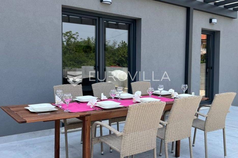 U okolici Pule, okružena nasadima maslina nalazi se ova elegantna vila od 180 m2, smještena na okućnici od 600 m2 s vanjskim bazenom od 33 m2.Na ulaznom uzvišenom dijelu je parking za 4 vozila dok je sa strane ulaz u vilu te pruža potpunu privatnost stanarima. Sam kaskadni izgled vile pomno je osmišljen te se na ulazu u vilu zapravo ulazi na prvu etažu koju čine tri spavaće sobe i dvije moderne i elegantne kupaone. Dok je. na gornjoj etaži velika master spavaća soba s vlastitom kupaonom.U prizemnom najnižem dijelu smještena je velika kuhinja i dnevni boravaka od 75 m2, toalet i izlaz na terasu, bazen od 33 m 2, sunčalište sa zaista prekrasnim pogledom na zelene površine.Vila ima video nadzor, vrt automatsko navodnjavanje, u potpunosti je klimatizirana, besprijekorno opremljena i uređena.Udaljenost od prekrasne Pješčane uvale je svega 1500 m, dok je do centra grada potrebno 5 min vožnje autom.Za organizaciju razgleda i više informacija slobodno nas kontaktirajte.... Više na eurovilla.hr, ID: 688808