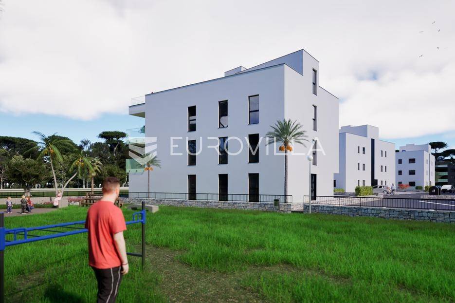 U mirnom i urbanom naselju Crno u Zadru, predstavljamo ekskluzivan suvremeni stambeni projekt koji savršeno spaja luksuz modernog življenja s osjećajem privatnosti. Ova elegantna novogradnja, idealna za mlade obitelji, nudi vrhunsku kvalitetu u jednoj od najpoželjnijih zona grada. Zgrada se sastoji od samo šest pomno dizajniranih stambenih jedinica, osiguravajući intimnu atmosferu.Ovaj prostrani stan u prizemlju, ukupne korisne površine 82,16 m², ističe se iznimnom funkcionalnošću i promišljenim rasporedom. Sastoji se od tri udobne spavaće sobe, prostranog dnevnog boravka elegantno povezanog s blagovaonicom, te moderne kuhinje. Dodatnu udobnost pružaju dvije luksuzno uređene kupaonice i zaseban WC. Poseban dragulj nekretnine je privatna krovna terasa koja pruža očaravajući pogled na grad, idealna za opuštanje i druženja.Kvaliteta gradnje i opreme na najvišoj je razini. Stan je opremljen podnim grijanjem, visokokvalitetnom PVC stolarijom s komarnicima, te protupožarnim i protuprovalnim ulaznim vratima. Korišteni su samo najkvalitetniji materijali i primijenjen je moderan dizajn koji odiše elegancijom. Uz stan dolaze i četiri privatna parkirna mjesta, što je izuzetna pogodnost.Ova nekretnina predstavlja savršeno mjesto za obiteljski život i izvanrednu dugoročnu investiciju u Zadru. Ne propustite priliku postati vlasnikom dijela ove ekskluzivne priče.Za sva dodatna pitanja i dogovor oko razgledavanja, slobodno nas kontaktirajte.... Više na eurovilla.hr, ID: 694105