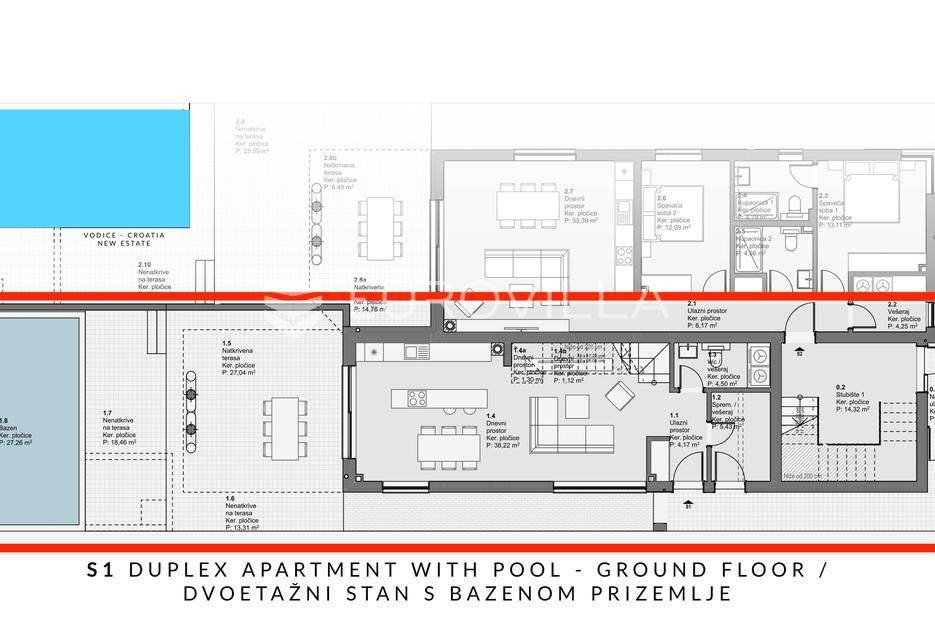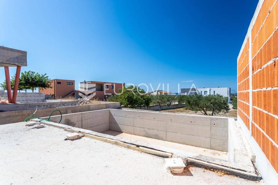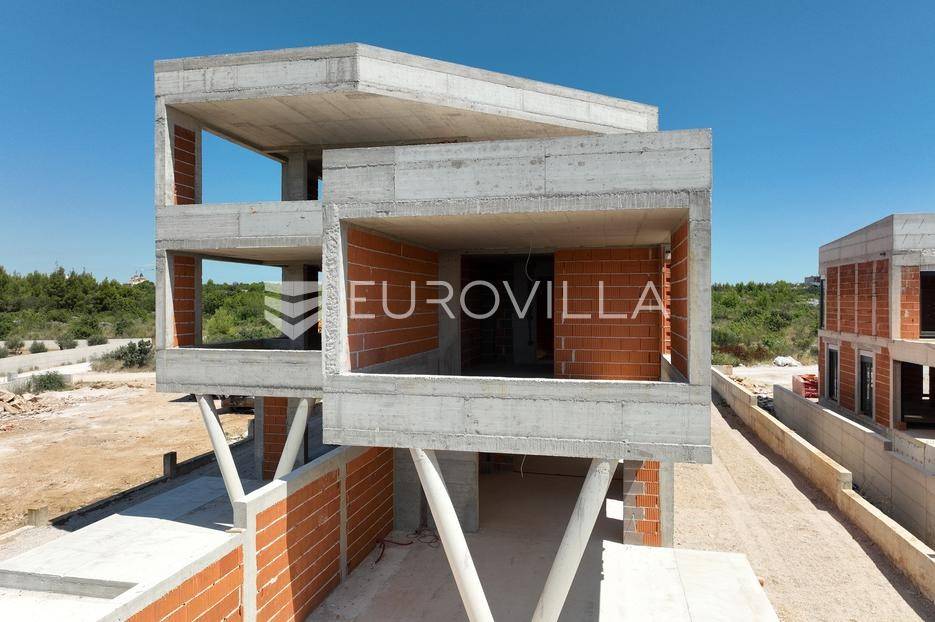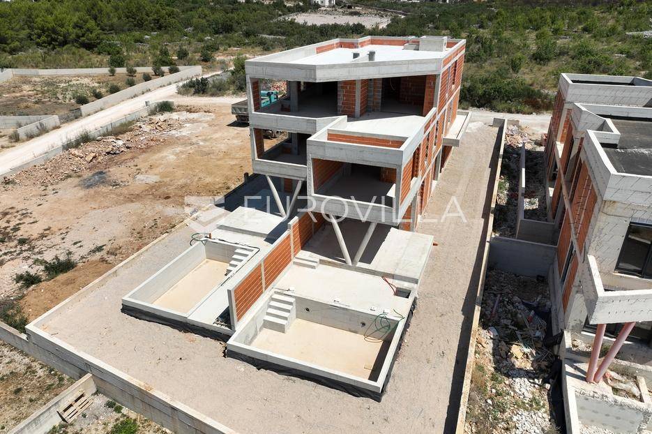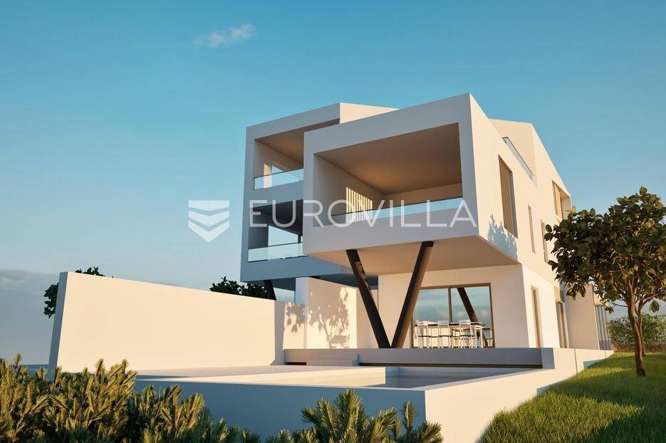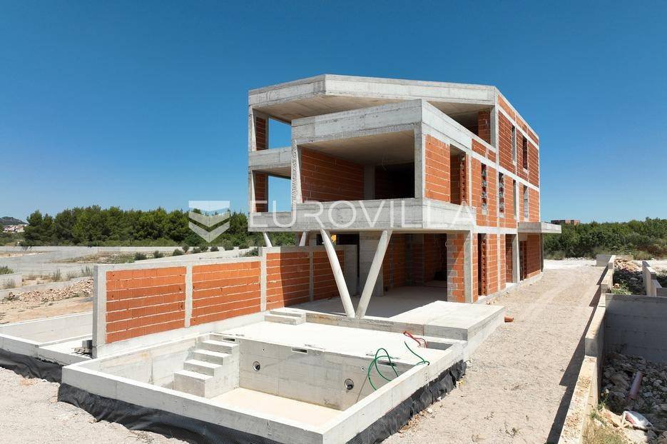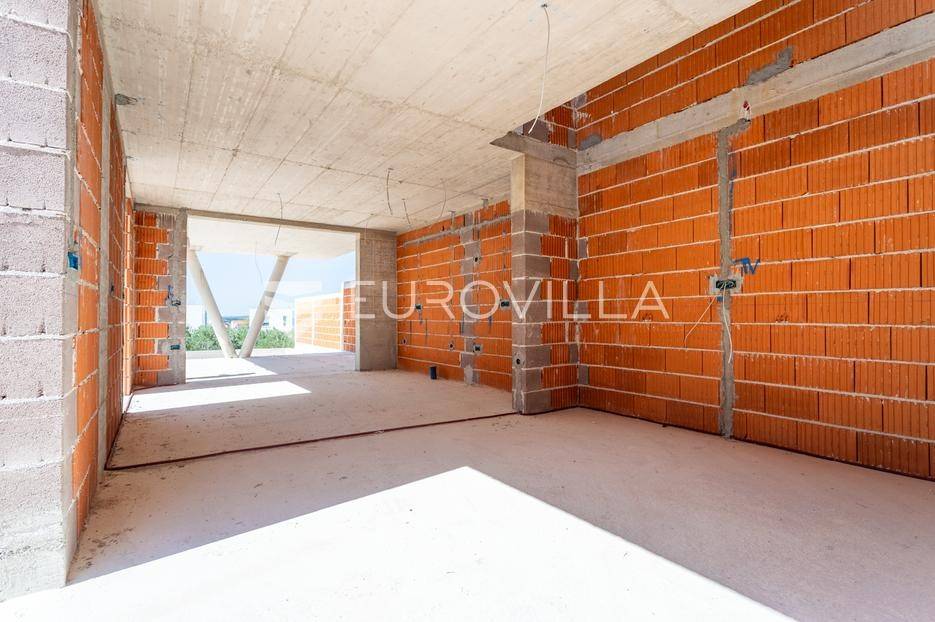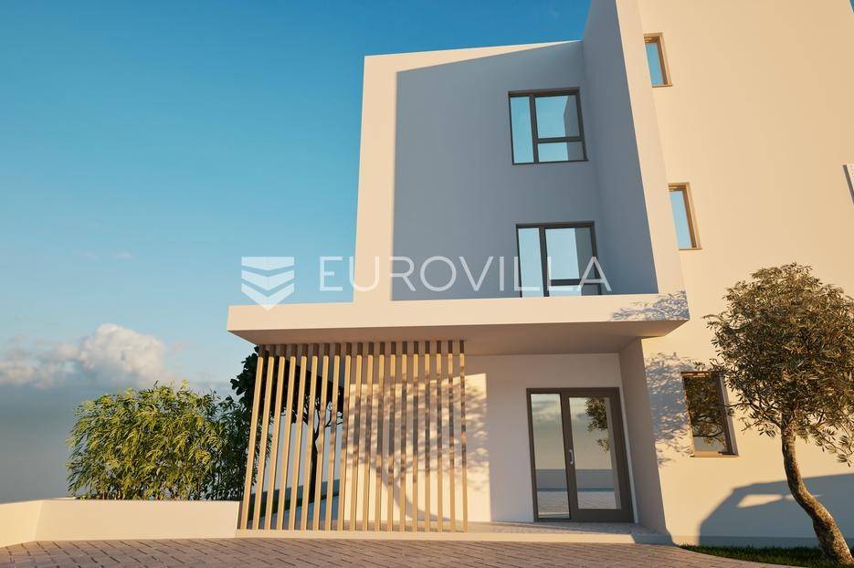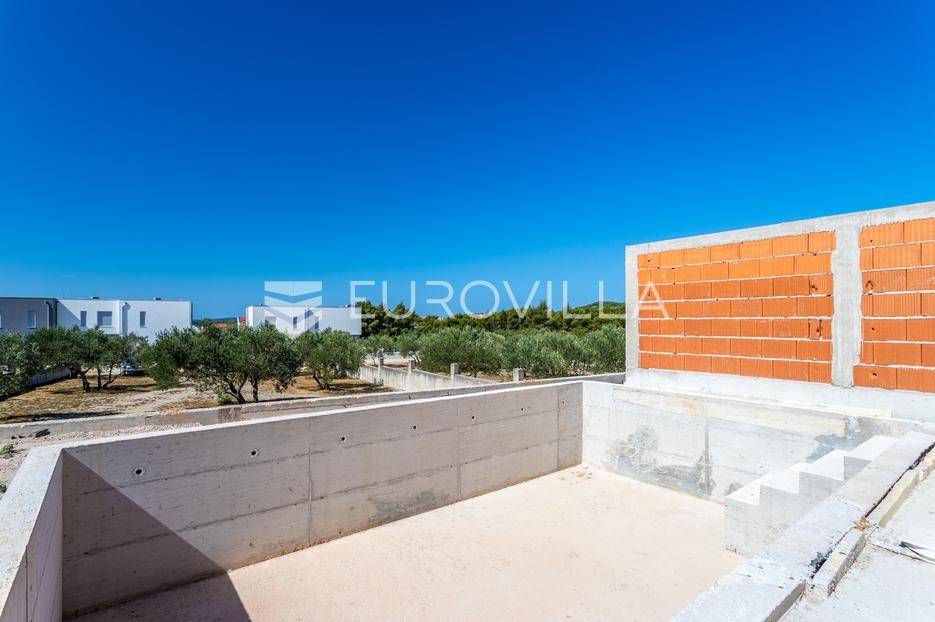 Vodice, prostran dvoetažan stan s dvorištem, te pogledom na more, neto korisne površine 165,37 m². Stan se prostire na dvije etaže, prizemlje i prvi kat. Nalazi se u moderno dizajniranoj zgradi sa ukupno 4 stana. Površina zatvorenog prostora iznosi 110 m². Ukupna vanjska površina koja pripada stanu iznosi 268 m². Uz nadoplatu moguća izgradnja bazena.Prizemlje stana sastoji se od dnevnog boravka s kuhinjom i blagovaonicom, spremišta i WC-a. Iz boravka se izlazi na veliku natkrivenu terasu na kojoj se nalazi bazen od 27 m². Na katu se nalaze 3 spavaće sobe, od kojih jedna ima privatnu kupaonicu i izlaz na veliku natkrivenu terasu, te još jedna dodatna kupaonica. Svaka prostorija ima klima uređaj, a kupaonice imaju ugrađeno podno grijanje.Uz stan dolazi i jedno parkirno mjesto, uz mogućnost kupnje dodatnih parkirnih mjesta. Udaljenost od mora i centra Vodica je 900 metara. Zgrada je trenutno u izgradnji, te je planirani završetak na jesen 2027. godine.Za sve ostale informacije stojimo na raspolaganju.... Više na eurovilla.hr, ID: 721837