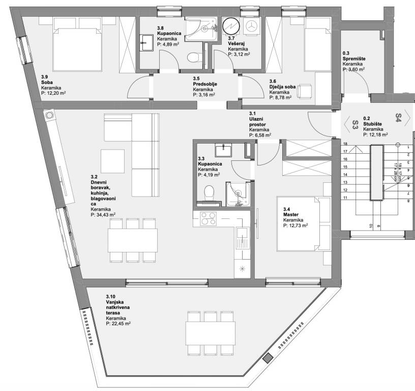 Vodice, prostran trosoban stan na 1. katu moderne zgrade, zatvorene površine 90,08 m². Pripada mu jedno parkirno mjesto u dvorištu. Ukupno obračunski neto korisne površine 101,31 m².Stan se sastoji od prostranog dnevnog boravka sa kuhinjom i blagovaonicom, tri spavaće sobe od kojih master soba ima privatnu kupaonicu, jedne zasebne kupaonice, predsoblja, vešeraja te velikog balkona površine 22,45 m². Na podovim je kvalitetna keramika, te stan ima podno grijanje svuda osim u spavaćim sobama.Izvrsna mikrolokacija, na mirnom mjestu u blizini centra mjesta i svih bitnih sadržaja. Udaljenost do plaže je 350 metara, a do centra Vodica 800 metara. Zgrada je trenutno u izgradnji, te je planirani završetak radova do lipnja 2025.Za sve ostale informacije stojimo na raspolaganju.... Više na eurovilla.hr, ID: 725921
