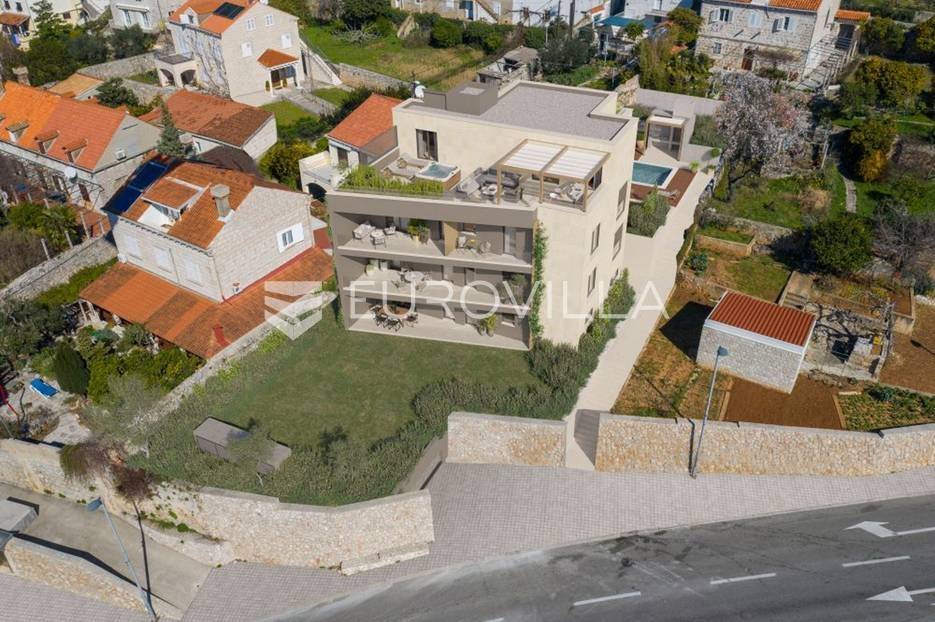 Dubrovnik, NOVOGRADNJA, luksuzna stambena građevina brutto građevinske površine 1400 m2 na izuzetnoj lokaciji u centru grada s prekrasnim pogledom na more i cijeli Dubrovnik zajedno s jezgrom starog grada.Stambena građevina se sastoji od 4 stambene jedinice (35-259 m2) s terasama zajedno s odgovarajućim brojem parkirnih mjesta u garaži na podrumskoj etaži. Na sjevernom djelu parcele smješten je bazen s ljetnom kuhinjom, ukupna površina parcele iznosi 841 m2.Katnost građevine iznosi Po+S+P+1K +Pk.Gradnja je usklađena kombinacijom tradicijskih i modernih materijala kako bi se uklopili u okruženje. Visokim položajem stambene građevine osigurani su pogledi na cijeli grad s jedinstvenom vizurom. Od građevine do Starog grada omogućen je neometan pješački pristup u trajanju od 10 minuta.Sve ostale informacije na upit.... Više na eurovilla.hr, ID: 762010