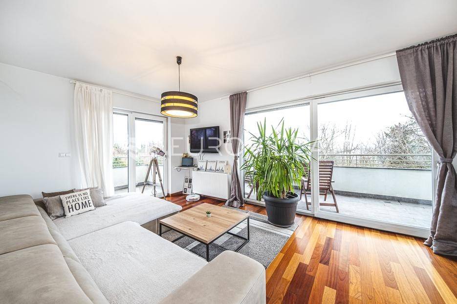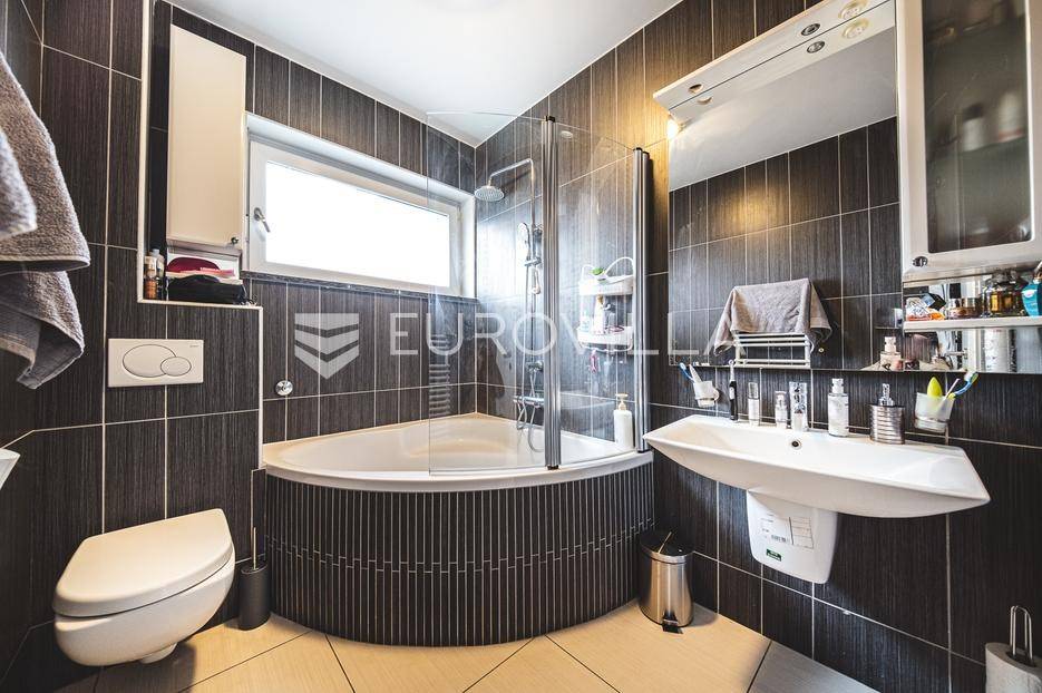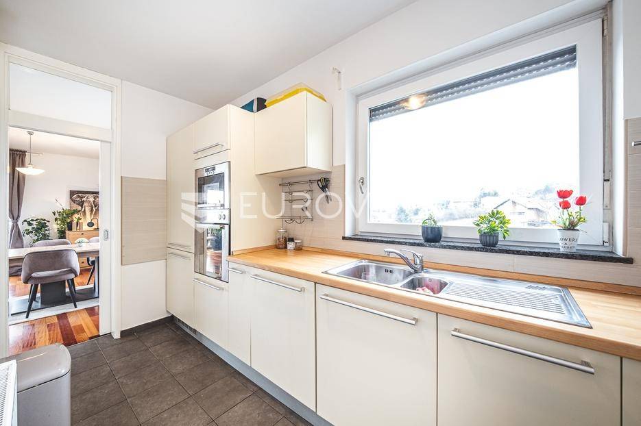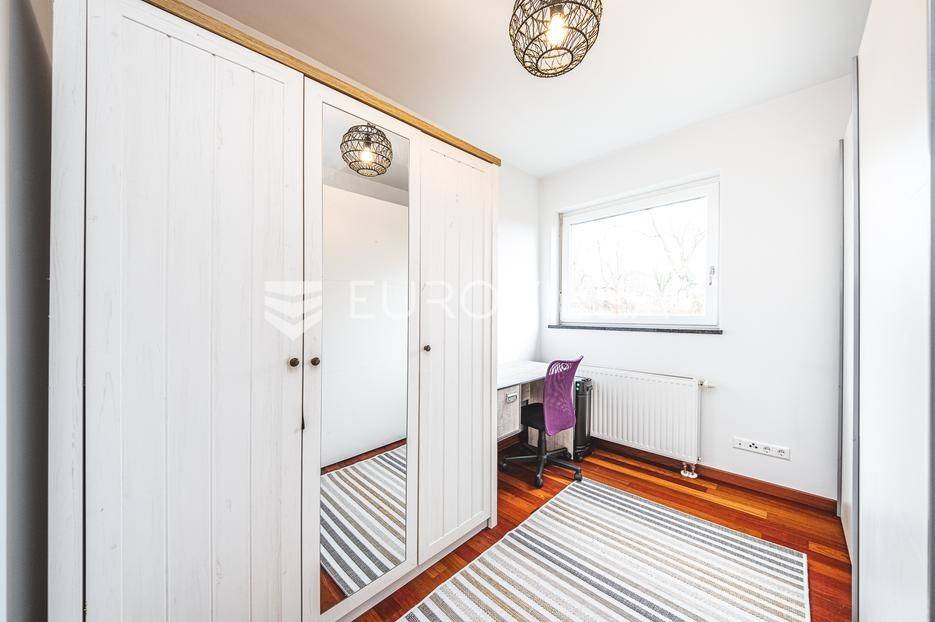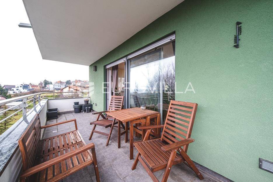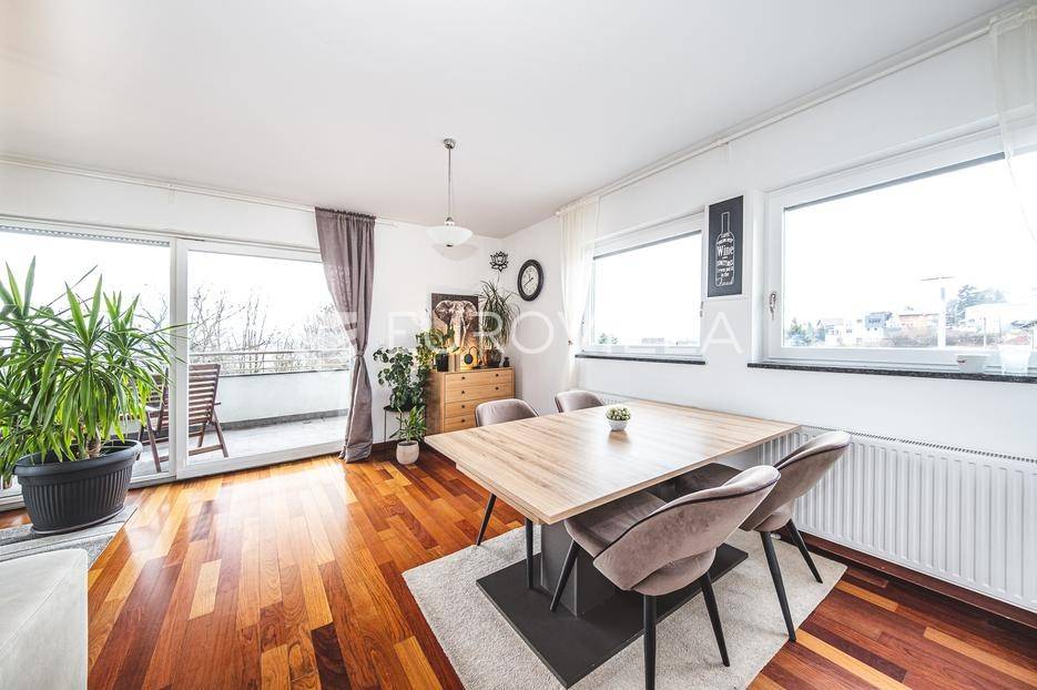 Prodaje se moderan trosoban stan površine 100 m², smješten u luksuznoj i iznimno mirnoj stambenoj zgradi iz 2008. godine s ukupno samo 5 stanova (visoko prizemlje, prvi i drugi kat). Stan se nalazi na prvom katu, u sredini zgrade, što osigurava dodatnu privatnost i ugodnu temperaturu tijekom cijele godine.Sastoji se od ulaznog hodnika, gostinjskog WC-a, kupaonice s podnim grijanjem, dvije spavaće sobe, kuhinje te dnevnog boravka s blagovaonicom. Stan ima dvije prostrane terase koje okružuju stan i dodatno naglašavaju osjećaj otvorenosti i povezanosti s prirodom.Stanu pripadaju garažno parkirno mjesto, vanjsko parkirno mjesto i spremište, a stanarima su na raspolaganju privatna sauna i manja teretana u sklopu zgrade.Stan ima otvoren panoramski pogled na Zagreb, a pretežita orijentacija je jug, uz dodatnu orijentaciju na istok i zapad, što osigurava obilje prirodnog svjetla tijekom cijelog dana. Ispred zgrade nalazi se zaštićeni zeleni pojas bez mogućnosti daljnje gradnje, što jamči trajan mir i pogled.Grijanje u stanu je etažno plinsko a prodaje se u potpunosti namješten.Lokacija je idealna za miran obiteljski život - dječji vrtić i osnovna škola nalaze se na svega nekoliko minuta hoda, kao i javni prijevoz (autobus i vlak), trgovine i ostali sadržaji, uz potpunu odsutnost gradske buke.Ostale informacije na upit.... Više na eurovilla.hr, ID: 762050