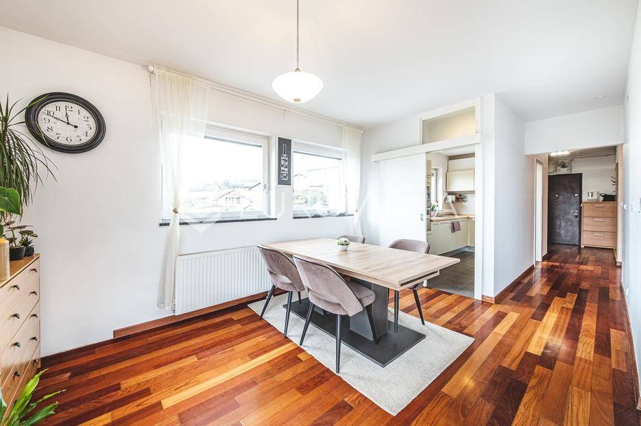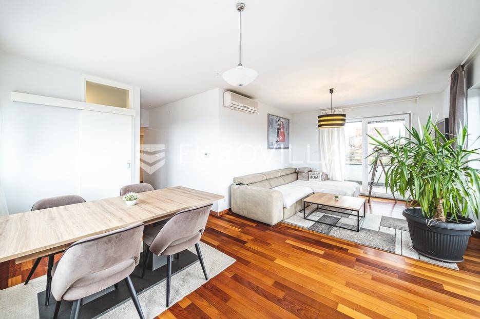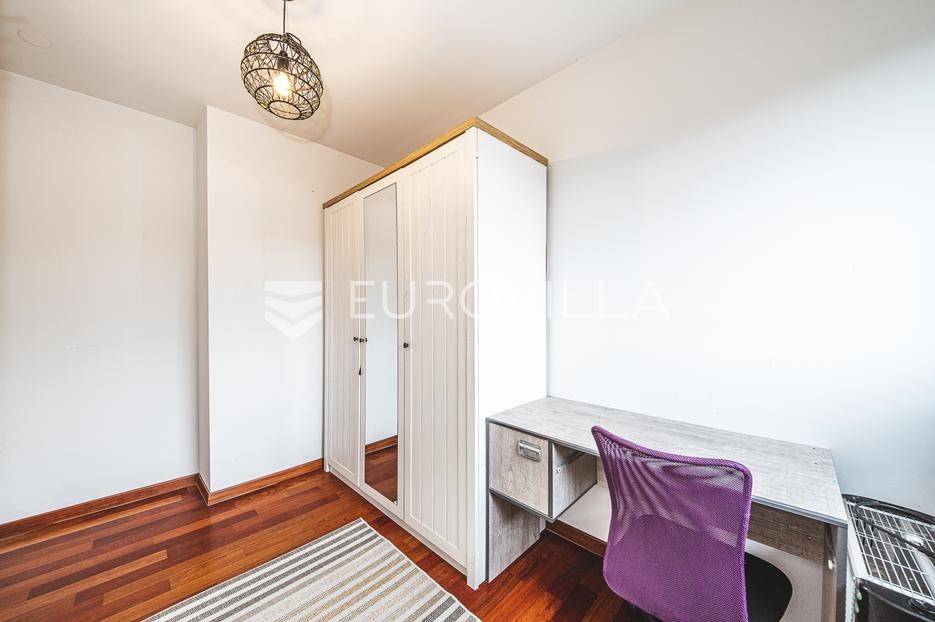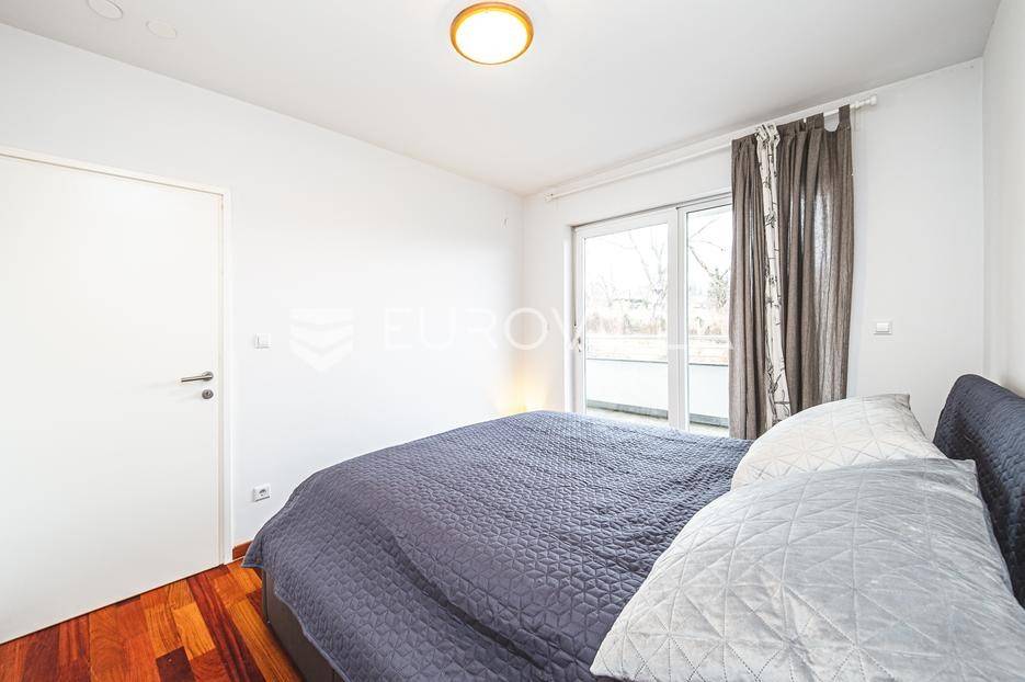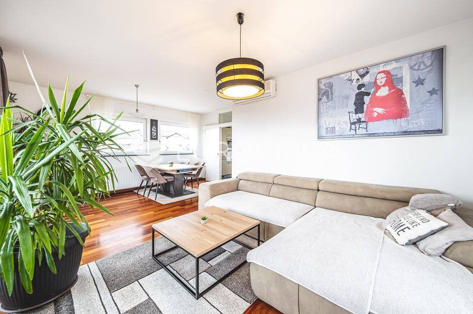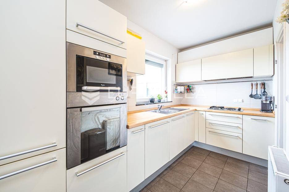 Prodaje se moderan trosoban stan površine 100 m², smješten u luksuznoj i iznimno mirnoj stambenoj zgradi iz 2008. godine s ukupno samo 5 stanova (visoko prizemlje, prvi i drugi kat). Stan se nalazi na prvom katu, u sredini zgrade, što osigurava dodatnu privatnost i ugodnu temperaturu tijekom cijele godine.Sastoji se od ulaznog hodnika, gostinjskog WC-a, kupaonice s podnim grijanjem, dvije spavaće sobe, kuhinje te dnevnog boravka s blagovaonicom. Stan ima dvije prostrane terase koje okružuju stan i dodatno naglašavaju osjećaj otvorenosti i povezanosti s prirodom.Stanu pripadaju garažno parkirno mjesto, vanjsko parkirno mjesto i spremište, a stanarima su na raspolaganju privatna sauna i manja teretana u sklopu zgrade.Stan ima otvoren panoramski pogled na Zagreb, a pretežita orijentacija je jug, uz dodatnu orijentaciju na istok i zapad, što osigurava obilje prirodnog svjetla tijekom cijelog dana. Ispred zgrade nalazi se zaštićeni zeleni pojas bez mogućnosti daljnje gradnje, što jamči trajan mir i pogled.Grijanje u stanu je etažno plinsko a prodaje se u potpunosti namješten.Lokacija je idealna za miran obiteljski život - dječji vrtić i osnovna škola nalaze se na svega nekoliko minuta hoda, kao i javni prijevoz (autobus i vlak), trgovine i ostali sadržaji, uz potpunu odsutnost gradske buke.Ostale informacije na upit.... Više na eurovilla.hr, ID: 762050