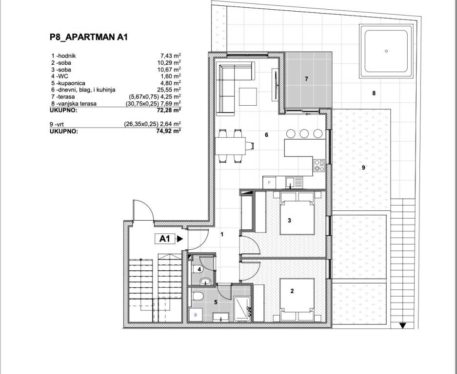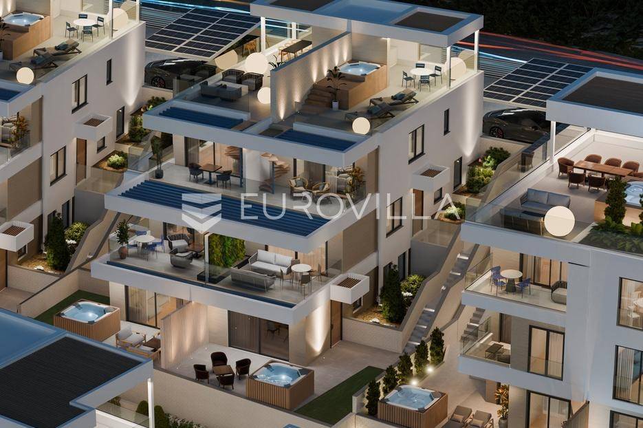 Komforan dvosoban stan neto korisne površine 74,97 m2, bruto površine 126,27 m2. Sastoji se od hodnika, dvije spavaće sobe, wc-a, kupaonice, dnevnog boravka, kuhinje, blagovaonice, terase i prostranog vrta. Stanu pripada jedno vanjsko parkirno mjesto uz mogućnost kupovine dodatnog parkirnog mjesta. Izgradnja te sama oprema unutar stana je najvišeg standarda, pored toga, investitor nudi uslugu opremanja apartmana i unutarnjeg uređenja prema najvišim standardima, s modernim dizajnom koji zadovoljava potrebe kupaca. Rezultat je luksuzno uređeni prostor, potpuno spreman za upotrebu ili iznajmljivanje. Iz stana se pruža neometani pogled na more a udaljenost plaže je samo 100 m.Investiranje s garantiranim povratom predstavlja ključnu prednost ovog projekta. Investitor nudi mogućnost iznajmljivanja kupljenih apartmana u turističke svrhe, preuzimajući kompletan menadžment i usluge gostoprimstva. Na taj način, vlasnicima je osiguran povrat investicije bez potrebe za angažmanom na operativnim poslovima, jer se sve obavlja u njihovo ime, čime im se omogućuje siguran prihod od turističkog najma.Ovakav projekt je jedan od prvih ovog tipa na tom području, a slični koncepti uspješno se primjenjuju širom svijeta te ovo naselje predstavlja jedinstvenu investicijsku priliku na atraktivnoj lokaciji s velikim potencijalom za generiranje prihoda od turističkog najma i dugoročnu vrijednost nekretnine.Čiovo je idealna destinacija zahvaljujući svojoj blizini povijesnog grada Trogira, koji je pod zaštitom UNESCO-a, te povezanosti s kopnom mostom, što ga čini lako dostupnim i vrlo atraktivnim za turiste.Više informacija na upit.... Više na eurovilla.hr, ID: 772282