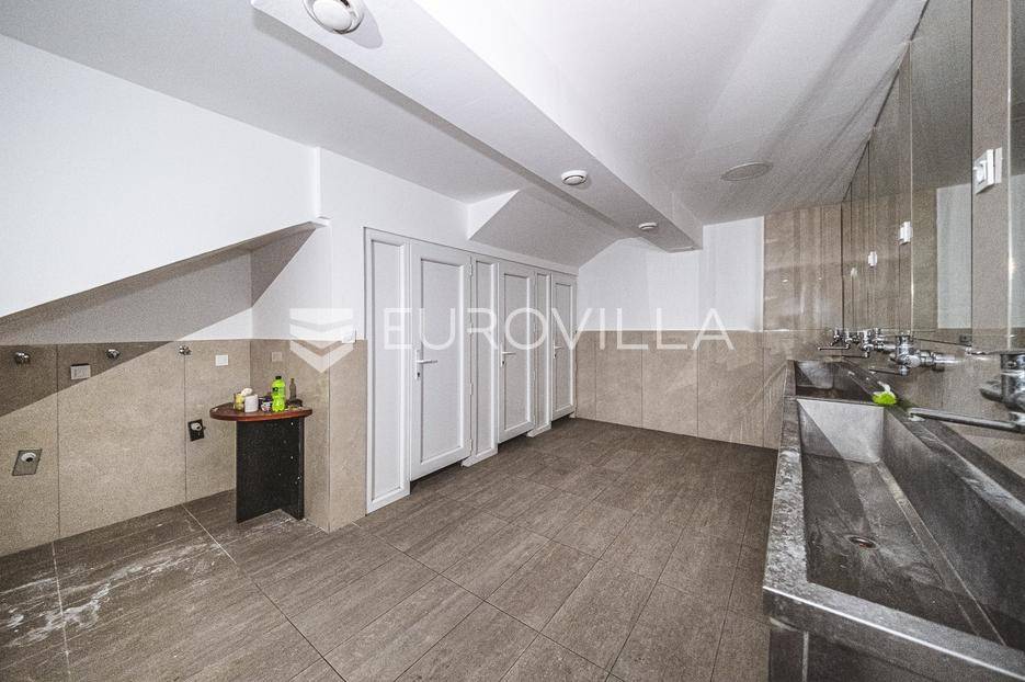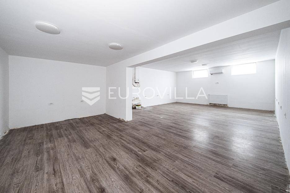 Zagreb, Veliko Polje, odličan poslovni prostor zatvorene podne površine 239,71 m2. Pripada mu pristupni plato 54,00 m2, vrt 44,00 m2, 6 vanjskih parkirališnih mjesta i 4 garažna parkirna mjesta. Ukupno obračunska netto korisna površina 215,24 m2.Poslovni prostor se sastoji od ureda, čajne kuhinje s garderobom, toaleta i stubišta u prizemlju površine 60,44 m2 i tri prostorije, sanitarnog čvora i garderobe u podrumu površine 179,27 m2 (korisne površine 89,64 m2).Prostor je idealan za mnoge djelatnosti odvjetnički ured, javni bilježnik, agencija, razna predstavništava, fitness, poliklinika... Nalazi se na odličnoj lokaciju u neposrednoj blizini obilaznice i svih sadržaja potrebnih za kvalitetno poslovanje.Za sve dodatne informacije stojimo na raspolaganju.... Više na eurovilla.hr, ID: 773575