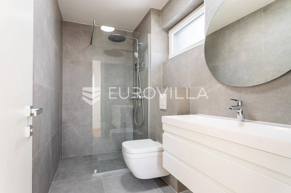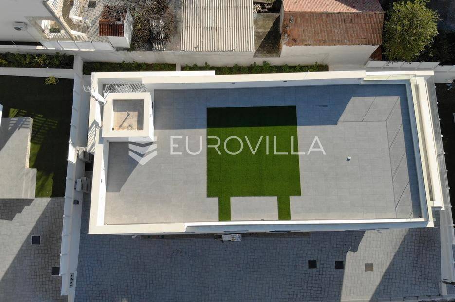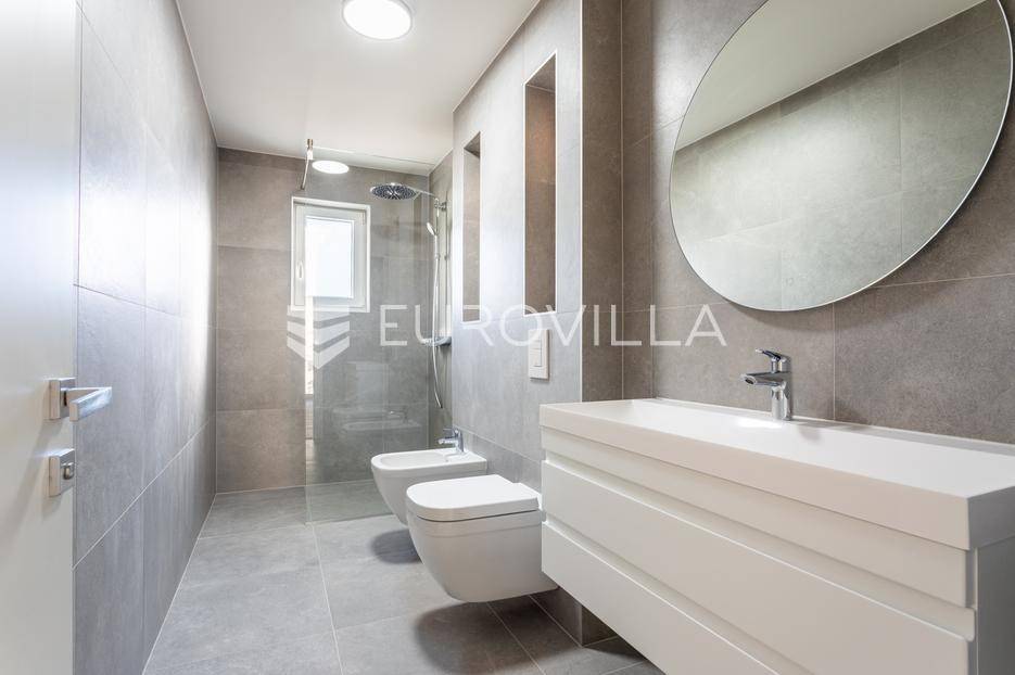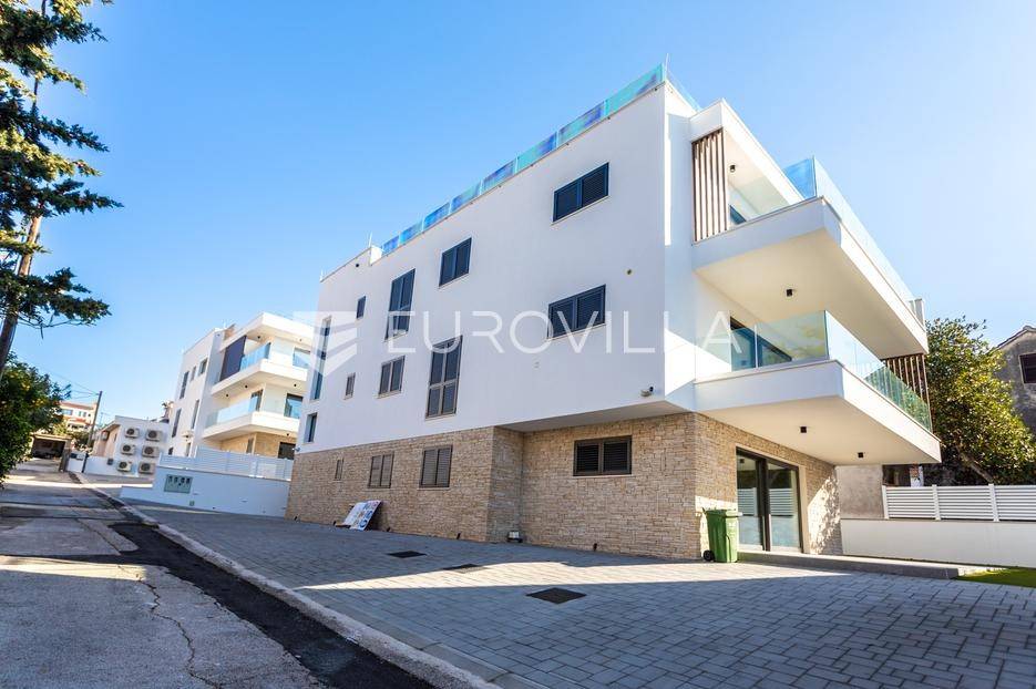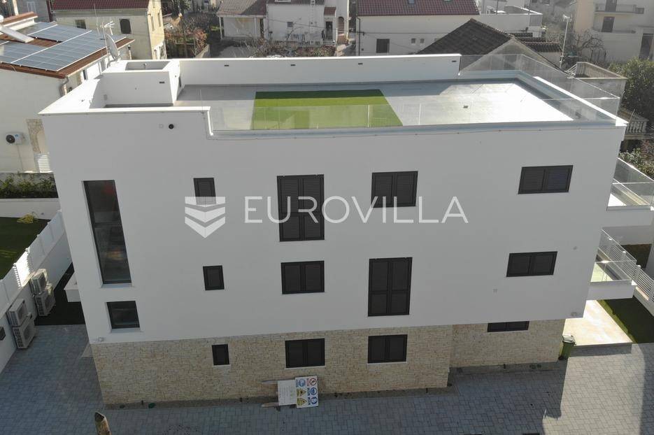 Na iznimnoj lokaciji u centru Vodica, svega 200 metara od mora, nalazi se ovaj prostrani stan na prvom katu novogradnje visoke kvalitete, neto korisne površine 131,62 m². Stanu pripadaju dva privatna parkirna mjesta u dvorištu zgrade. Ukupna zatvorena površina stana iznosi 115,60 m².Stan je funkcionalno i moderno osmišljen, a sastoji se od prostranog dnevnog boravka s kuhinjom i blagovaonicom, četiri spavaće sobe (od kojih jedna ima vlastitu kupaonicu i walk in garderobu), dodatne kupaonice te zasebnog toaleta. Iz dnevnog boravka izlazi se na veliku terasu površine 18,81 m², koja čini savršen prostor za boravak na otvorenom.Zgrada je građena prema najvišim standardima gradnje i opreme. Izdvajamo:dizalopodno grijanje na toplinsku pumpuMitsubishi klima uređaje u svim prostorijamavrhunsku stolariju s troslojnim staklomvideo parlafonpripremu za punionicu električnih vozila na parkirnom mjestupametnu parking rampu s očitavanjem registarskih oznakaLokacija zgrade dodatno povećava vrijednost nekretnine - mirna, a istovremeno centralna pozicija, na nekoliko minuta hoda od mora, plaže i svih sadržaja, čini ovu novogradnju jednom od rijetkih i najpoželjnijih u ovom dijelu Vodica.Za sve dodatne informacije i razgledavanje, slobodno nas kontaktirajte.... Više na eurovilla.hr, ID: 779075