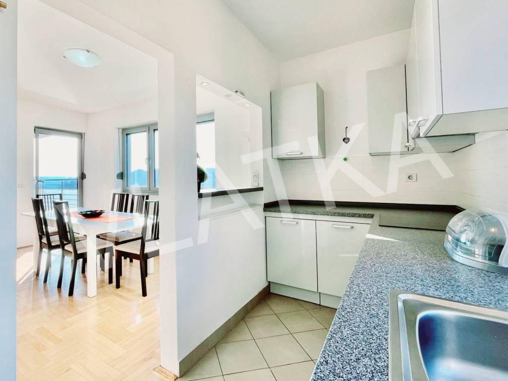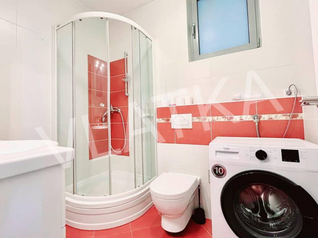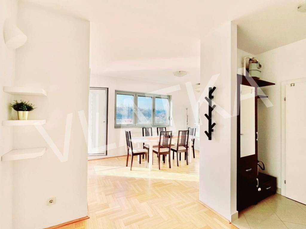 The apartment also has a space of 2 m2 in a shared storage room and two parking spaces (one covered). The stairs leading from the parking lot to the elevator have heaters for the winter period.