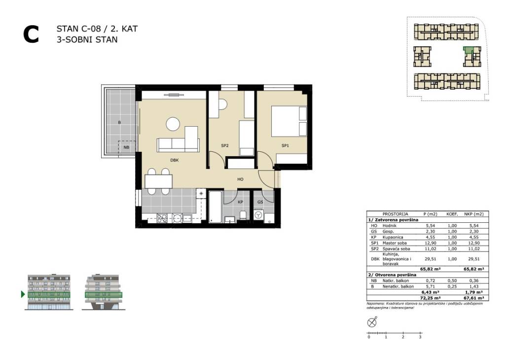 Trosoban stan na 2. katu stambene zgrade zatvorene površine 65,82 m2 s balkonom 6,43 m2 (1,79), ukupne neto površine 67,61 m2.Stan C-8 sastoji se od ulaznog hodnika, kuhinje s blagovaonicom i dnevnim boravkom, predsoblja, dvije spavaće sobe, kupaonice i balkona.Obvezna kupnja spremišta, vanjskog ili garažnog parkirnog mjesta.Stan se nalazi u višestambenoj zgradi unutar kompleksa koji će se sastojati od 165 stambenih jedinica.Green Side Residence nalazi se u Velikoj Gorici, samo 10 kilometara od Zagreba i tek 3 kilometra od Međunarodne zračne luke Zagreb, lokacija nudi izvrsnu prometnu povezanost s glavnim gradom i cijelom Hrvatskom, zahvaljujući neposrednom pristupu dvjema autocestama.Okružen zelenilom, a opet u blizini svih gradskih sadržaja, ovaj projekt predstavlja idealan izbor za miran, ali povezan život.Useljenje 11/2027. godine.Za sve ostale informacije stojimo na raspolaganju.... Više na eurovilla.hr, ID: 803550