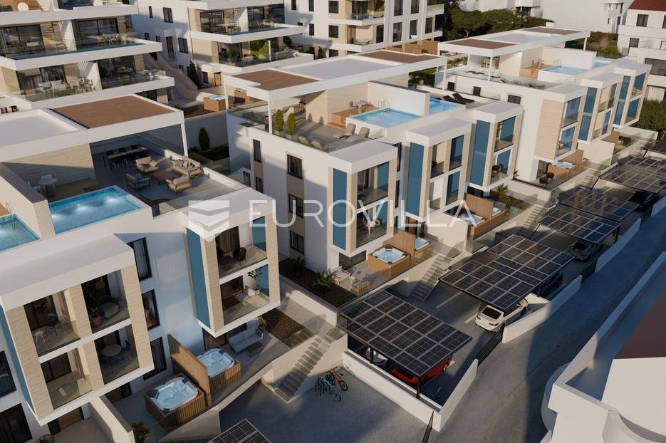 Moderna garsonjera neto korisne površine 37,62 m2, bruto površine 52,17 m2. Sastoji se od hodnika, kupaonice, dnevnog boravka, blagovaonice, kuhinje i prostrane terase površine 19,40 m2. Stanu pripada jedno vanjsko parkirno mjesto uz mogućnost kupovine dodatnog parkirnog mjesta. Izgradnja te sama oprema unutar stana je najvišeg standarda, pored toga, investitor nudi uslugu opremanja apartmana i unutarnjeg uređenja prema najvišim standardima, s modernim dizajnom koji zadovoljava potrebe kupaca. Rezultat je luksuzno uređeni prostor, potpuno spreman za upotrebu ili iznajmljivanje. Iz stana se pruža neometani pogled na more a udaljenost plaže je samo 100 m.Investiranje s garantiranim povratom predstavlja ključnu prednost ovog projekta. Investitor nudi mogućnost iznajmljivanja kupljenih apartmana u turističke svrhe, preuzimajući kompletan menadžment i usluge gostoprimstva. Na taj način, vlasnicima je osiguran povrat investicije bez potrebe za angažmanom na operativnim poslovima, jer se sve obavlja u njihovo ime, čime im se omogućuje siguran prihod od turističkog najma.Ovakav projekt je jedan od prvih ovog tipa na tom području, a slični koncepti uspješno se primjenjuju širom svijeta te ovo naselje predstavlja jedinstvenu investicijsku priliku na atraktivnoj lokaciji s velikim potencijalom za generiranje prihoda od turističkog najma i dugoročnu vrijednost nekretnine.Čiovo je idealna destinacija zahvaljujući svojoj blizini povijesnog grada Trogira, koji je pod zaštitom UNESCO-a, te povezanosti s kopnom mostom, što ga čini lako dostupnim i vrlo atraktivnim za turiste.Više informacija na upit.... Više na eurovilla.hr, ID: 824375